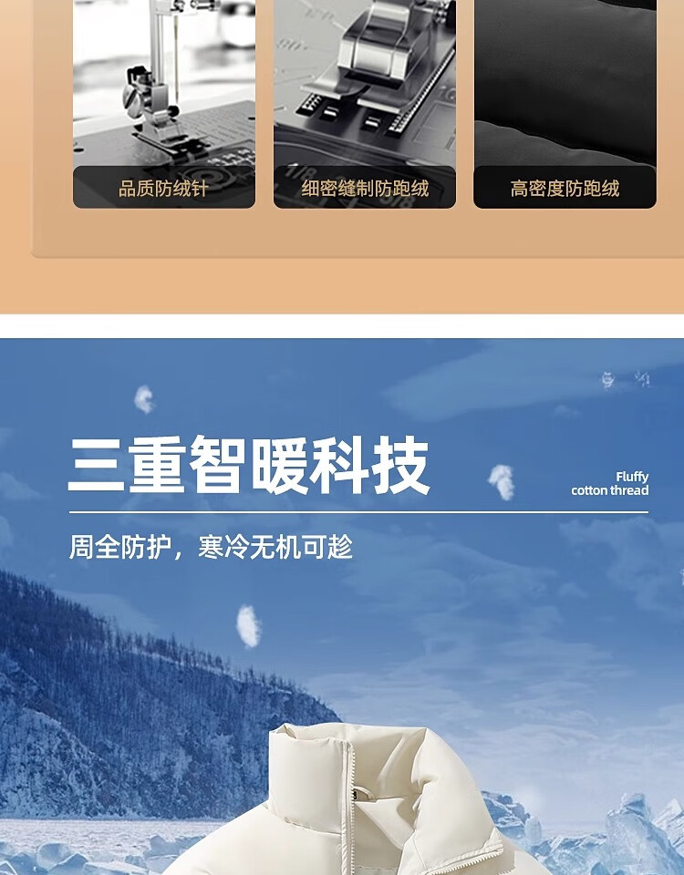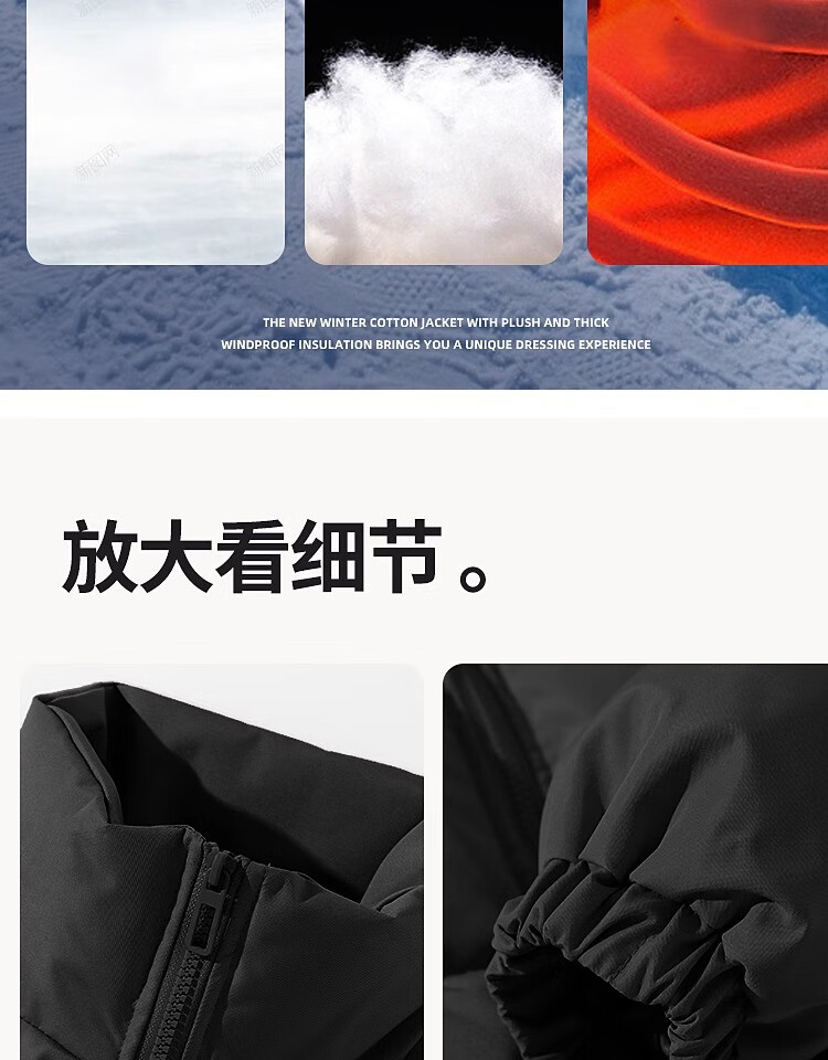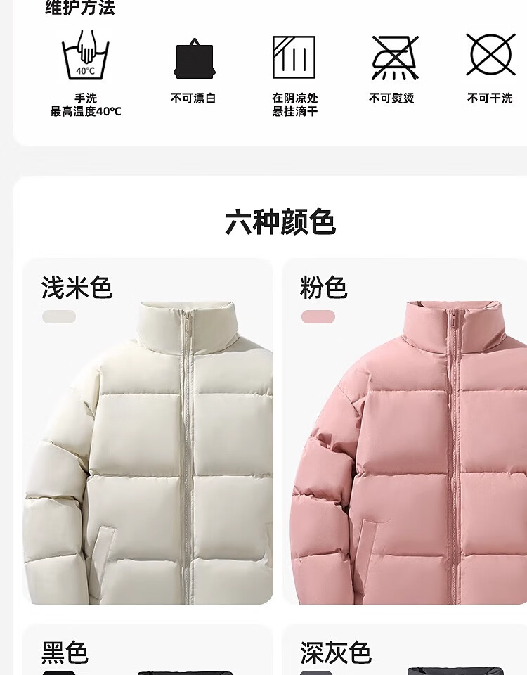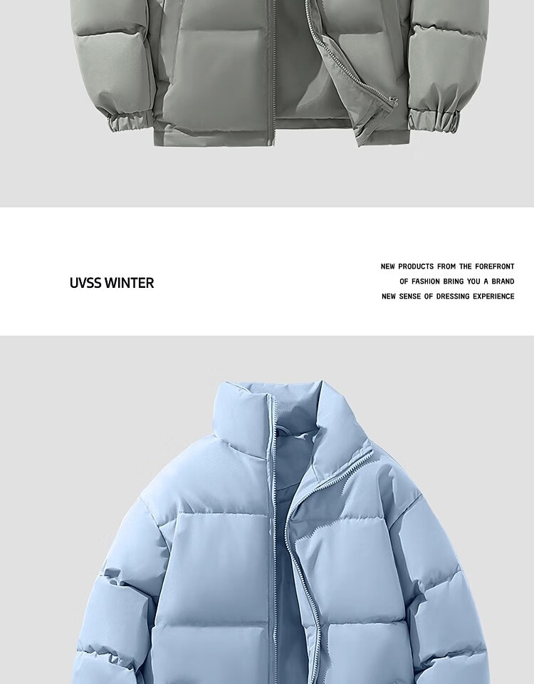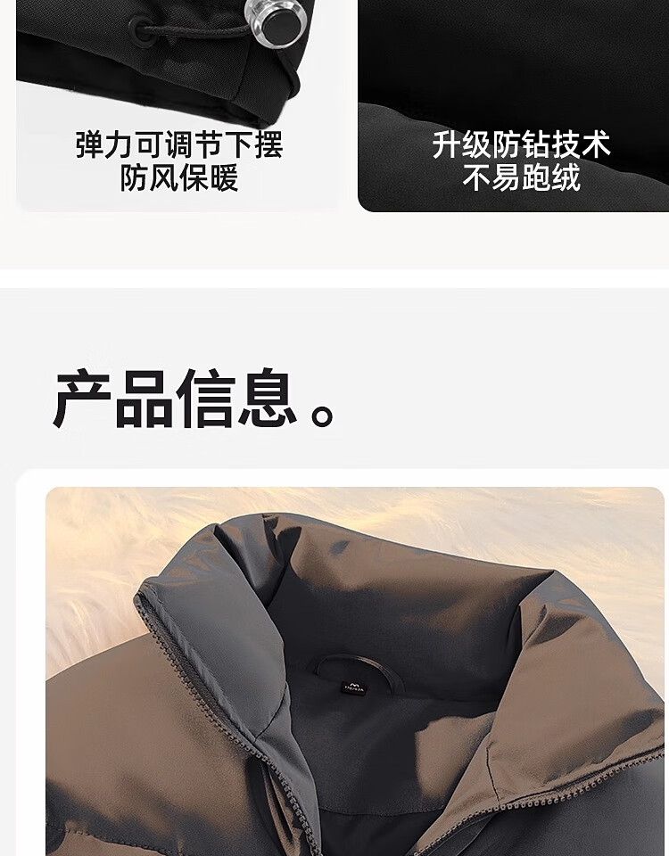 Woodpecker Winter Down Cotton Jacket Men's Trendy Brand Stand Collar Bread Jacket Plus Velvet Thickened White Velvet Men's Disposable Jacket Stand Collar Black #Solid Color L