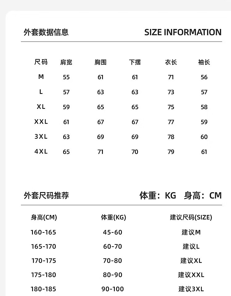 China (cm) 165 / 88-90 170 / 96-98 175 / 108-110 180 / 118-122 185 / 126-130