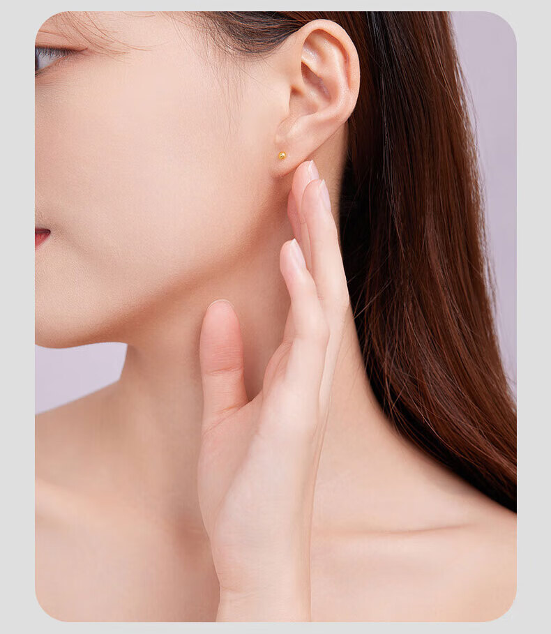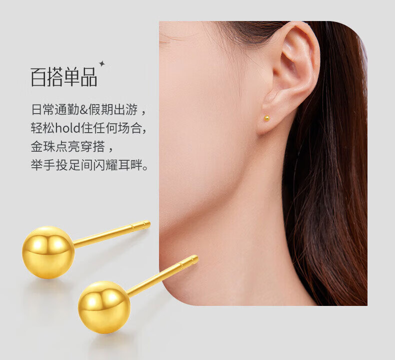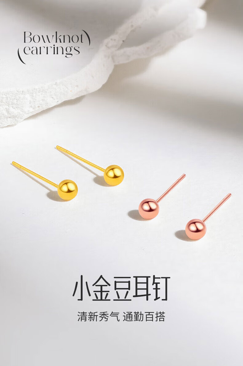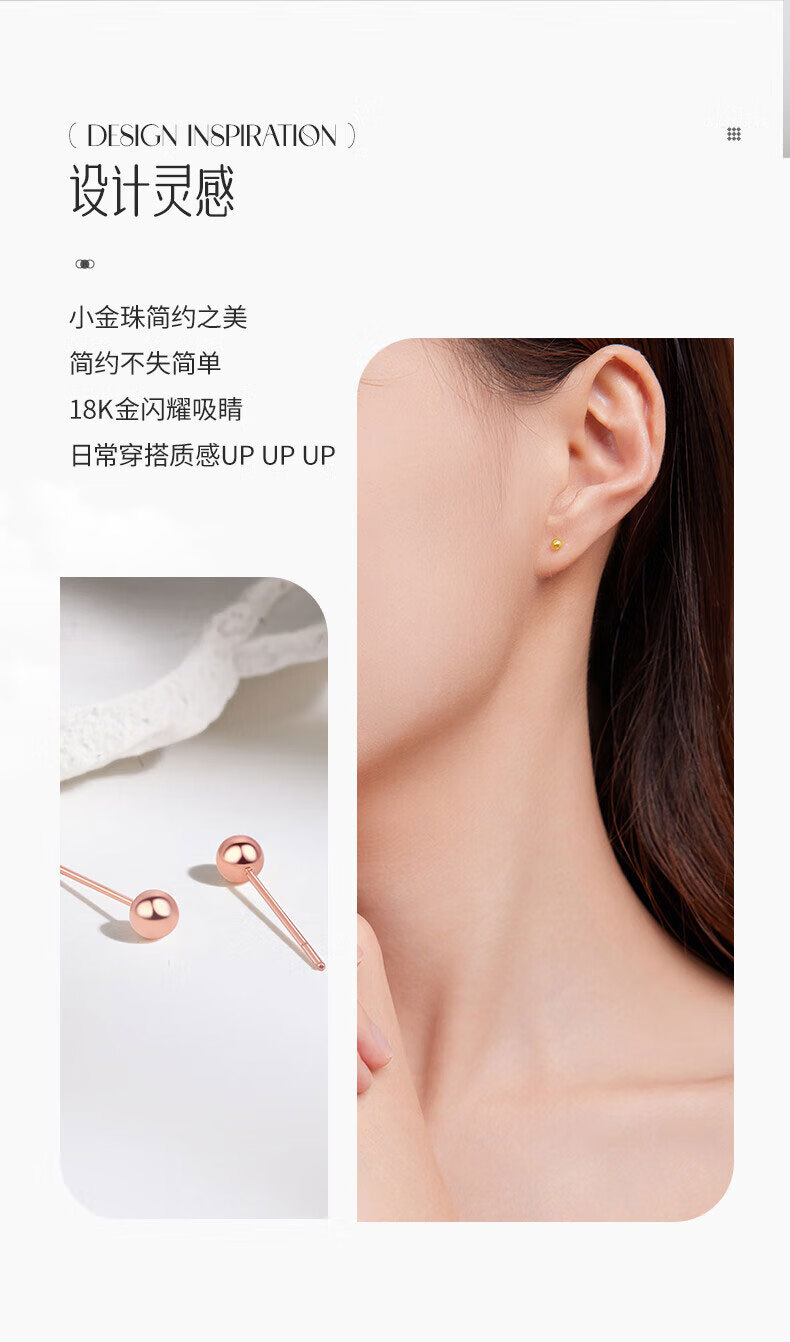 Lao Fengxiang 18K gold pearl earrings for women, fashionable and versatile ear stick earrings, Valentine's Day birthday gift for girlfriend and wife, 18K gold pearl earrings, about 0.1g