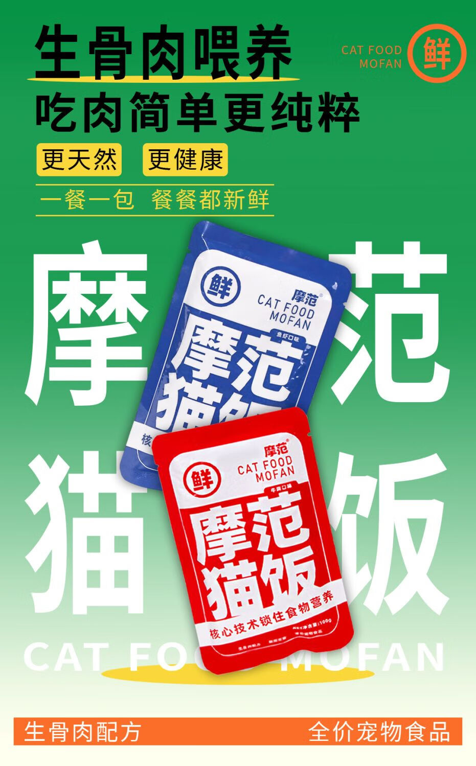 Mofan Cat Raw Bone Meat Rice 21 Packs Full Box Nutritional Full Level Universal Raw Bone Meat Cat Rice Beef Flavor 100g 21 Bags - Cost-effective