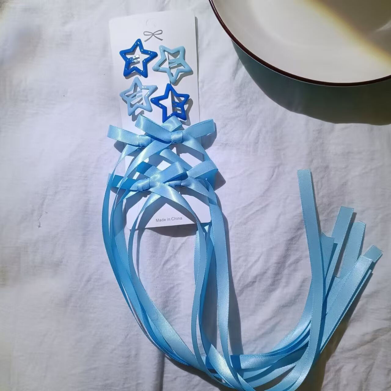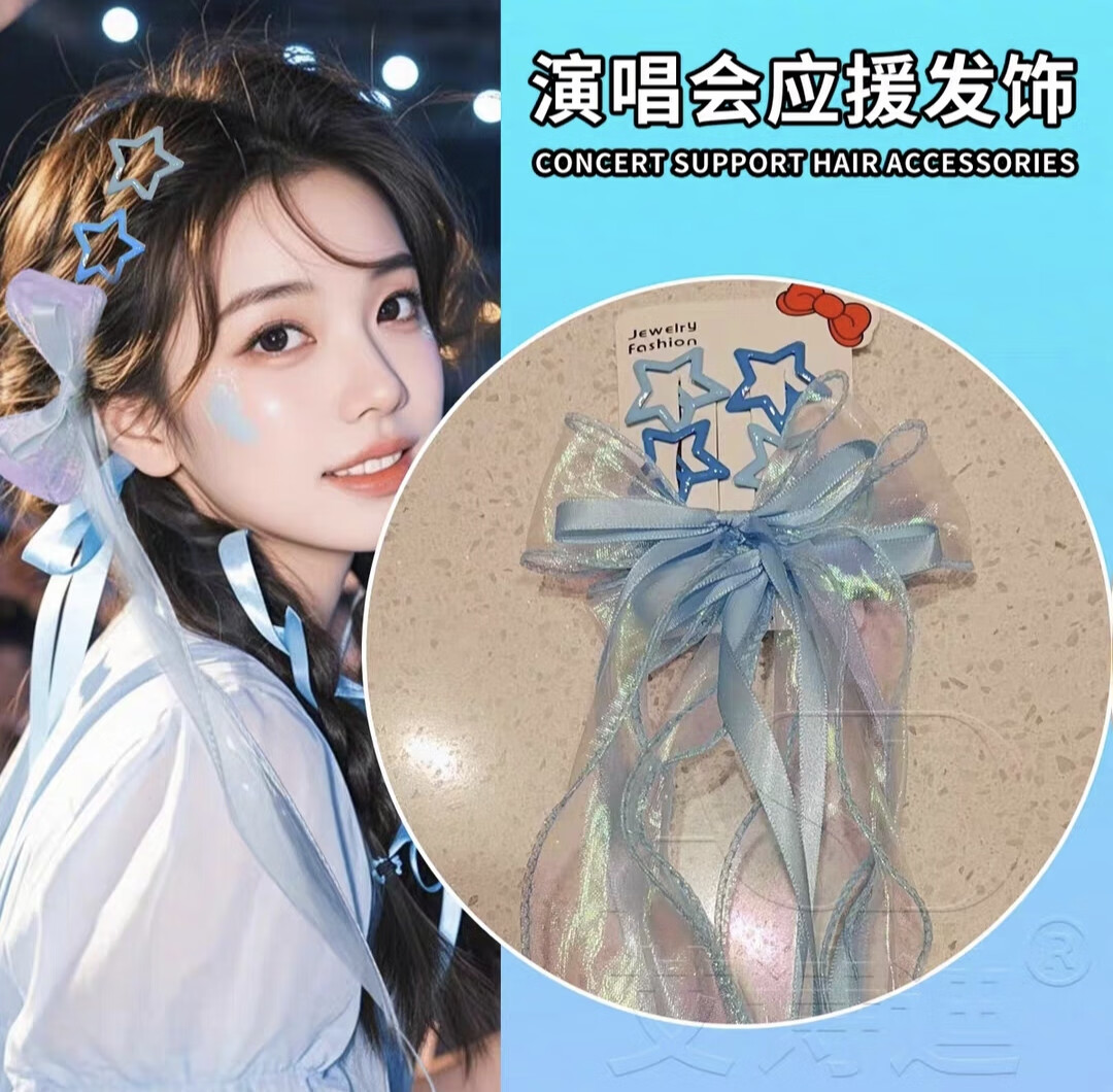 Shui Yunmiao Bow Ribbon Hair Clip Star Hair Accessories Set Braided Ribbon Concert Support Color Music Festival Hair Clip Set Upgraded Blue Star Butterfly Hair Clip 6-piece Set
