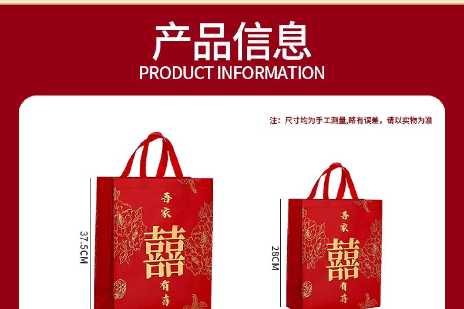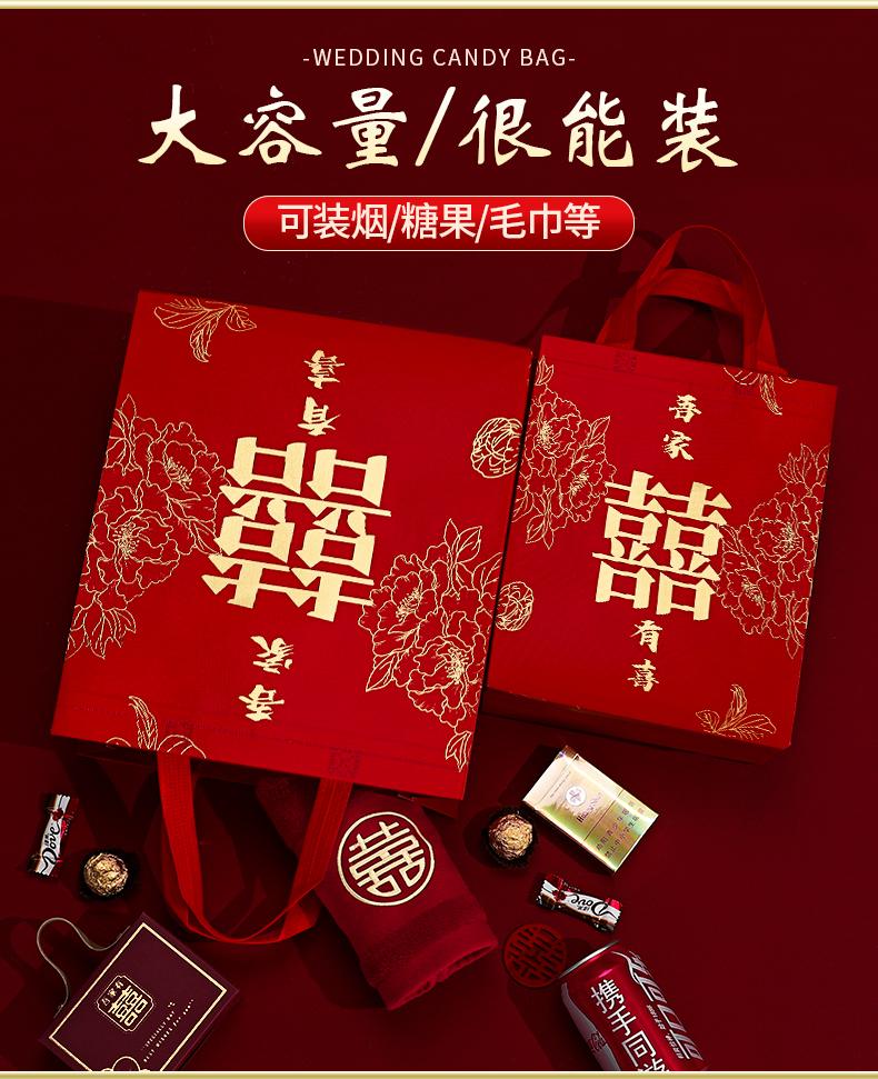 Wedding red handbag with happy words, wedding candy box, gift box, wedding gift bag packaging bag, My Family is Happy, medium size, 10 pieces