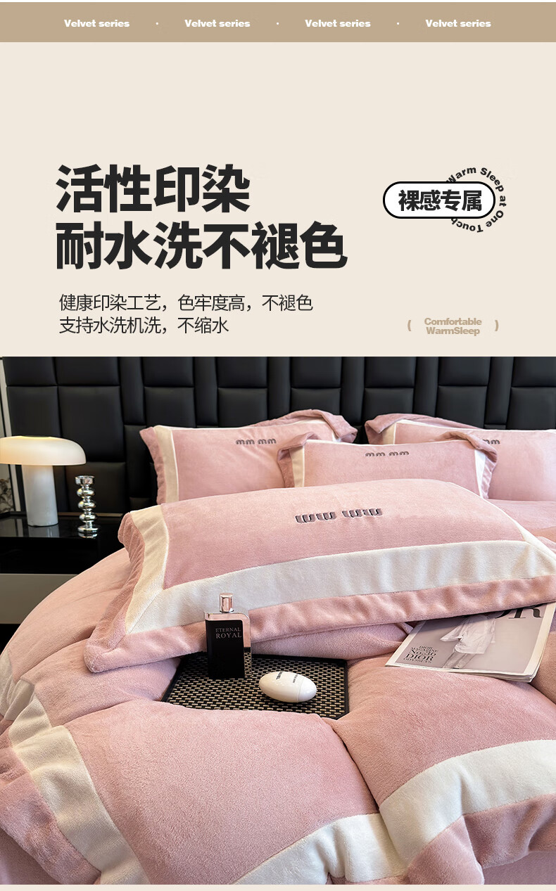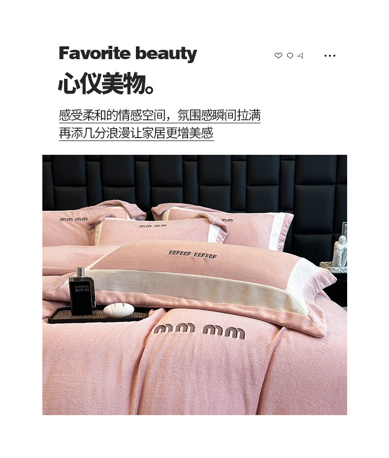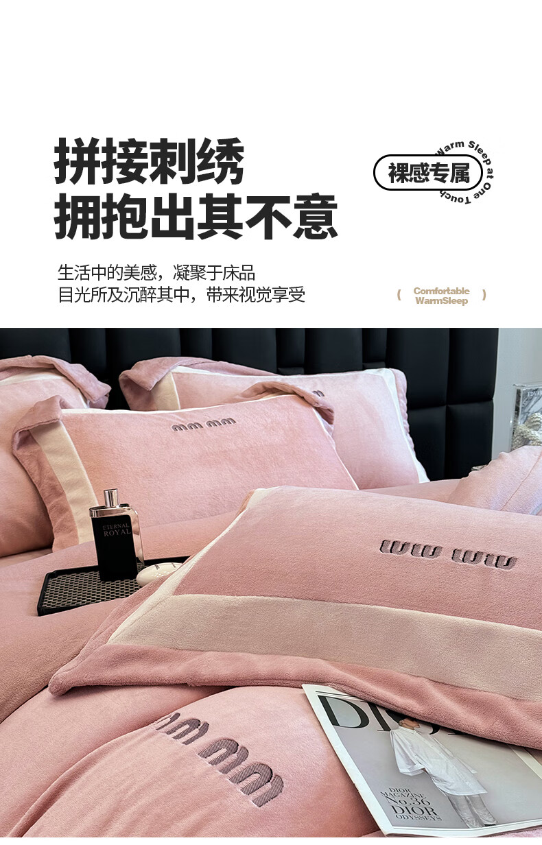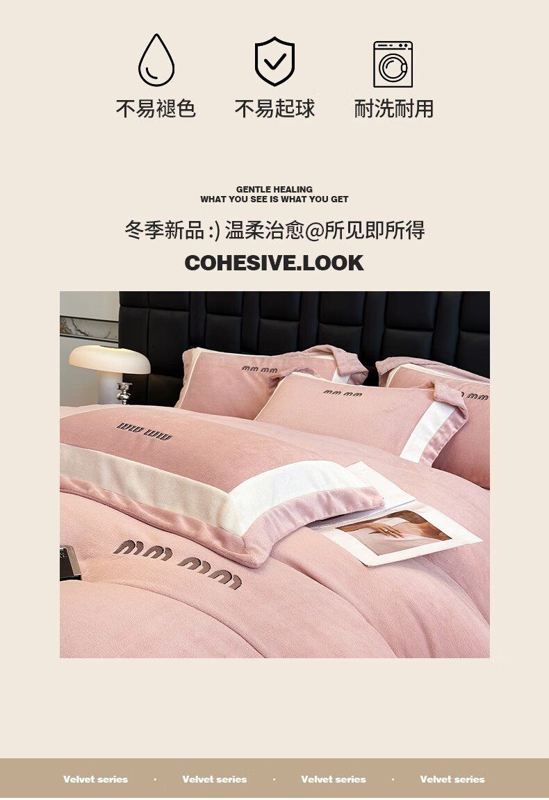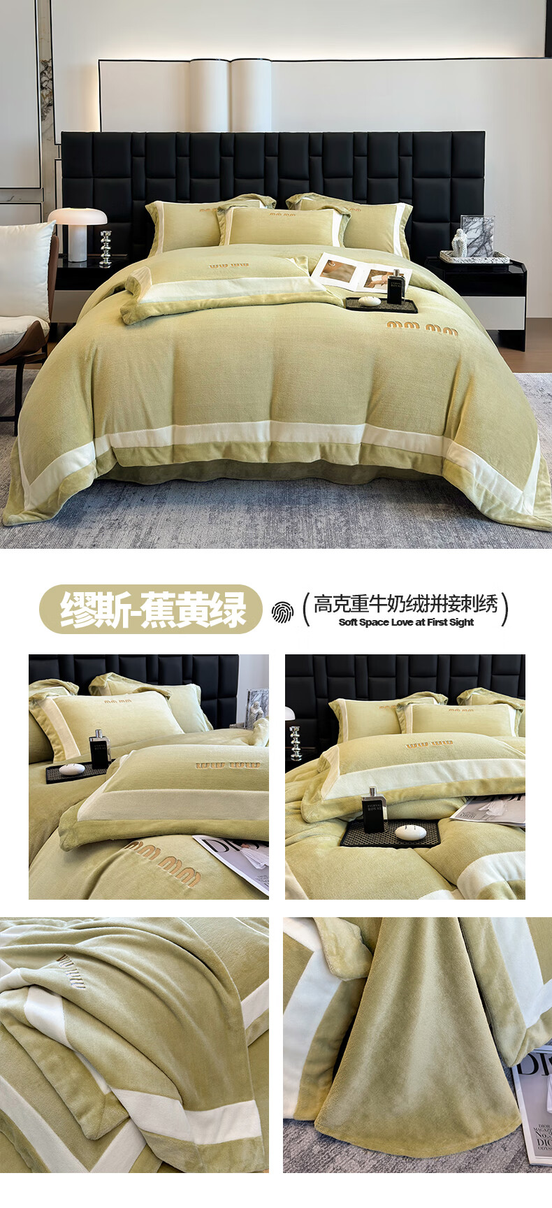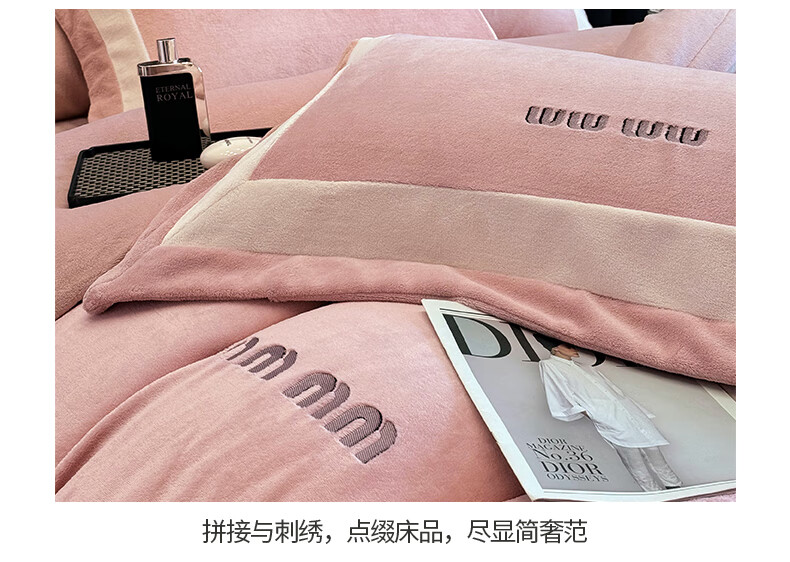 Mercury series 200 count high-end light luxury bed four-piece set winter coral milk suede duvet cover flannel thickened sheets Muse-pure white antistatic + thickened + no lint 1.5m bed sheet four-piece set antistatic + thickened + no lint
