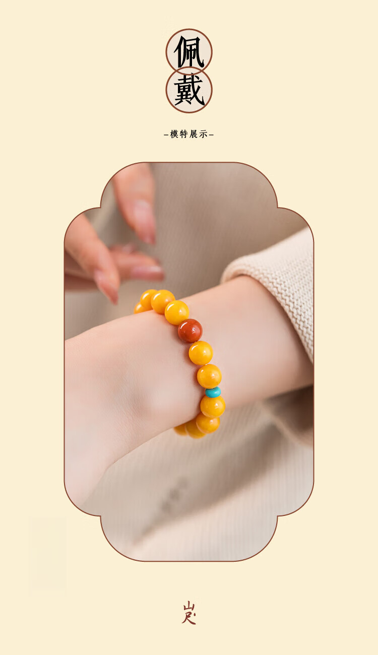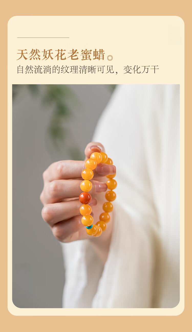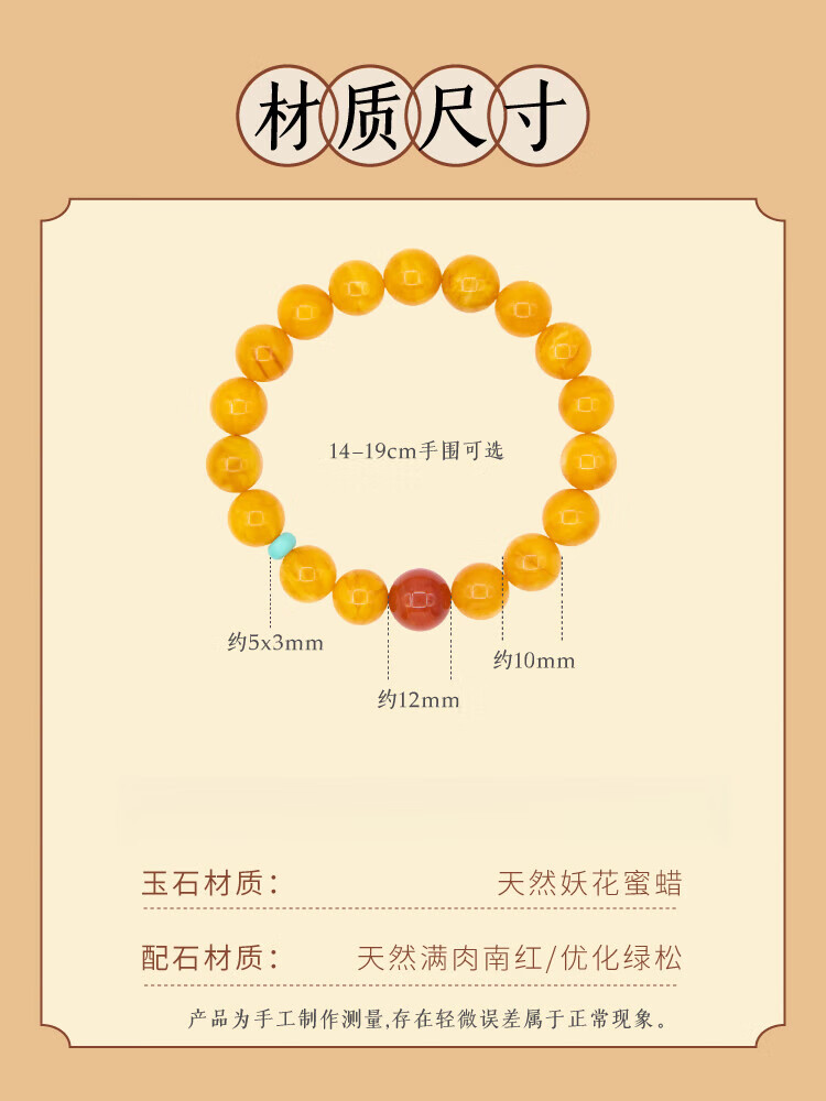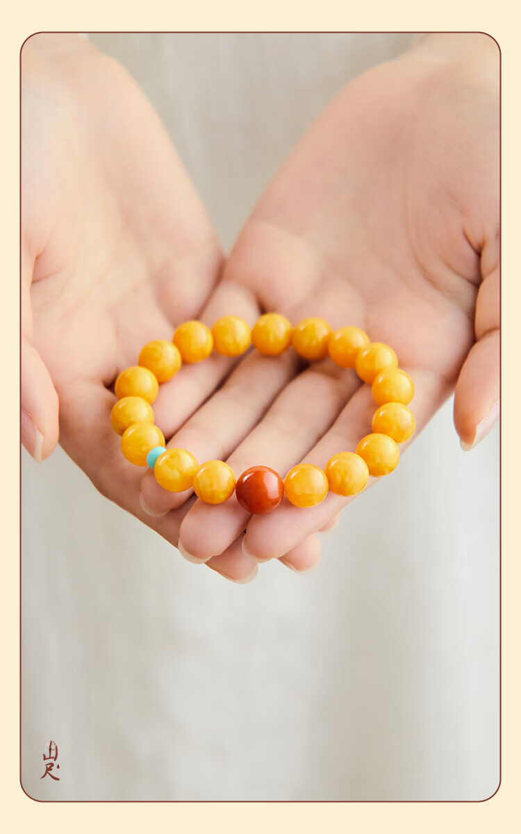 Amber Bracelet Women's Natural Chicken Fat Yellow Beeswax Bracelet New Chinese Style National Style Southern Red Turquoise String 12mm 16-17cm Hand Circumference Autumn Branch Bracelet