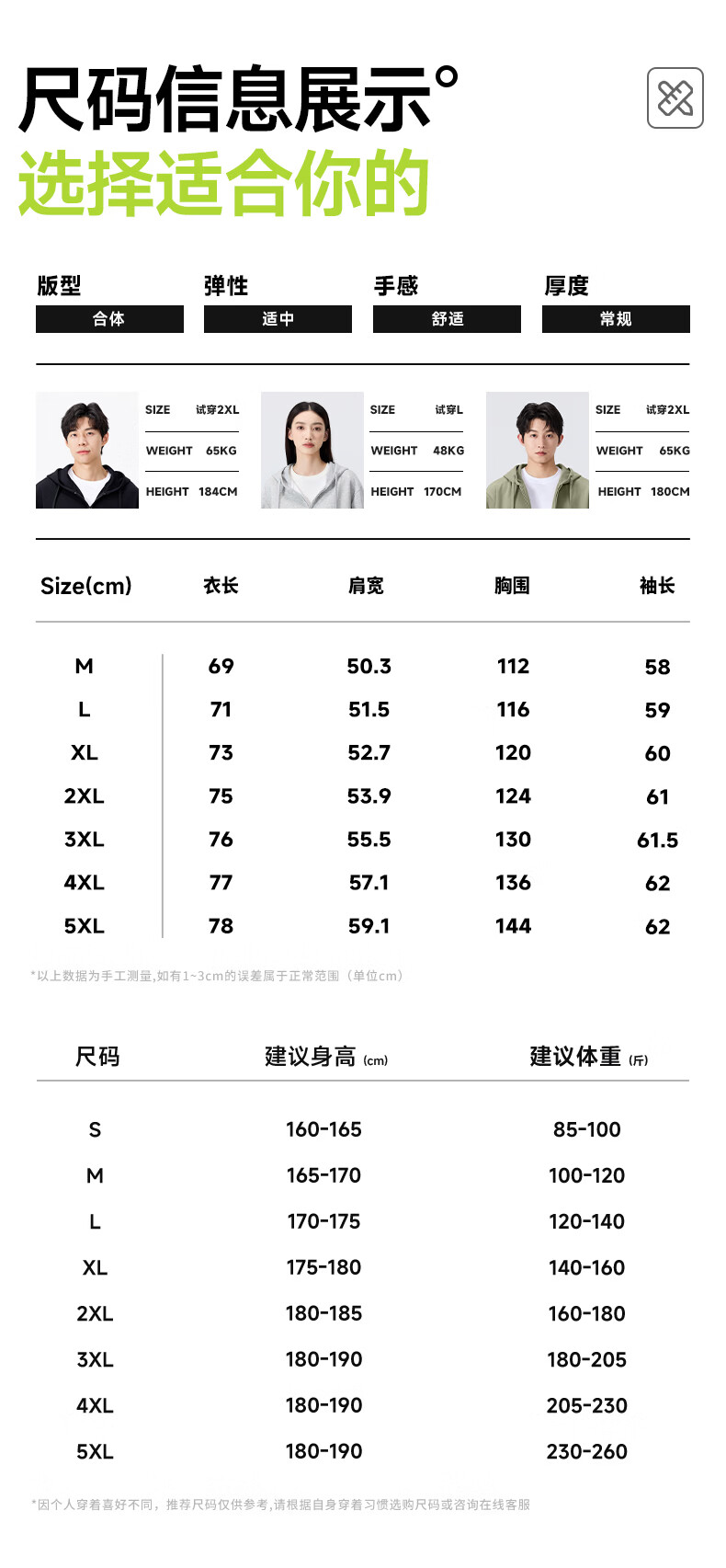 China (cm) 160-165/84-86 165-170 / 88-90 167-172 / 92-96 168-173 / 98-102 170-176 / 106-110