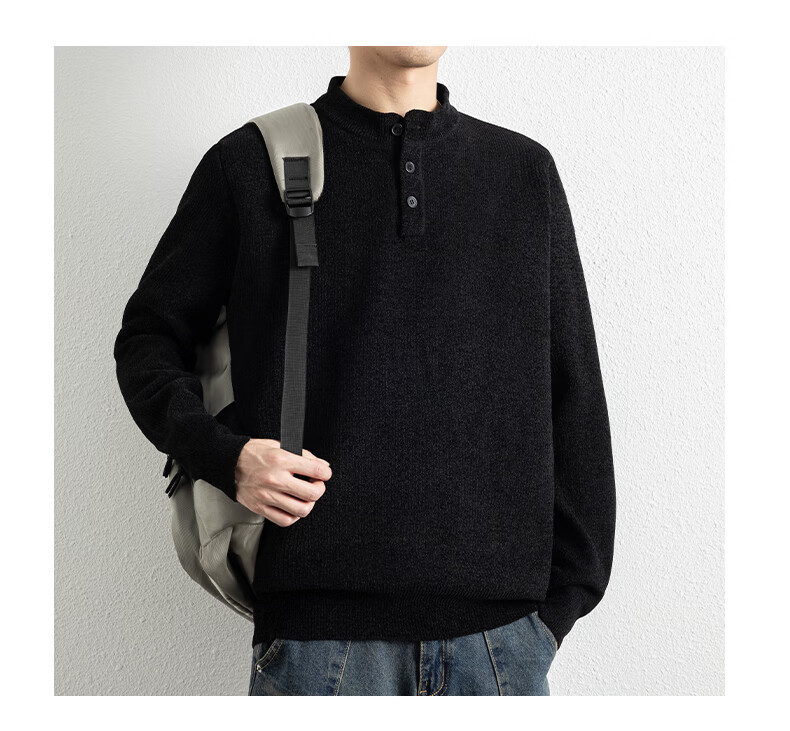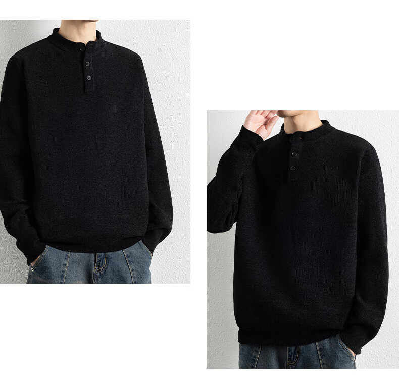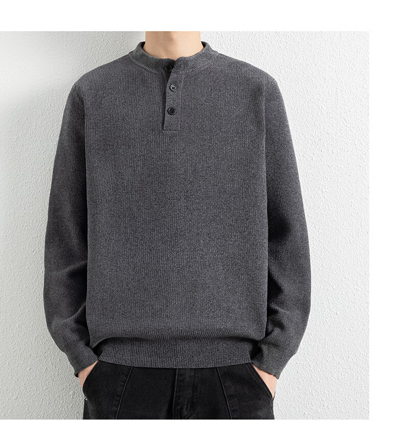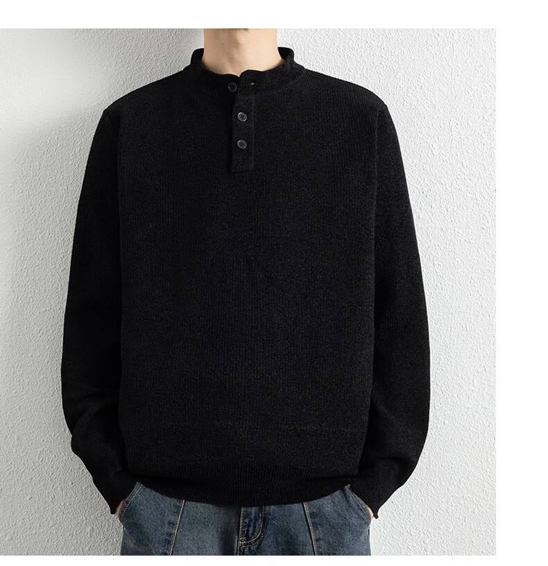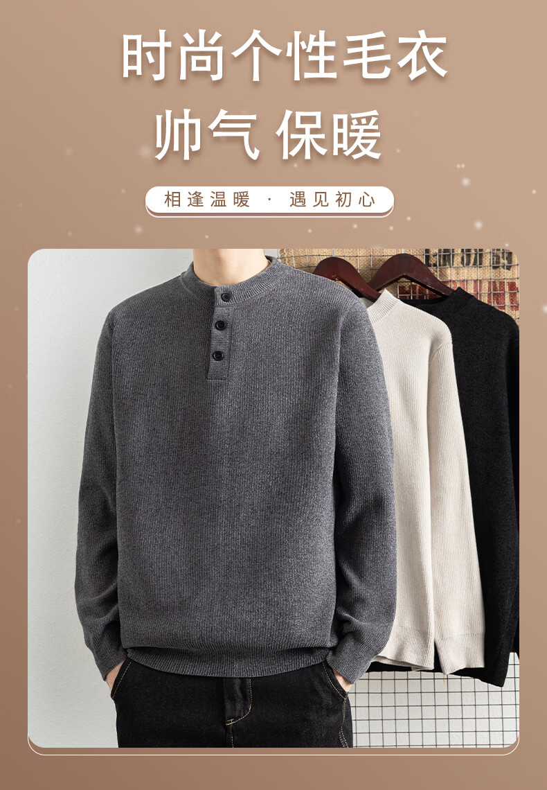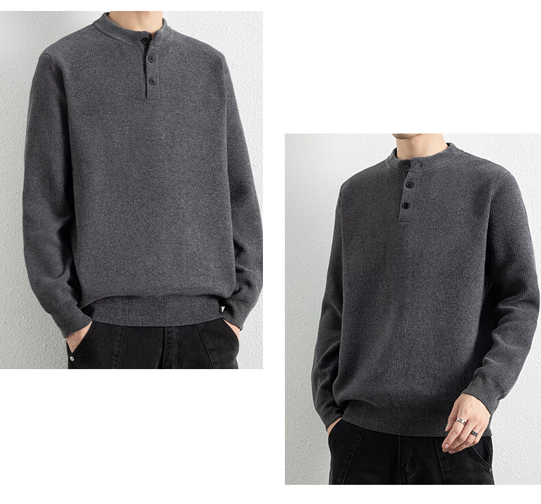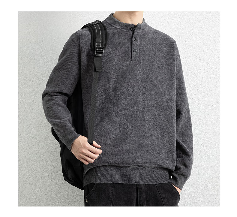 Playboy (PLAYBOY) three-button American Henry collar pullover sweater for men, autumn and winter 2025 new door tube collar bottoming shirt, dark gray M, weight range 90-115Jin Jin is equal to 0.5 kg
