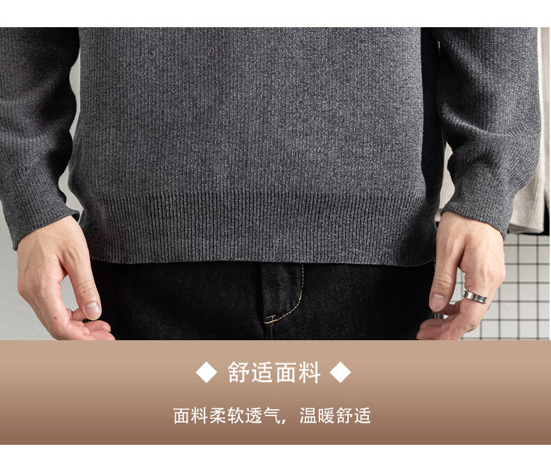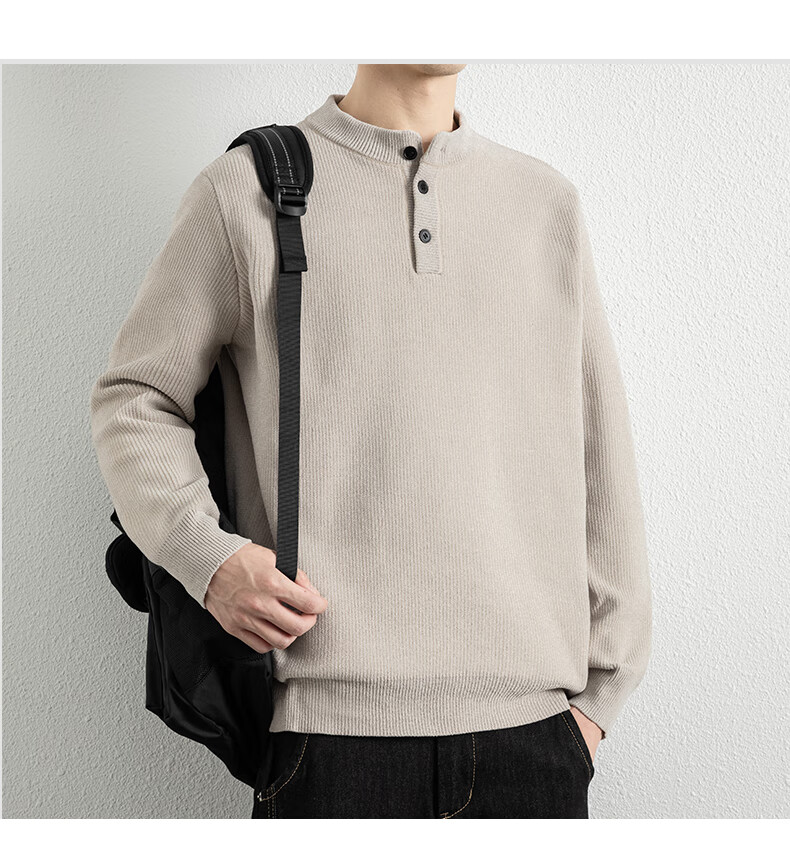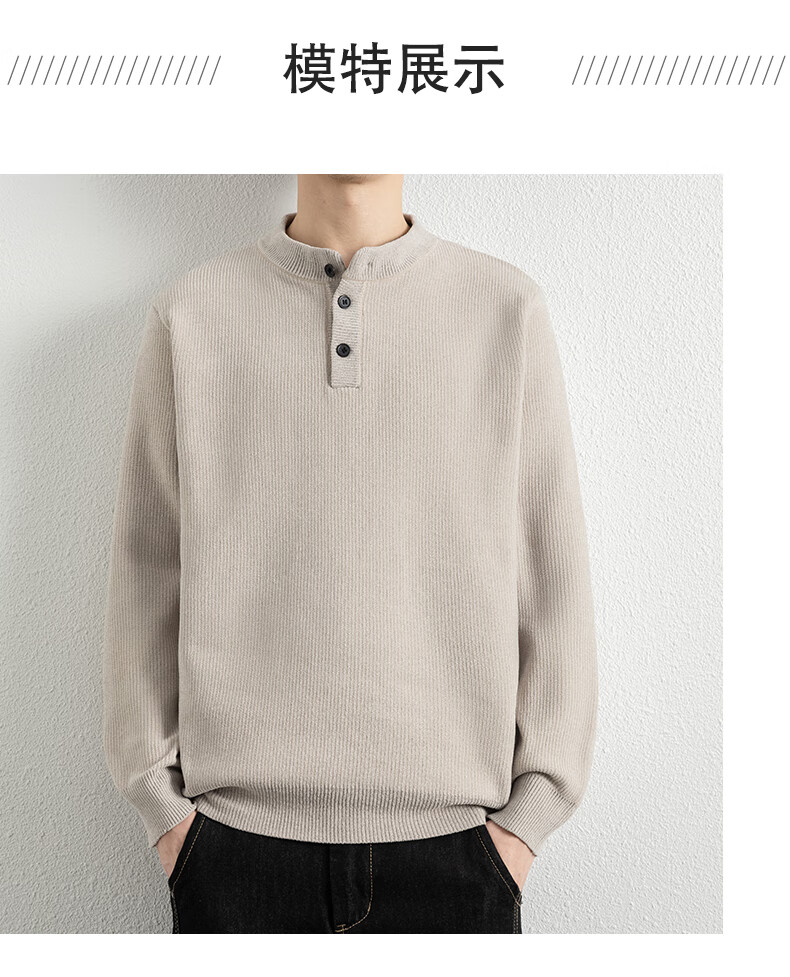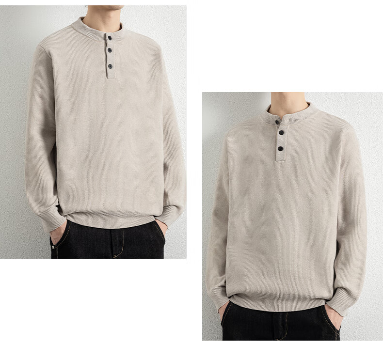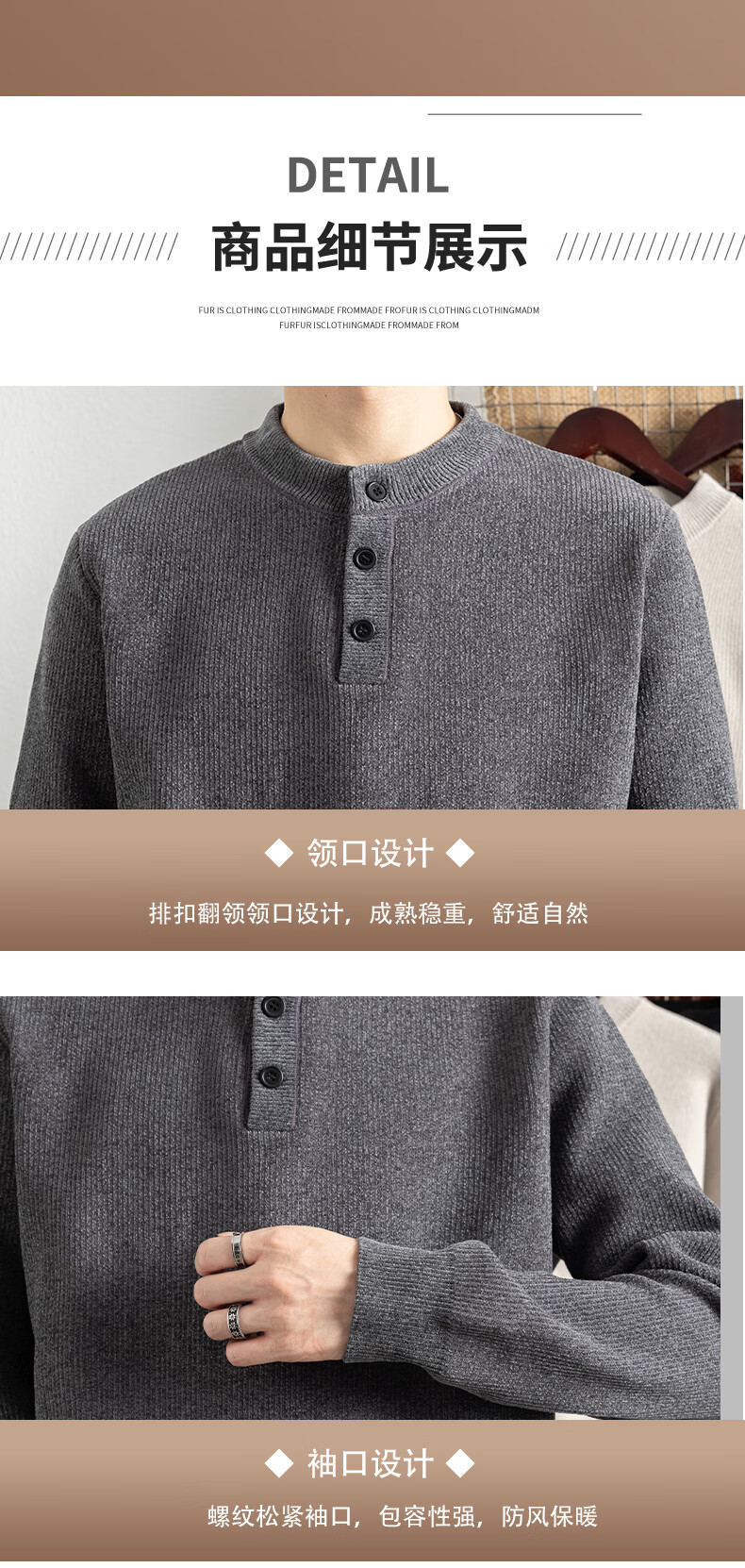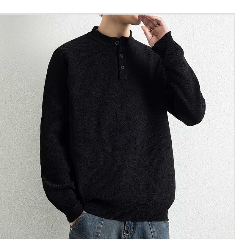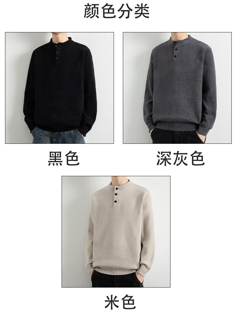 Playboy (PLAYBOY) three-button American Henry collar pullover sweater for men, autumn and winter 2025 new door tube collar bottoming shirt, dark gray M, weight range 90-115Jin Jin is equal to 0.5 kg