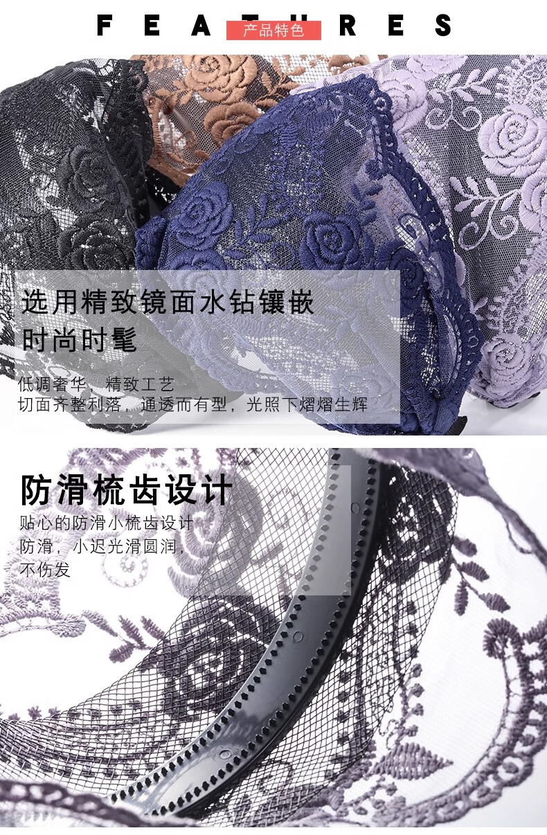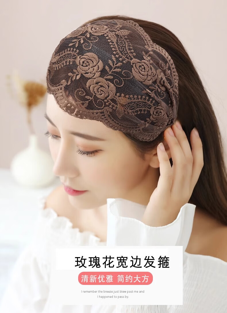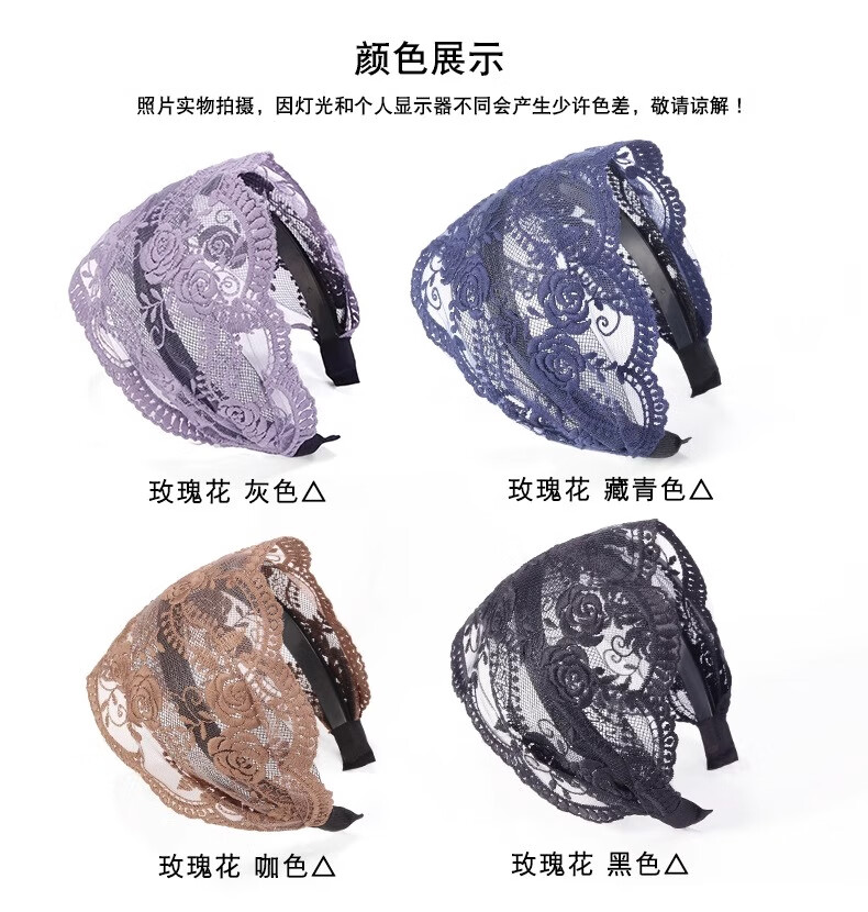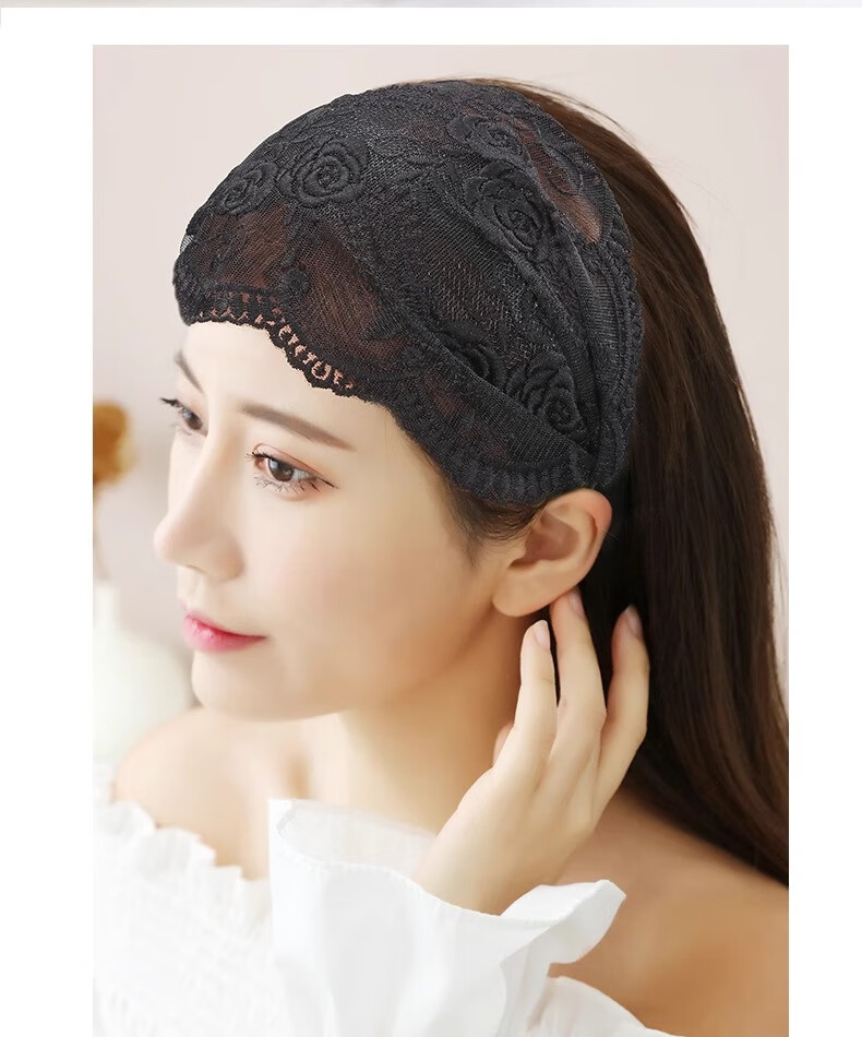 Bai Shilin Lace White Hair Covering Artifact Wide-Border Embroidered Headband Women's High-end Hairband Going Out Women's High-end Headband Headband Rose Lace Purple