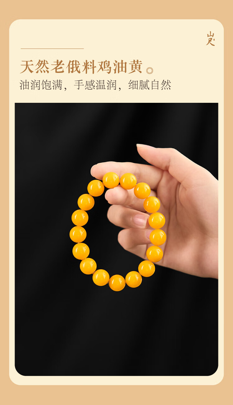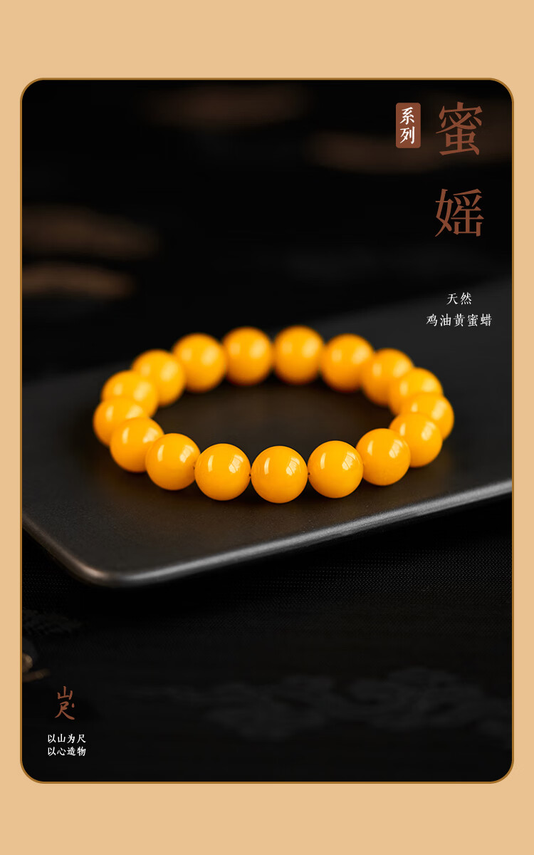 Fat Donglai's same beeswax bracelet for men, chicken fat yellow amber, Russian natural yellow jade bracelet, high-end 10mm natural chicken fat yellow beeswax, 14-15cm hand circumference, honey hand