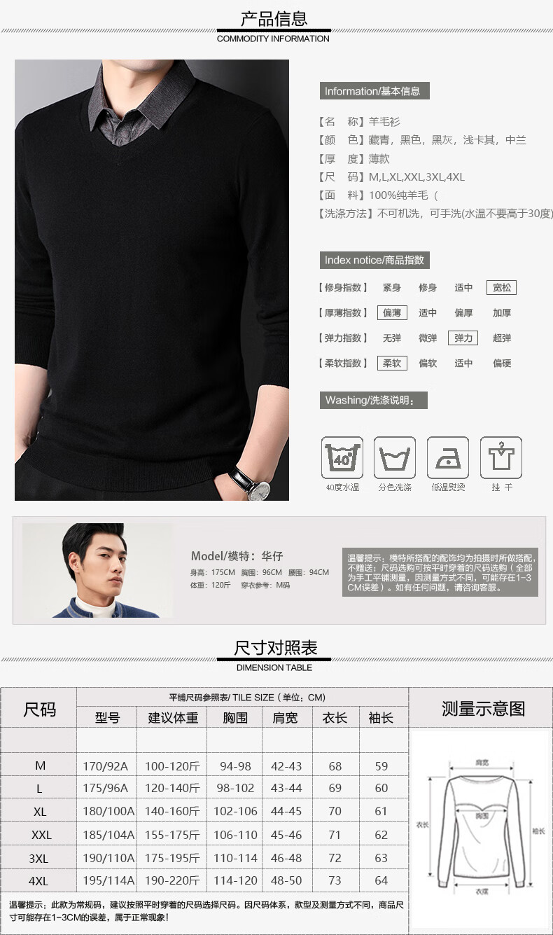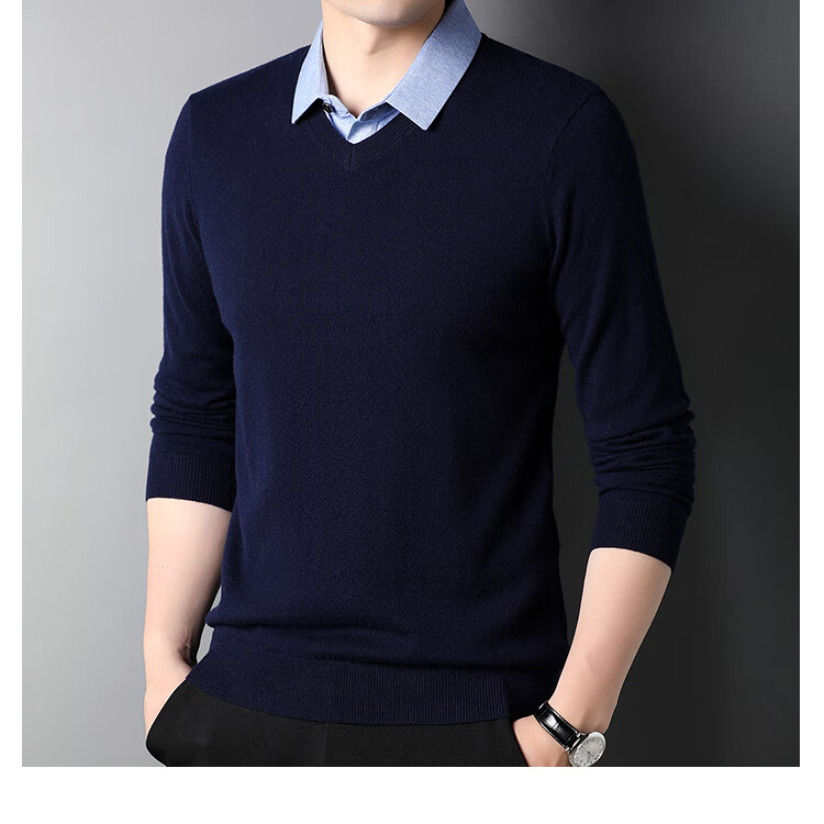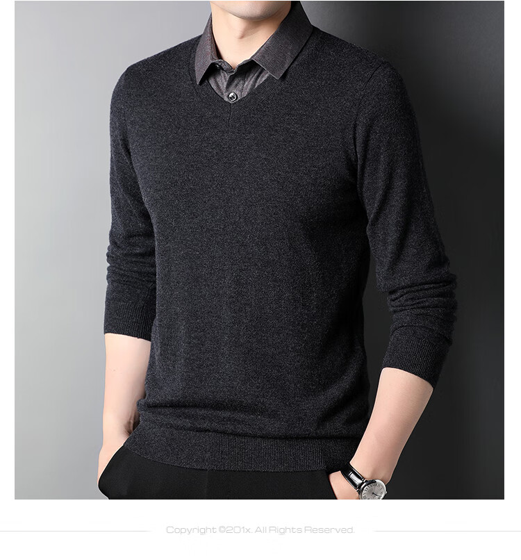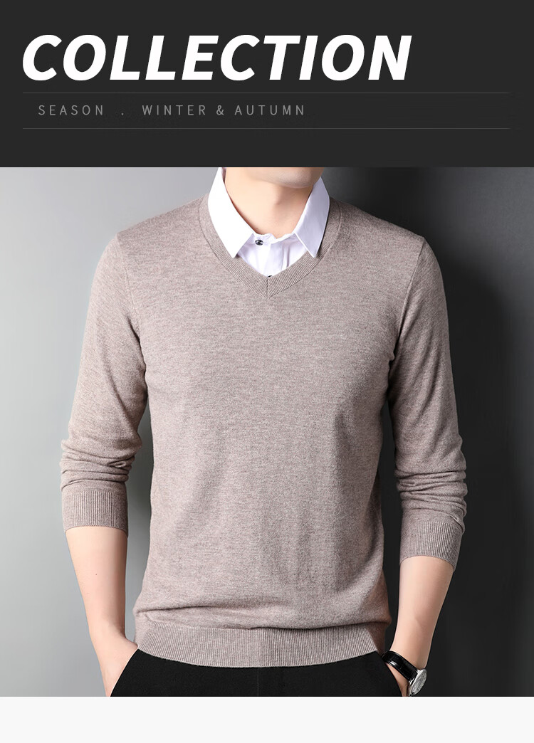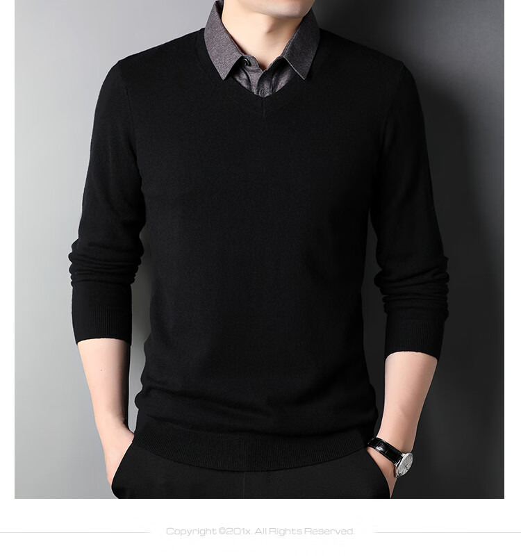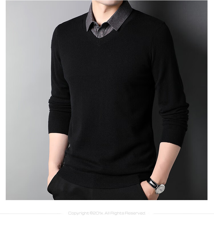XJSGS international luxury brand high-end 100 pure wool sweater men's autumn and winter V-neck thickened sweater knitted bottoming shirt for men high-end black counter same style winter style XL 180 suitable for 140-160Jin Jin equals 0.5 kg