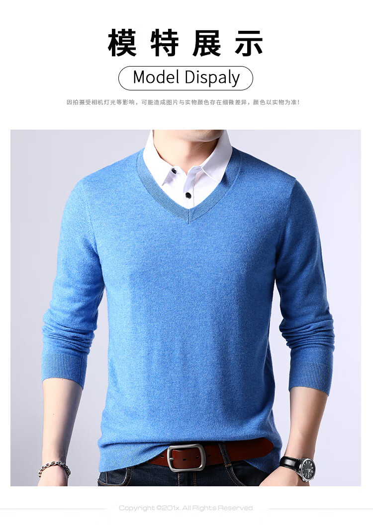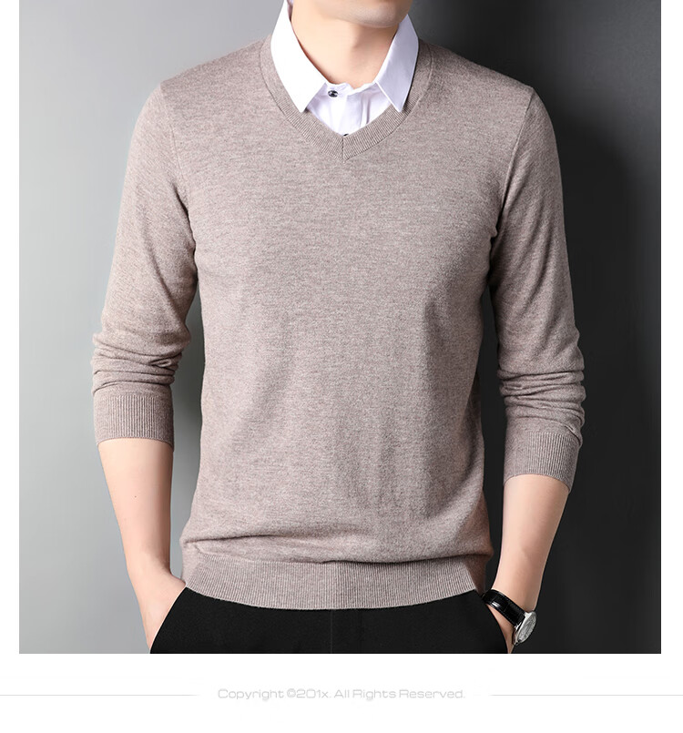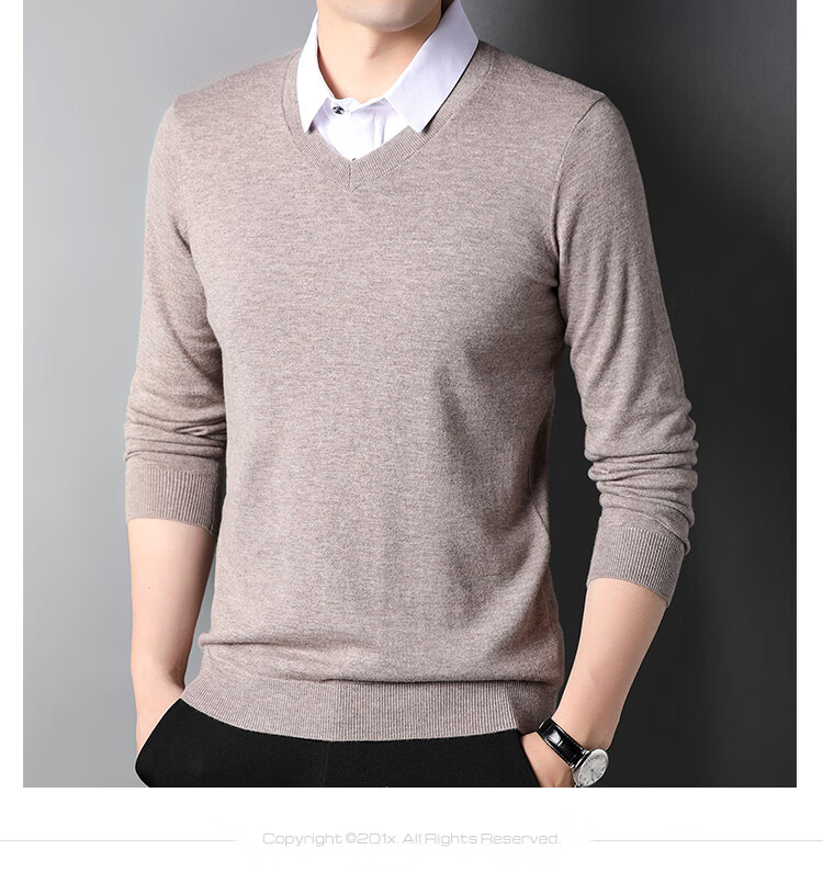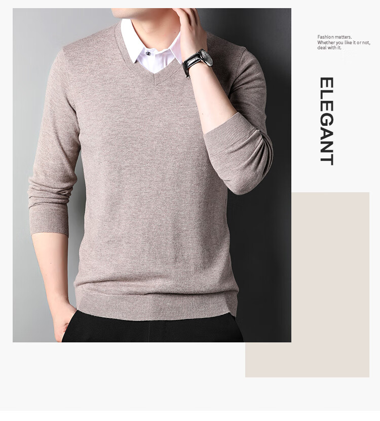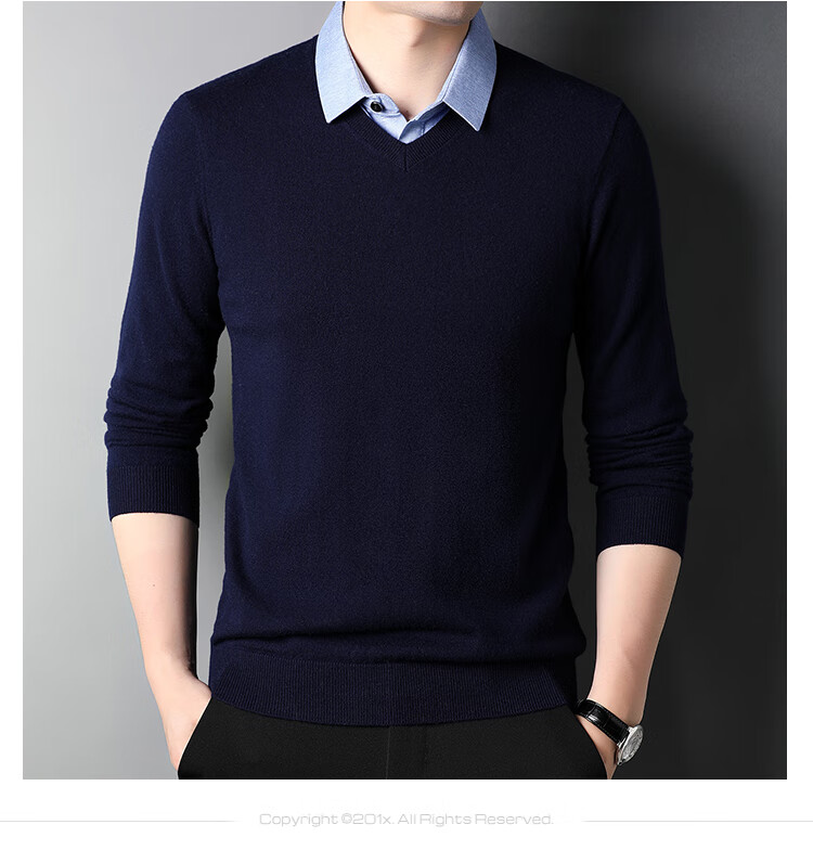 XJSGS international luxury brand high-end 100 pure wool sweater men's autumn and winter V-neck thickened sweater knitted bottoming shirt for men high-end black counter same style winter style XL 180 suitable for 140-160Jin Jin equals 0.5 kg