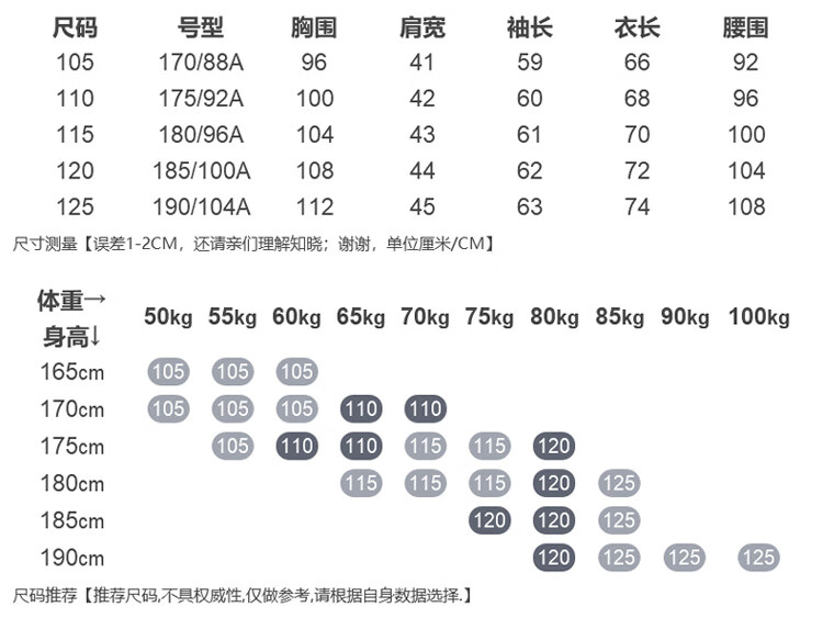 China (cm) 160-165/84-86 165-170 / 88-90 167-172 / 92-96 168-173 / 98-102 170-176 / 106-110