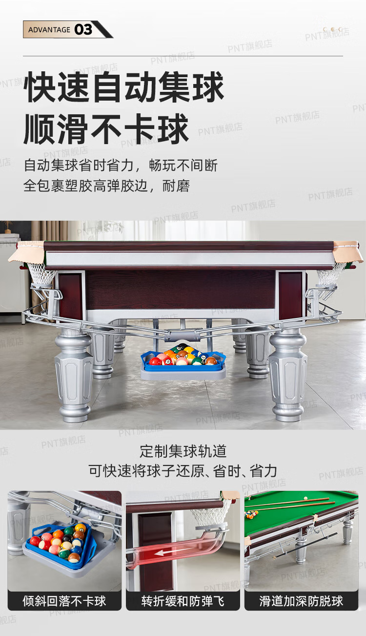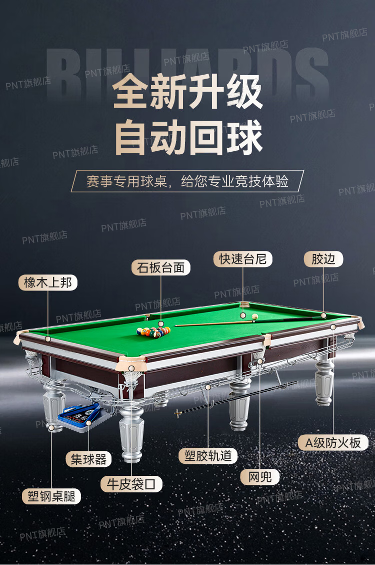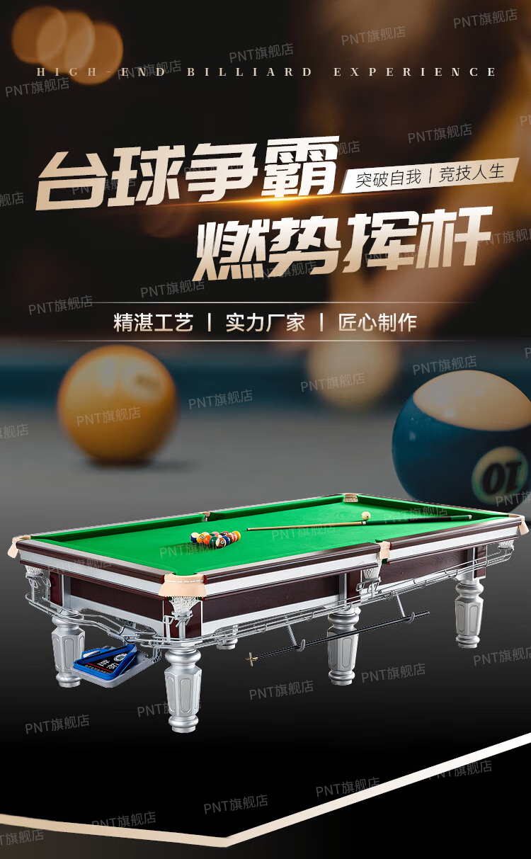 PNT (installation included) billiard table commercial standard ball room marble Chinese black eight billiards case table tennis two-in-one 9 feet silver model wooden library + marble plate + ball collector