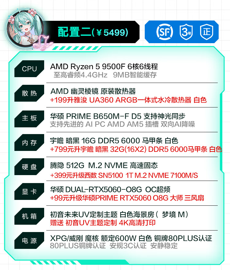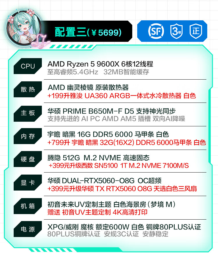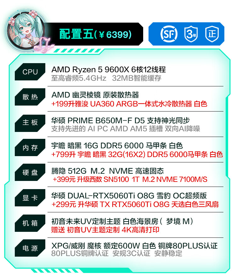 ASUS brand subsidy AMD 9600X ASUS RTX5070 5060Ti host 5060 desktop assembly computer game live broadcast AI design rendering video editing complete machine configuration 7 9600X + ASUS 5060TI-16G