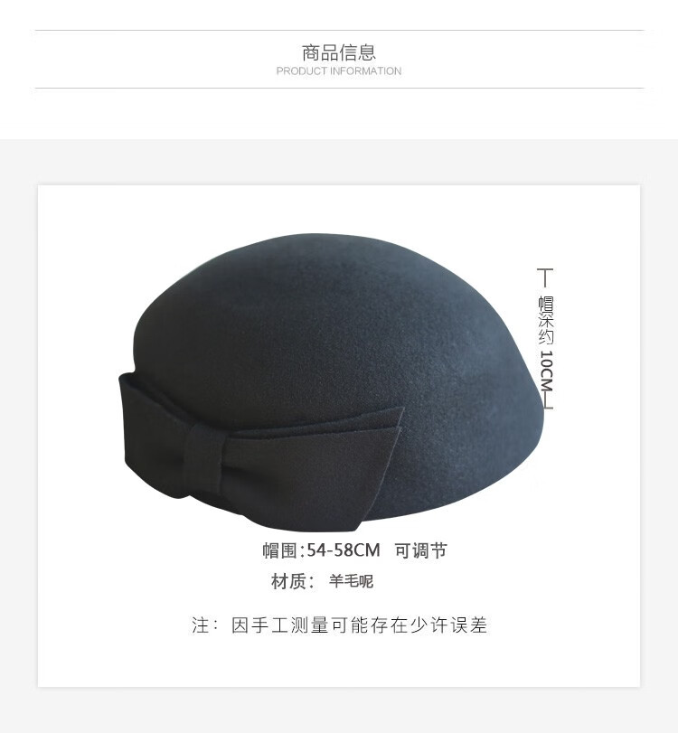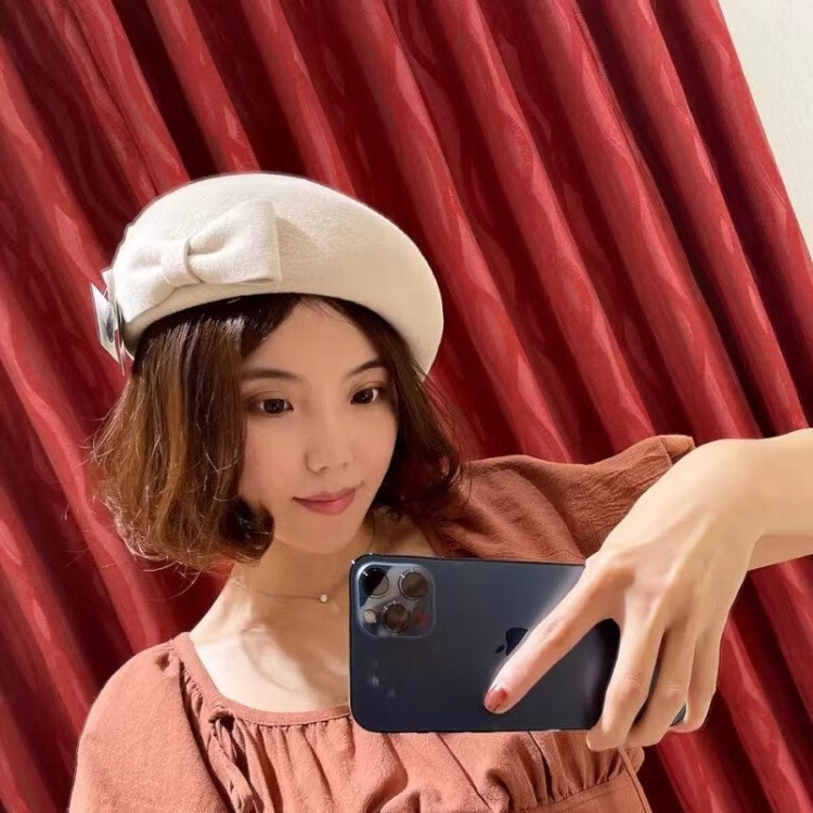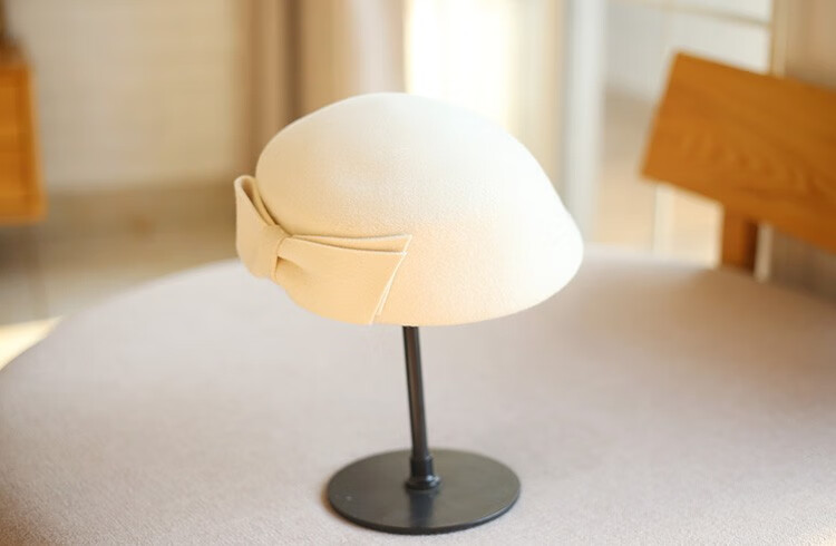 Hanqing mid-summer, autumn and winter woolen woolen bow, retro beret, painter hat, fashion felt hat for women traveling and shopping, white XXS adjustable