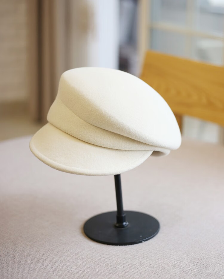 Hanqing mid-summer Japanese ca4 temperament Australian wool hemmed duck top hat youth felt hat newsboy hat knight hat women's autumn milky white adjustable