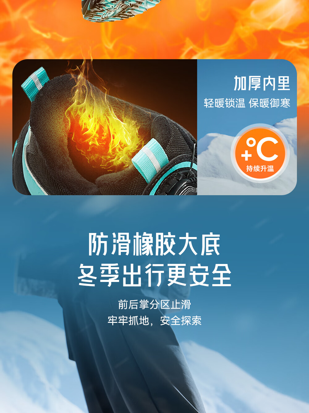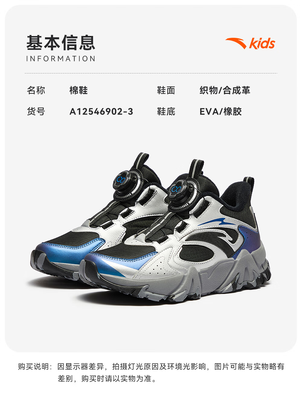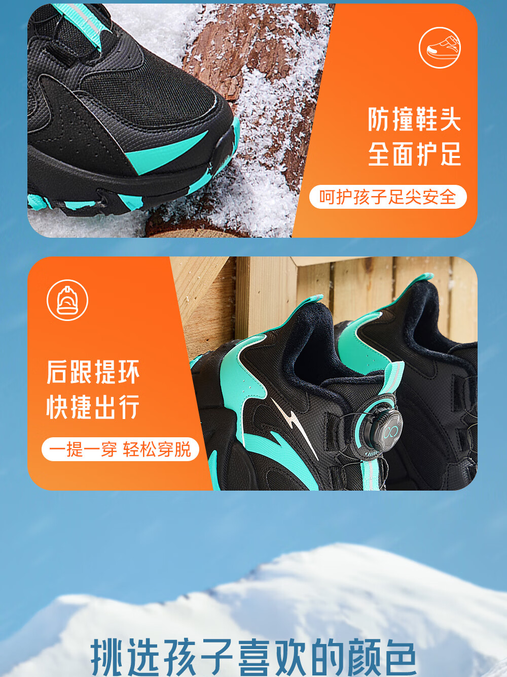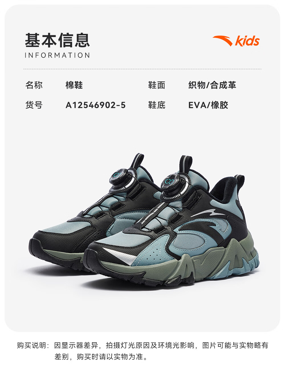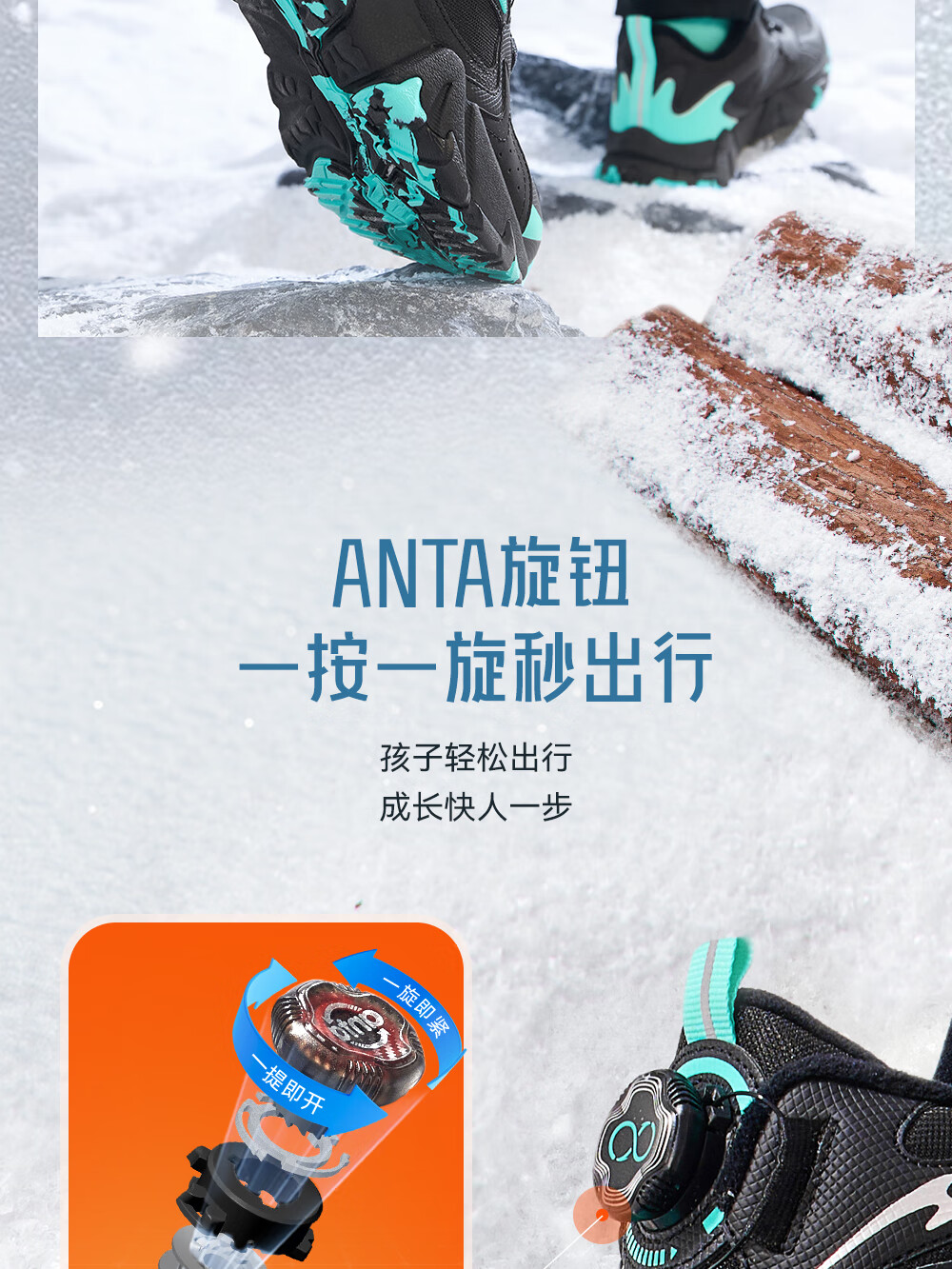 Anta children's cotton shoes for boys and girls winter non-slip knob buckle high top plus velvet warm outdoor snow boots two cotton shoes store manager recommended black/fluorescent aqua-4 35 shoe inner length 22cm