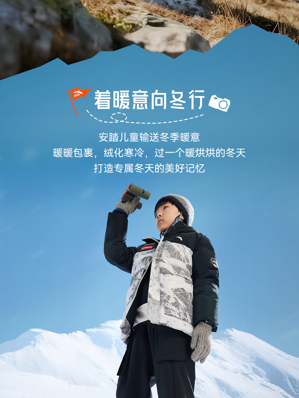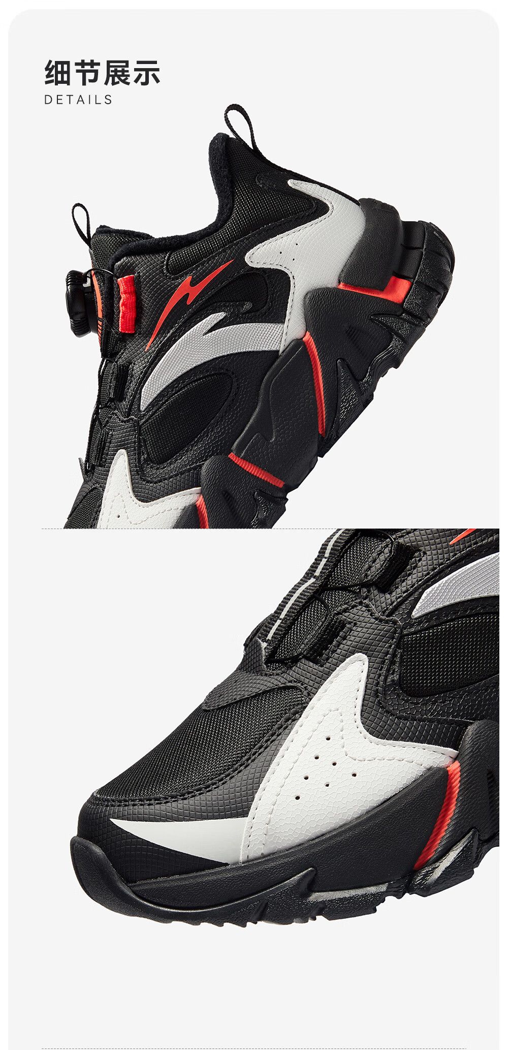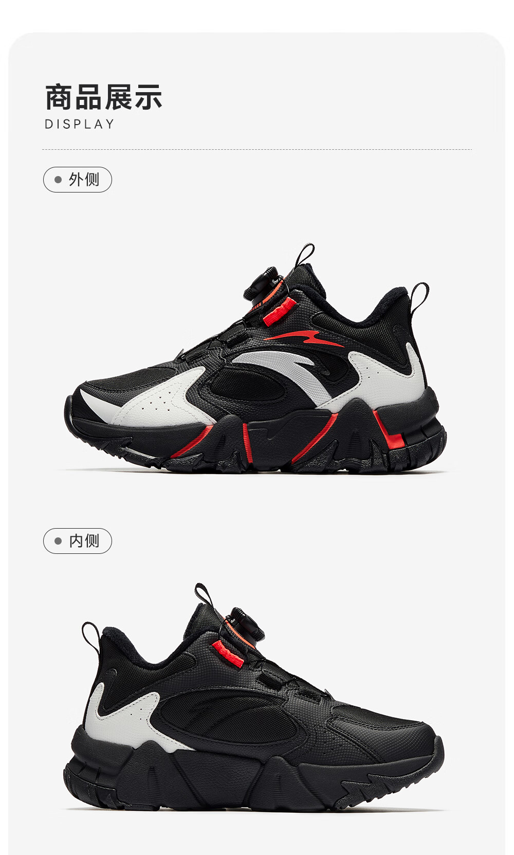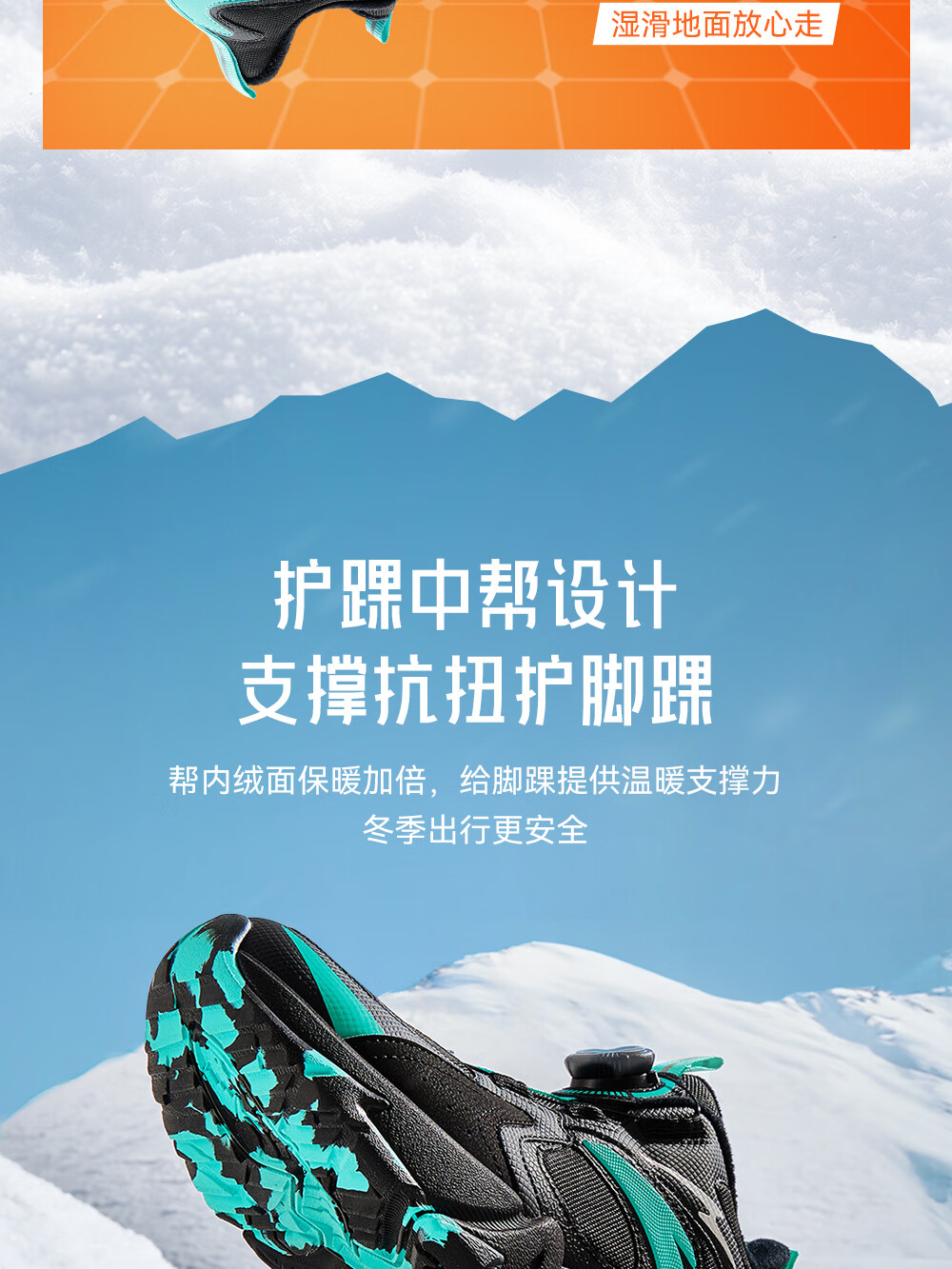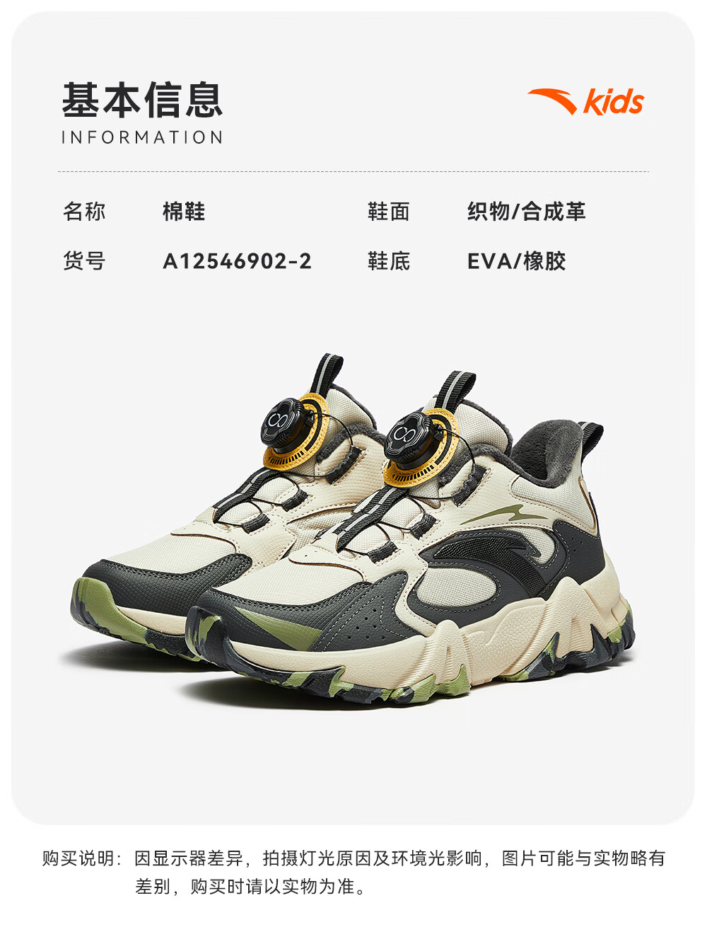 Anta children's cotton shoes for boys and girls winter non-slip knob buckle high top plus velvet warm outdoor snow boots two cotton shoes store manager recommended black/fluorescent aqua-4 35 shoe inner length 22cm
