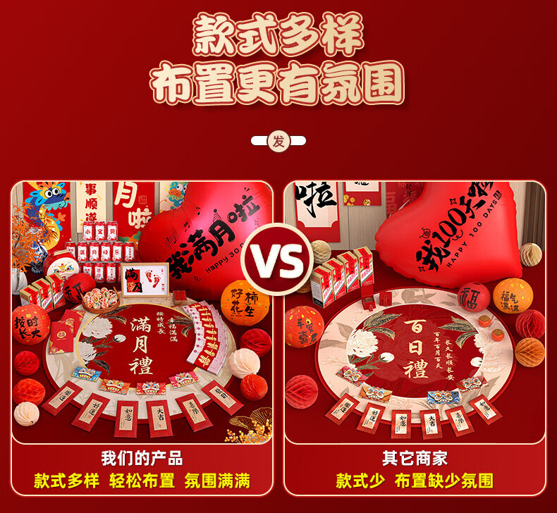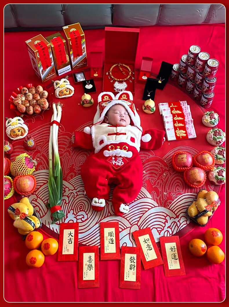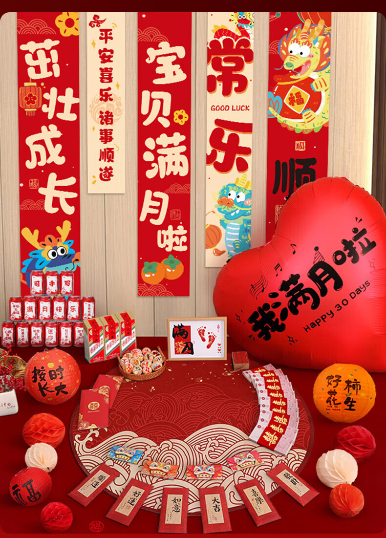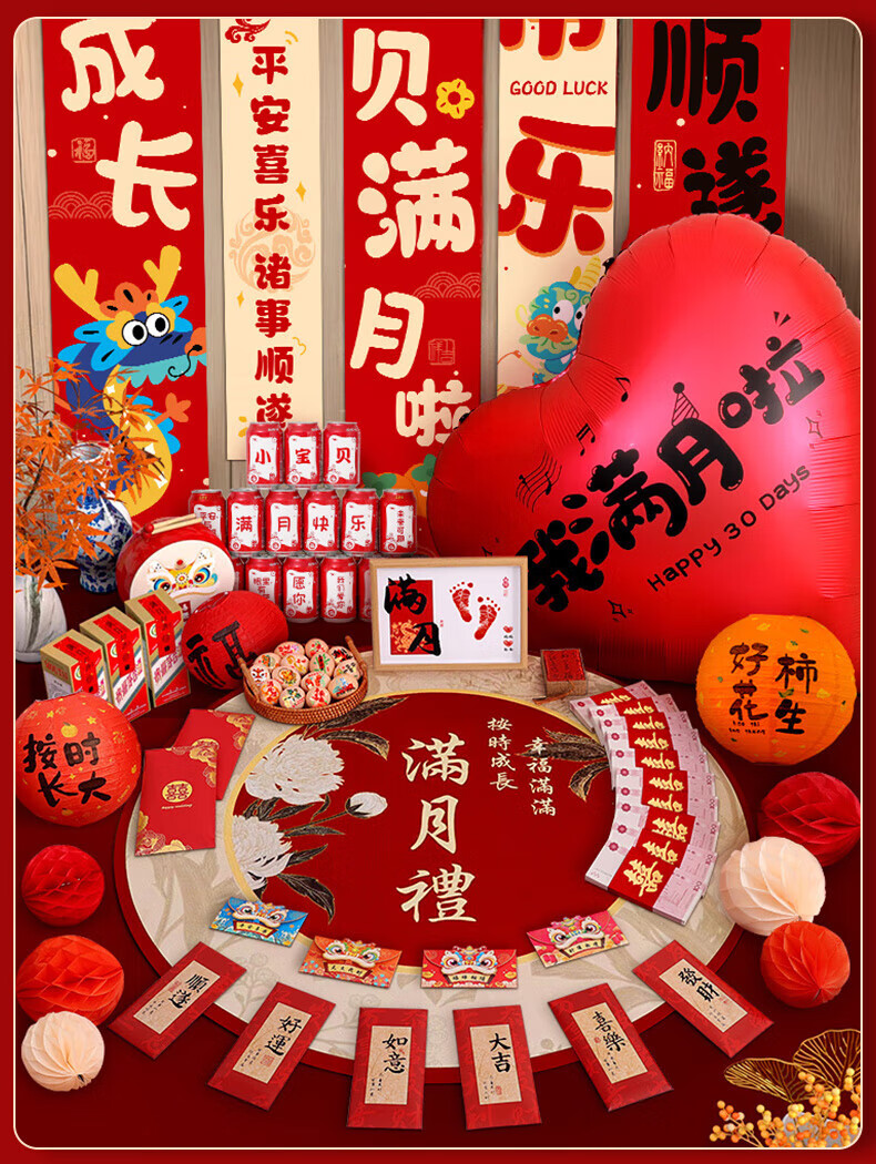 Fengxi's Bed Snake Baby's Hundred-Day Banquet, Hundred-Day Decoration, Full Moon Home Arrangement, Photo Props, Newborn Baby's Ritual Sense of Bliss, Full Moon 18-piece Set, Customized Coke