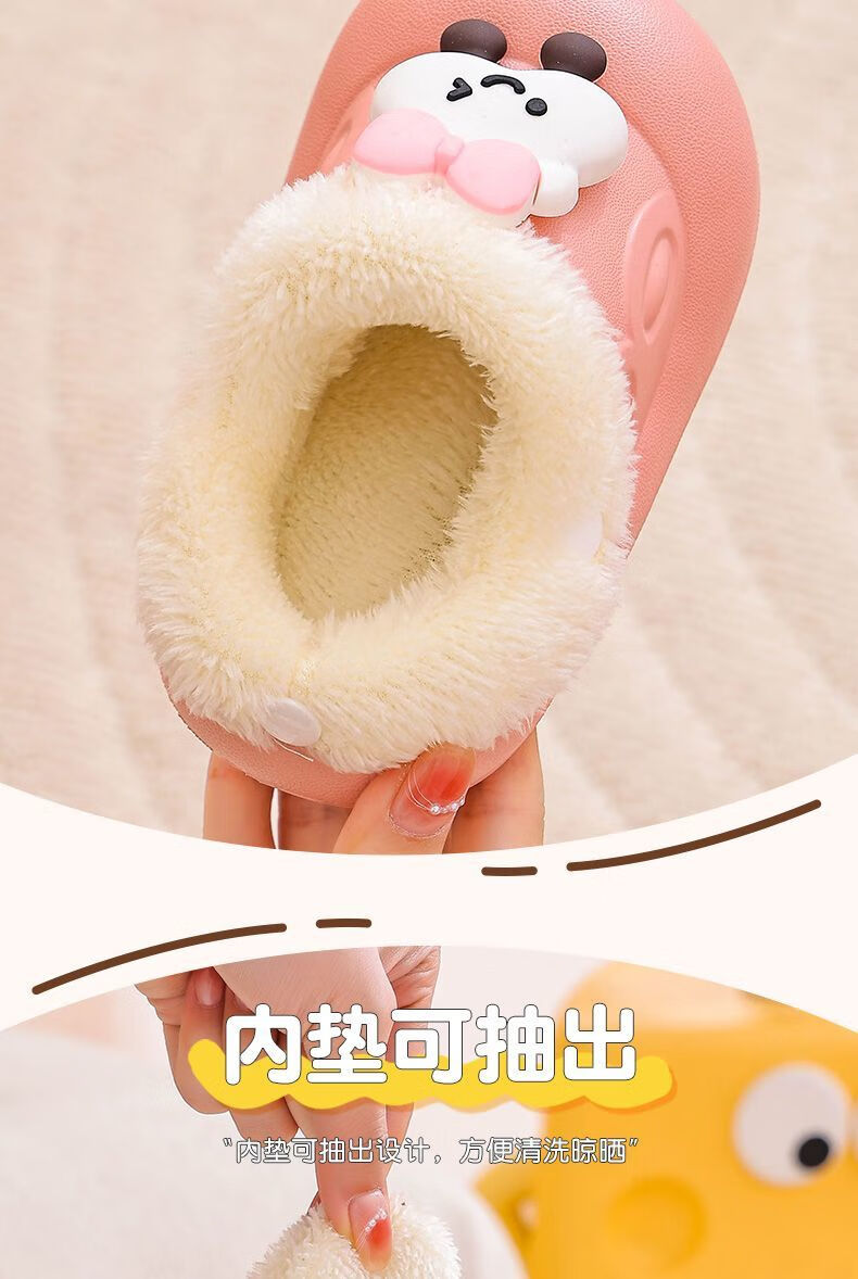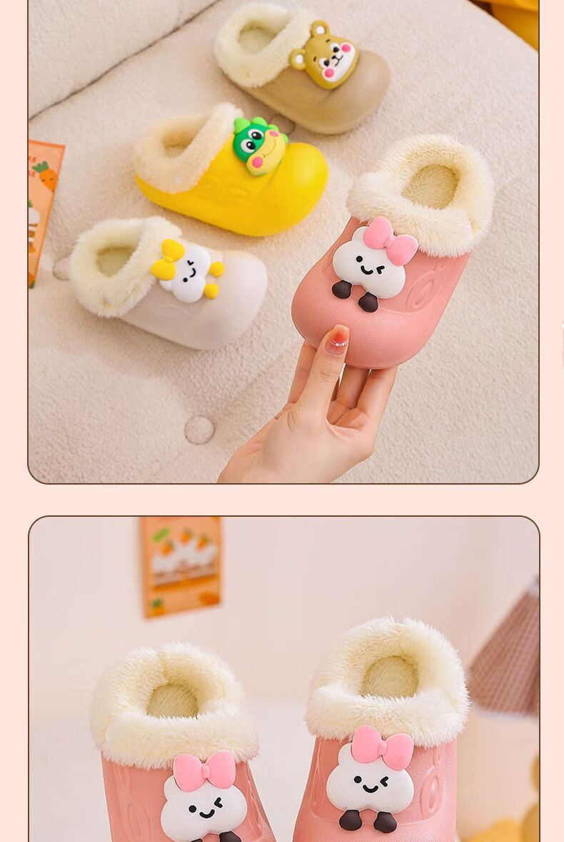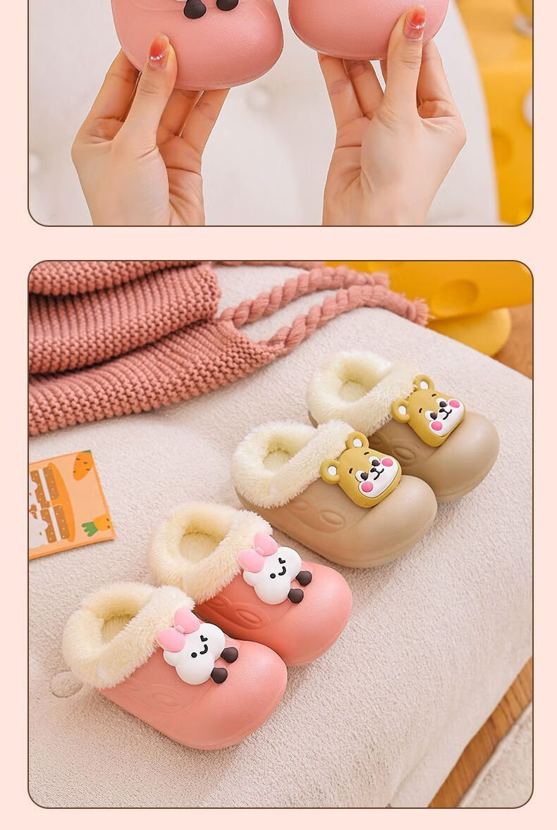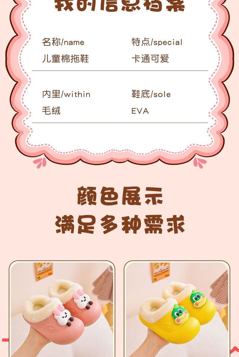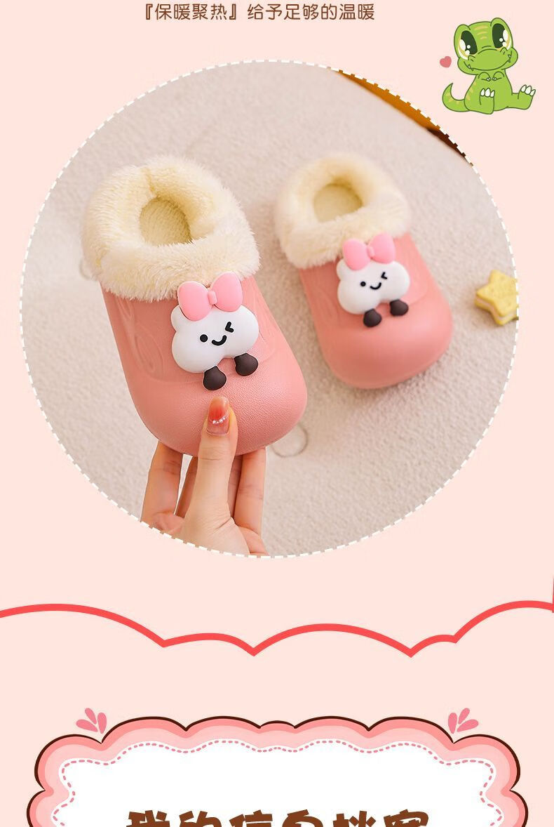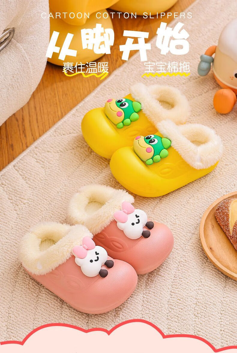 Removable and washable children's cotton slippers for girls indoor baby girls waterproof and warm home new furry slippers for autumn and winter removable and washable inner liner dinosaur-green 34 34-35 size shoe inner length 20.5CM/foot 19.5 wear