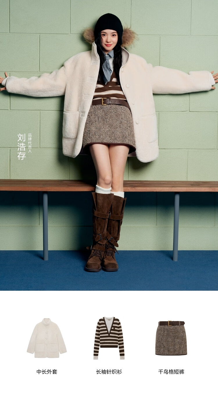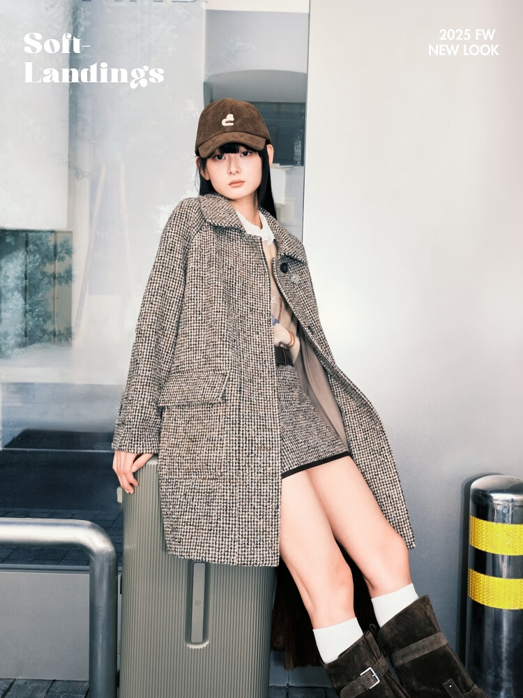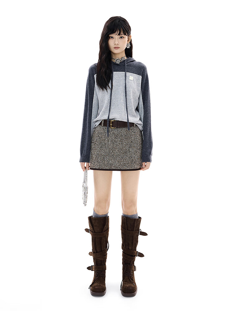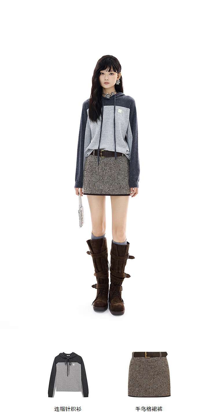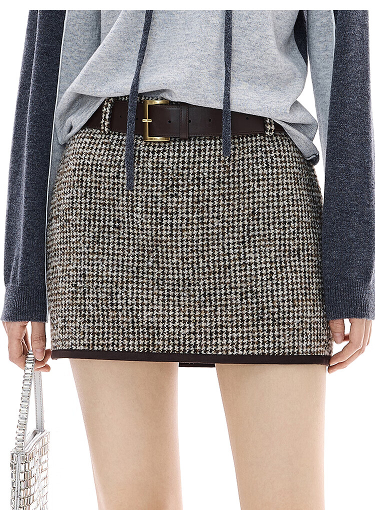 DZZIT shorts 2025 winter new retro style houndstooth hemming design culottes women 3J4Q1503W yellow brown S