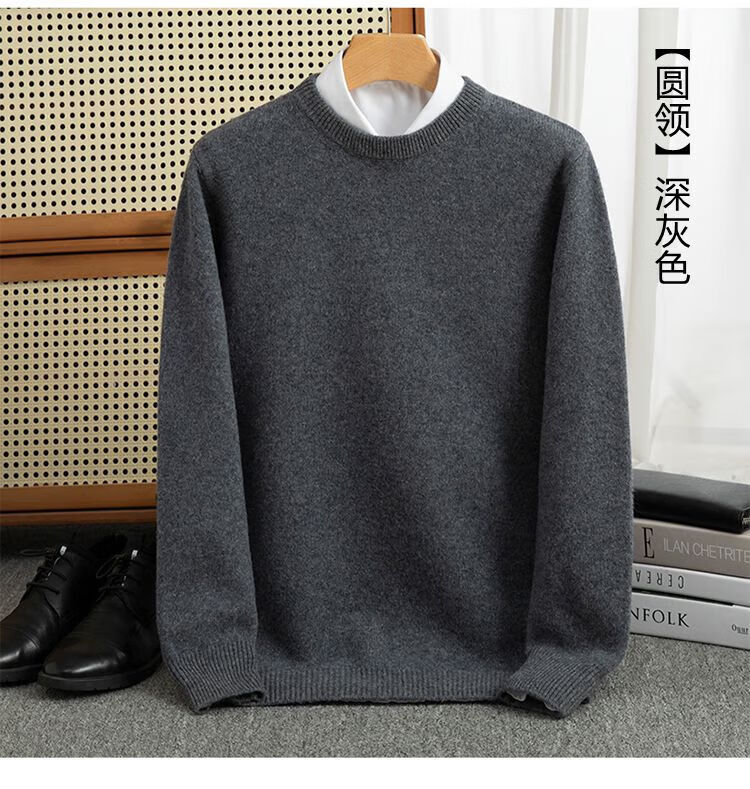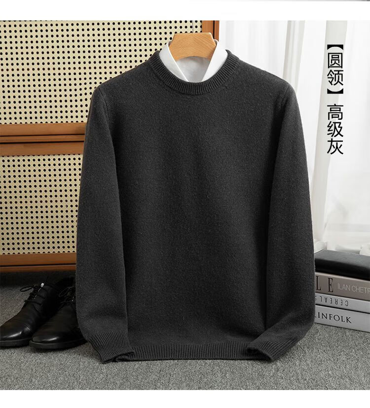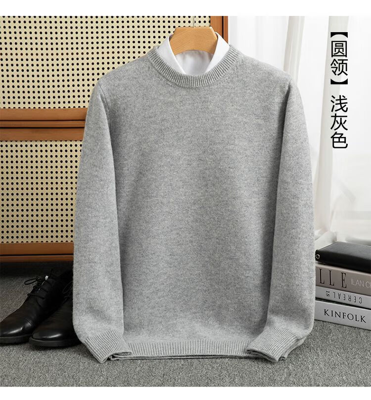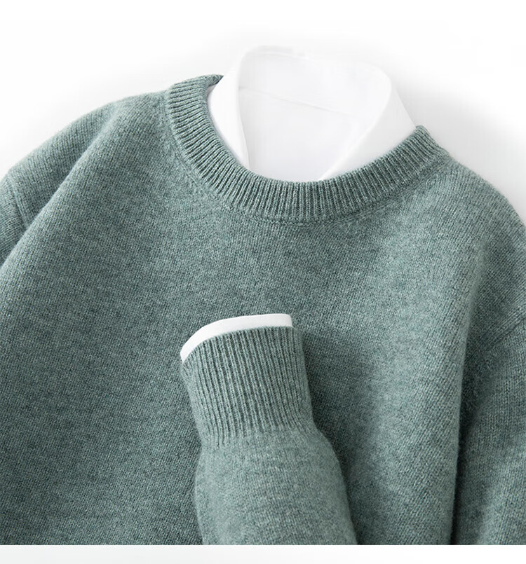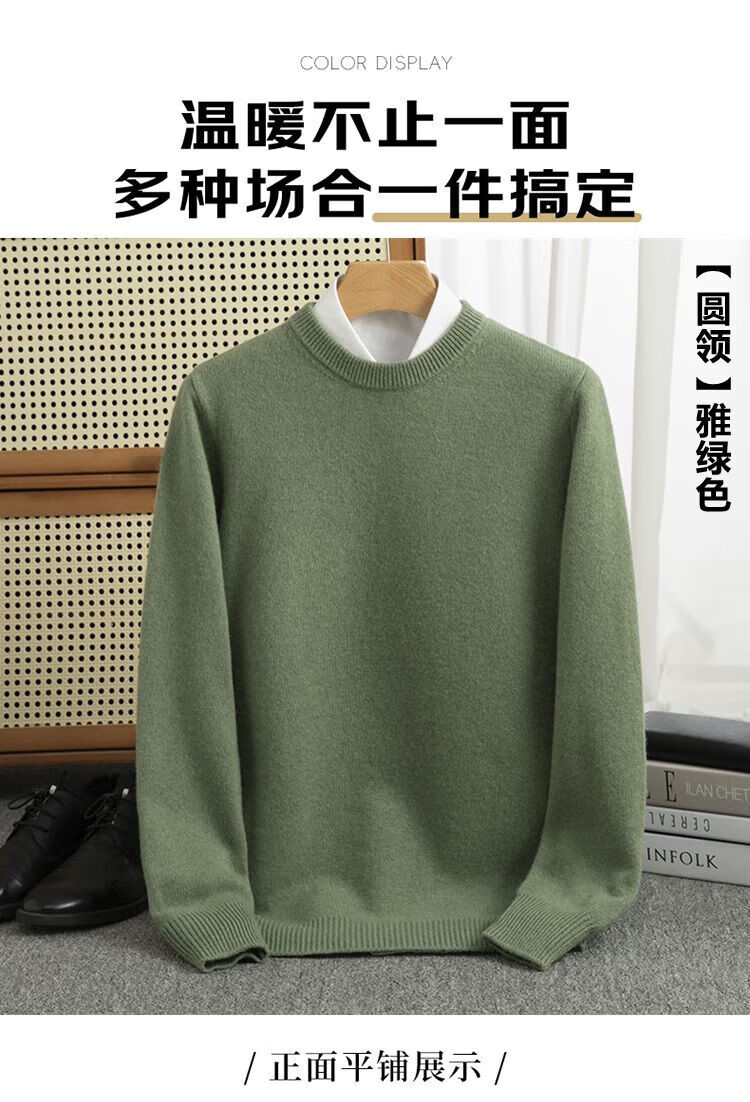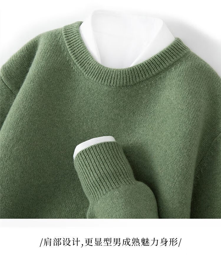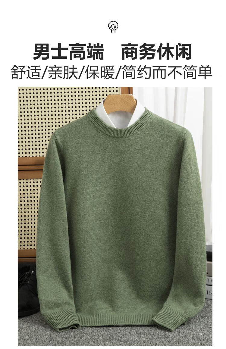 ROMON's new autumn and winter men's round neck bottoming sweater, loose large size thickened pure wool knitted bottoming sweater, round neck, elegant green XL, suitable for 160-175Jin Jin is equal to about 0.5 kg