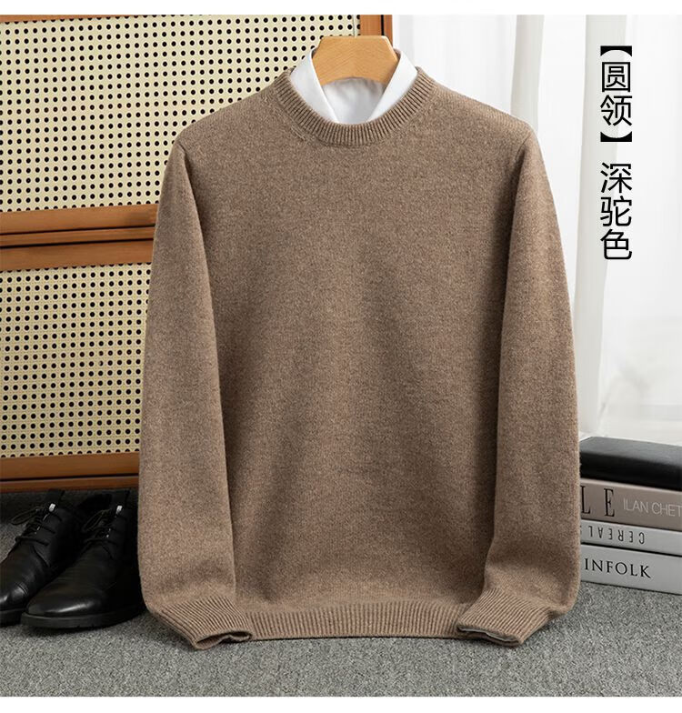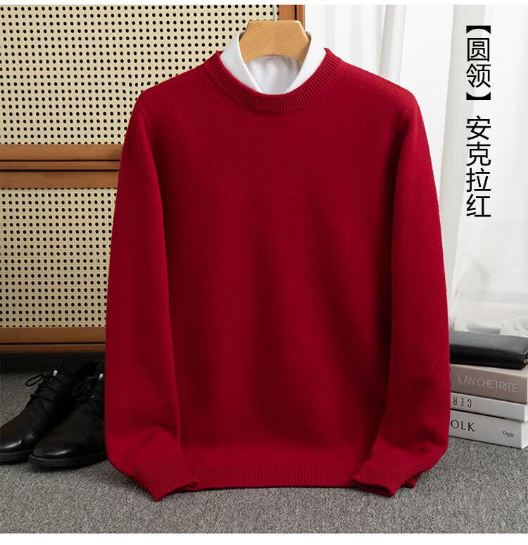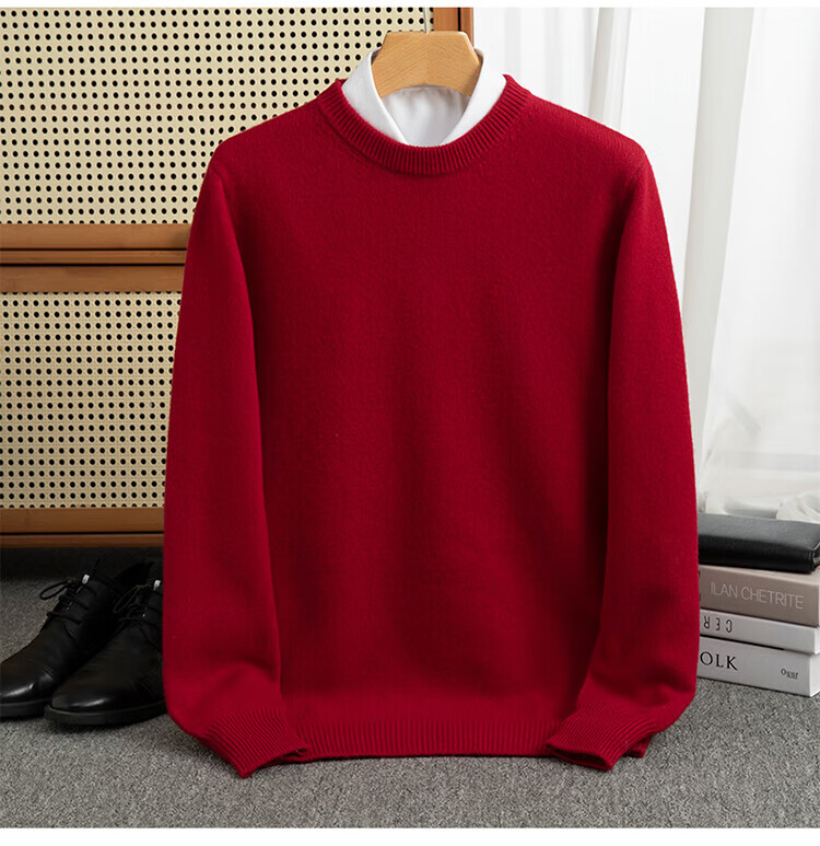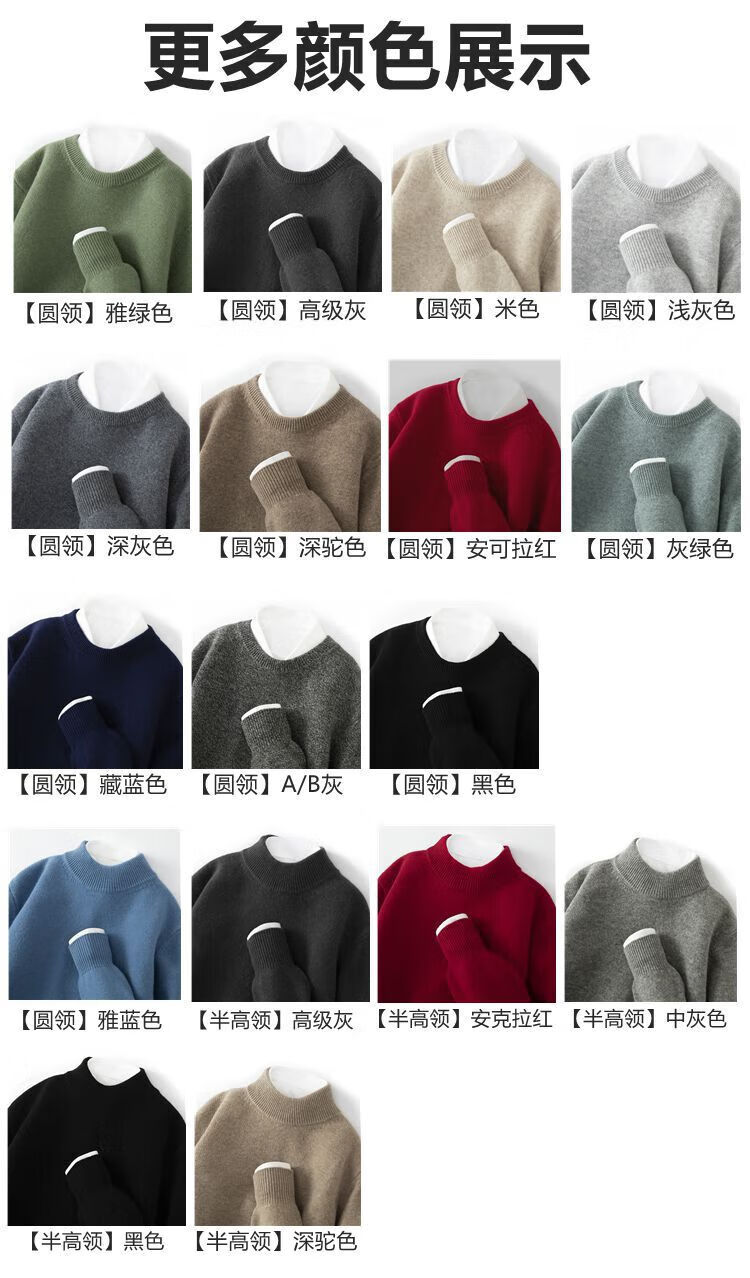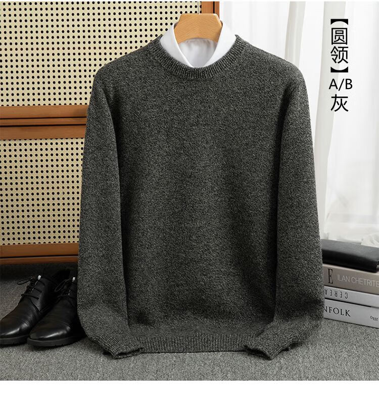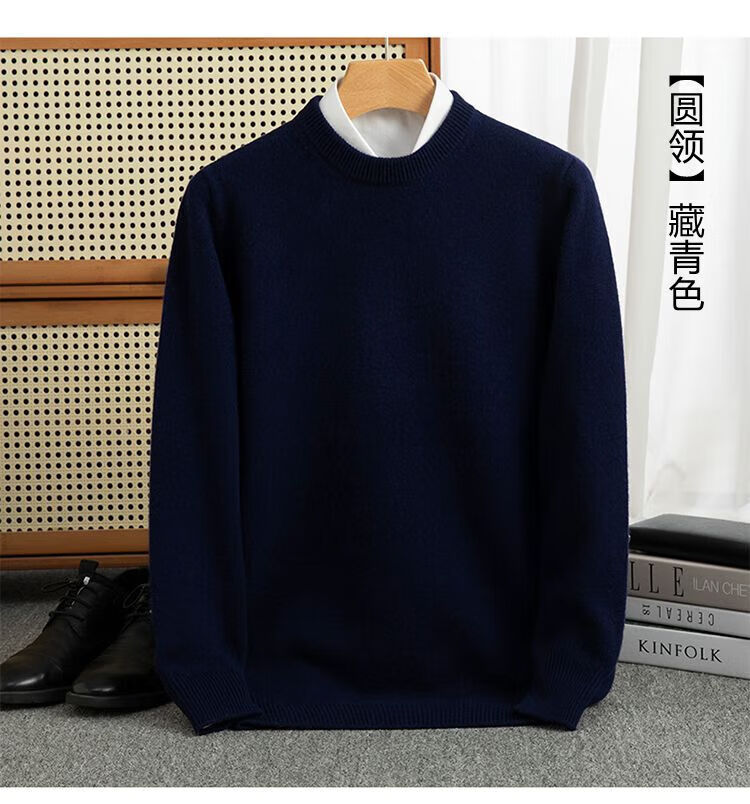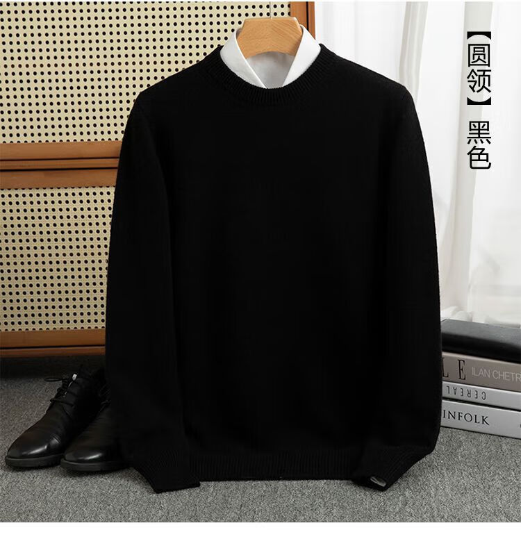 ROMON's new autumn and winter men's round neck bottoming sweater, loose large size thickened pure wool knitted bottoming sweater, round neck, elegant green XL, suitable for 160-175Jin Jin is equal to about 0.5 kg