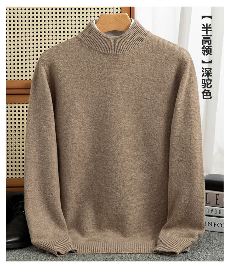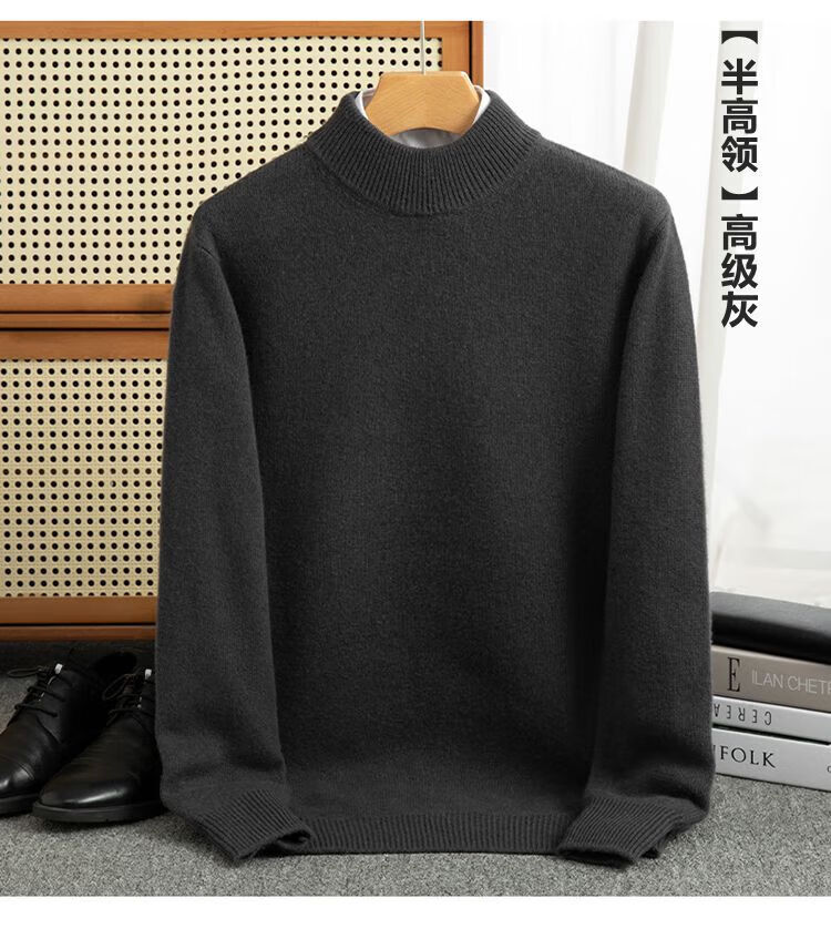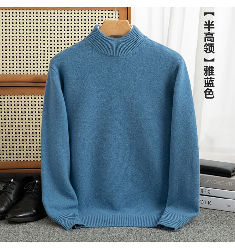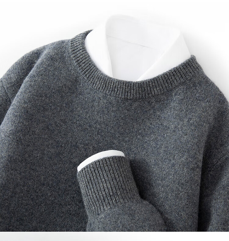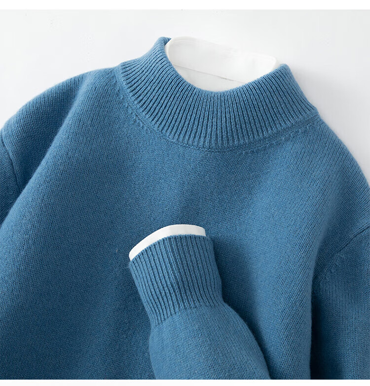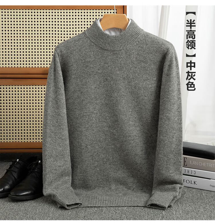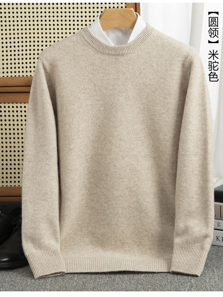 ROMON's new autumn and winter men's round neck bottoming sweater, loose large size thickened pure wool knitted bottoming sweater, round neck, elegant green XL, suitable for 160-175Jin Jin is equal to about 0.5 kg