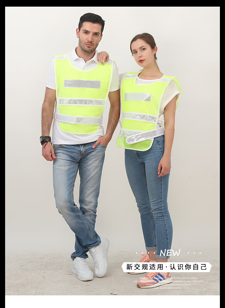 Reflective vest traffic car construction vest safety clothing car car night new traffic rules riding printable fluorescent yellow net white strips