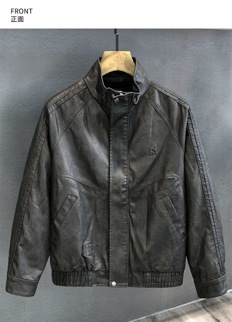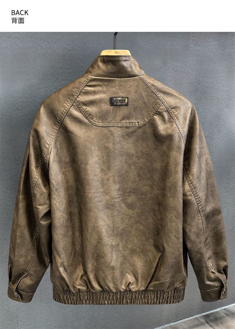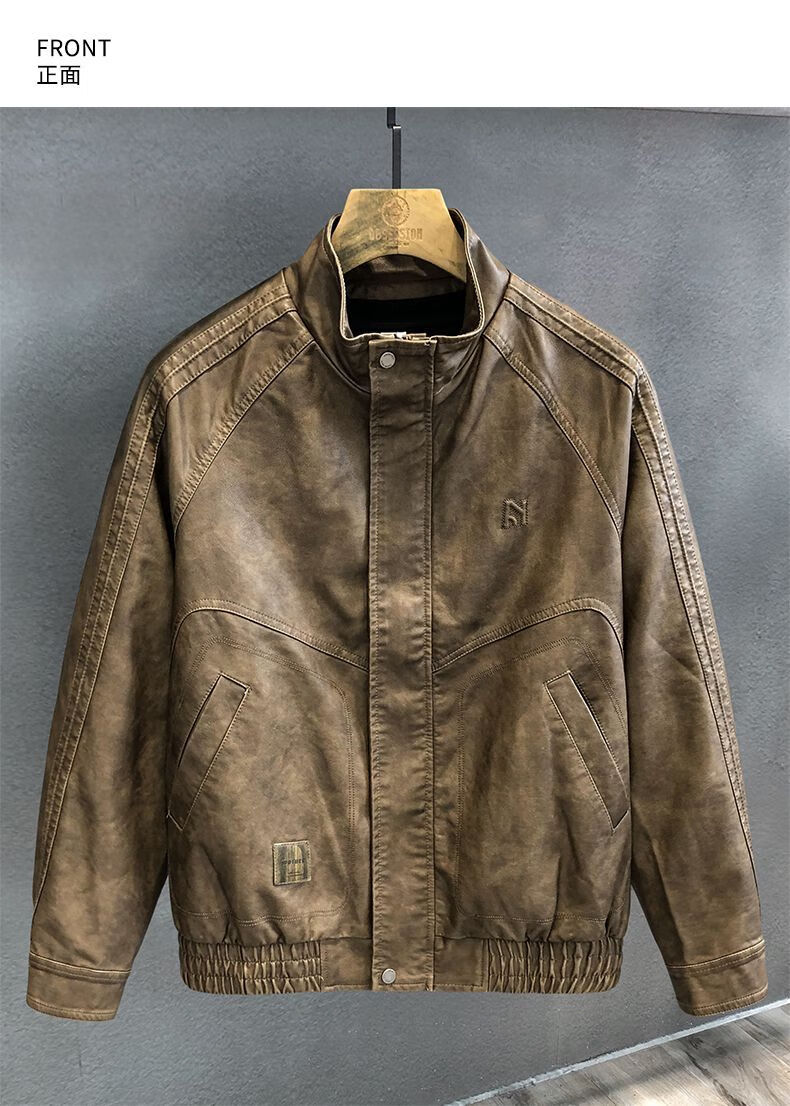 German high-durability washed handsome motorcycle PU leather jacket men's spring and autumn style American windproof leather jacket for men brown handsome loose version 3XL 3XL recommended weight 145-160Jin Jin is equal to 0.5 kg