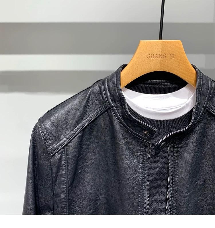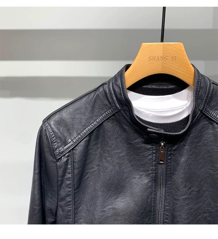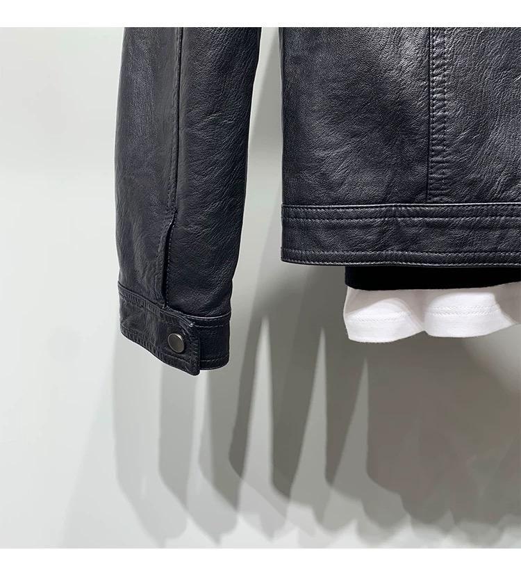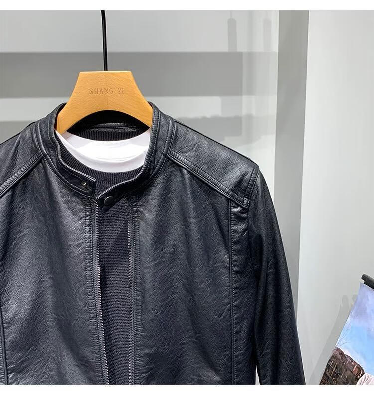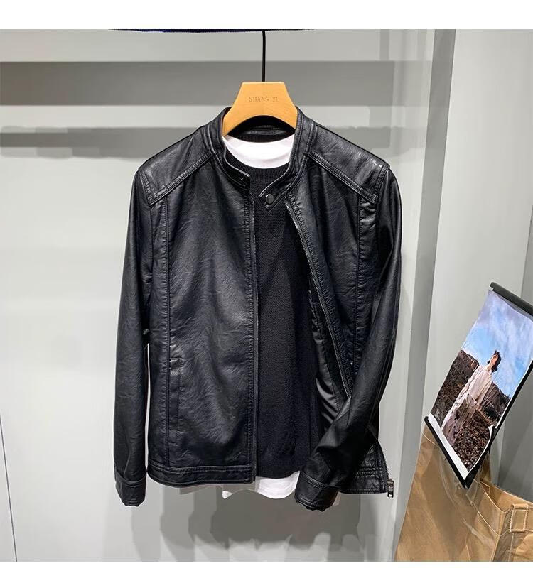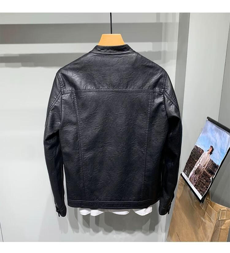 Motorcycle leather jacket for young men spring new Korean version trendy slim and handsome versatile stand-up collar riding leather jacket black XL XL recommended weight 115-130Jin Jin equals 0.5 kg