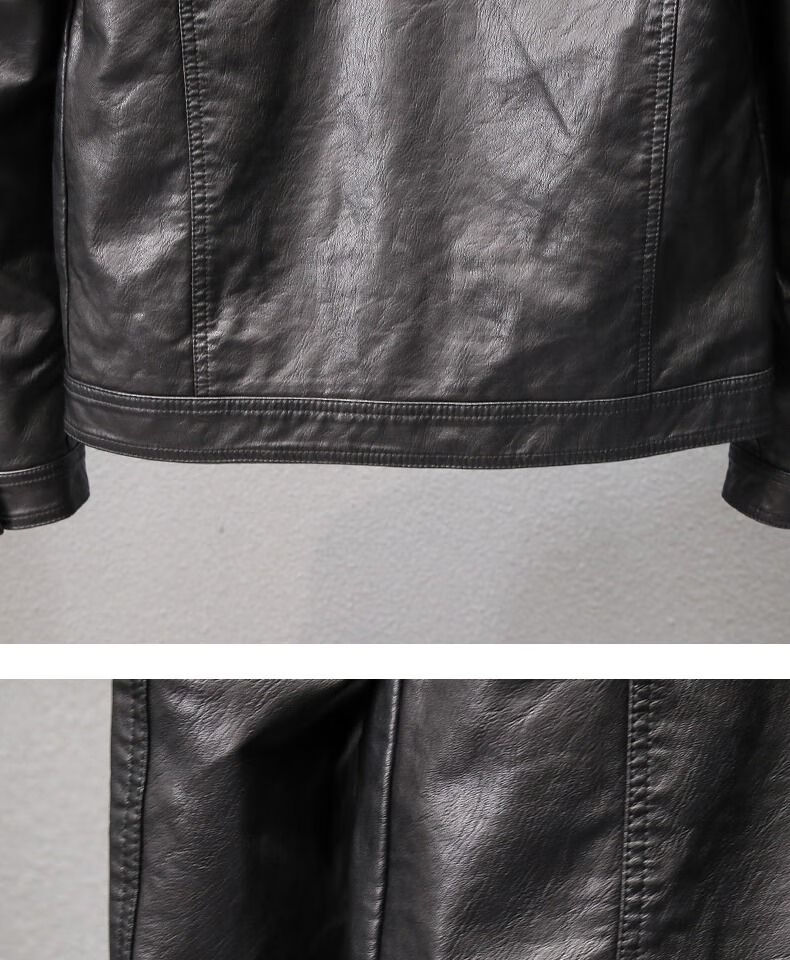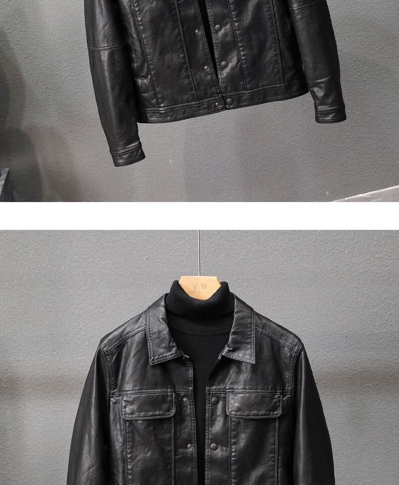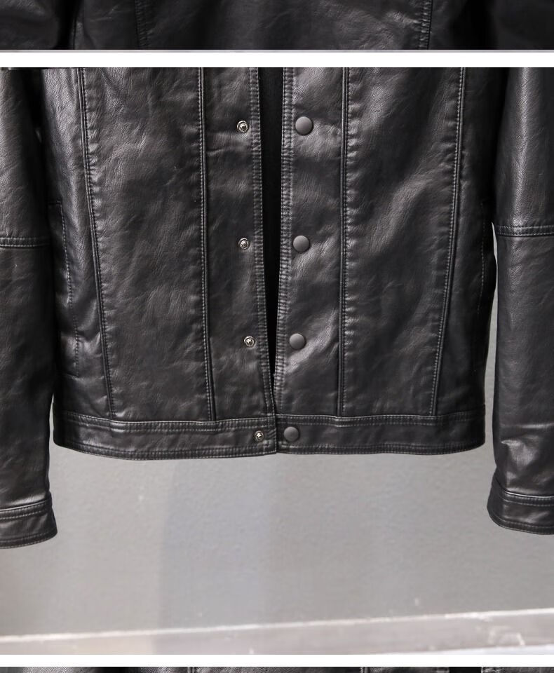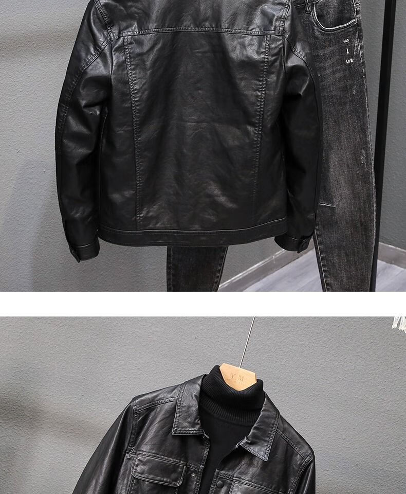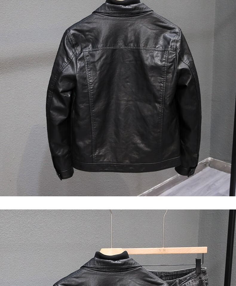 Velvet thickened leather jacket men's autumn and winter new Korean style slim youth lapel casual motorcycle leather jacket men's trendy black plus velvet XL XL recommended size 115--130Jin Jin equals 0.5 kg