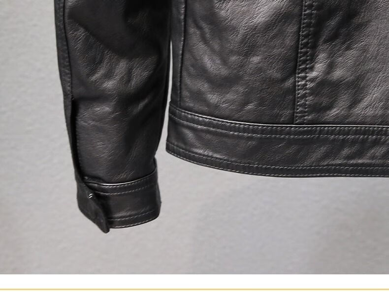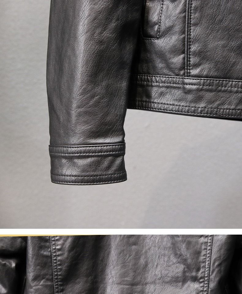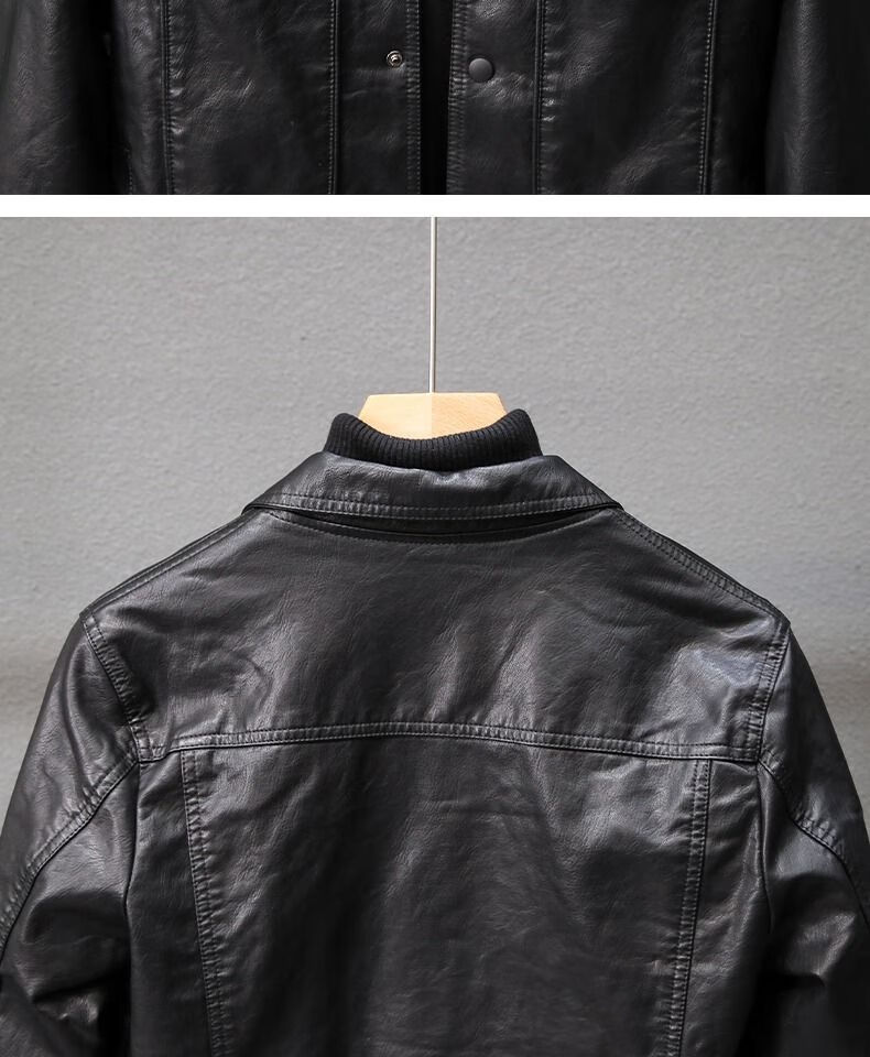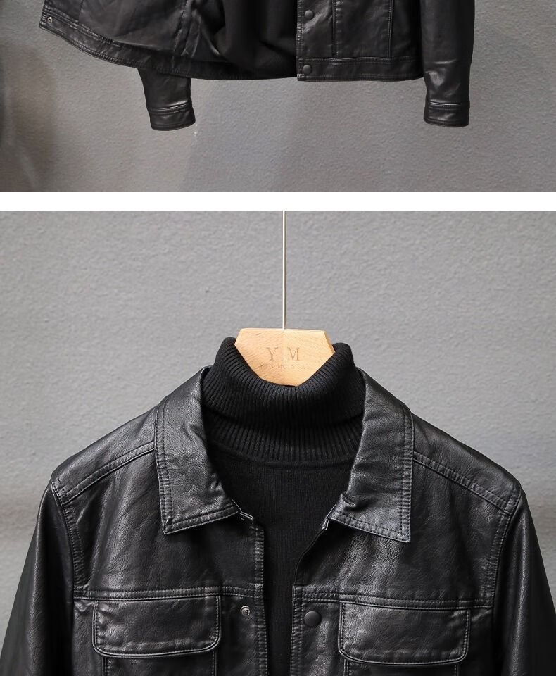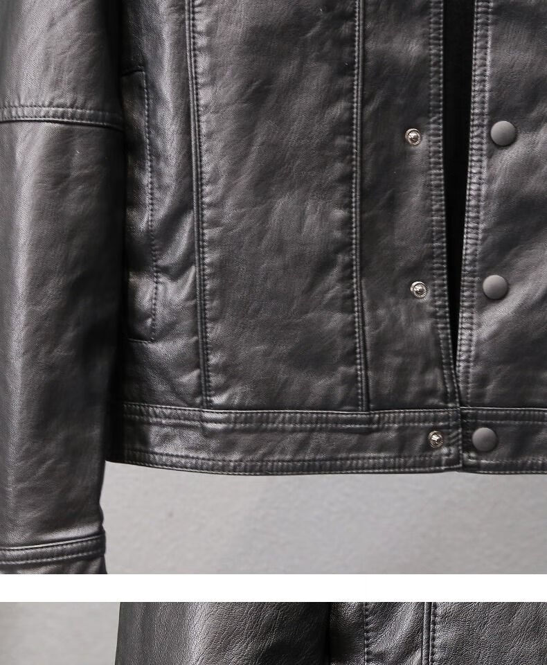 Velvet thickened leather jacket men's autumn and winter new Korean style slim youth lapel casual motorcycle leather jacket men's trendy black plus velvet XL XL recommended size 115--130Jin Jin equals 0.5 kg