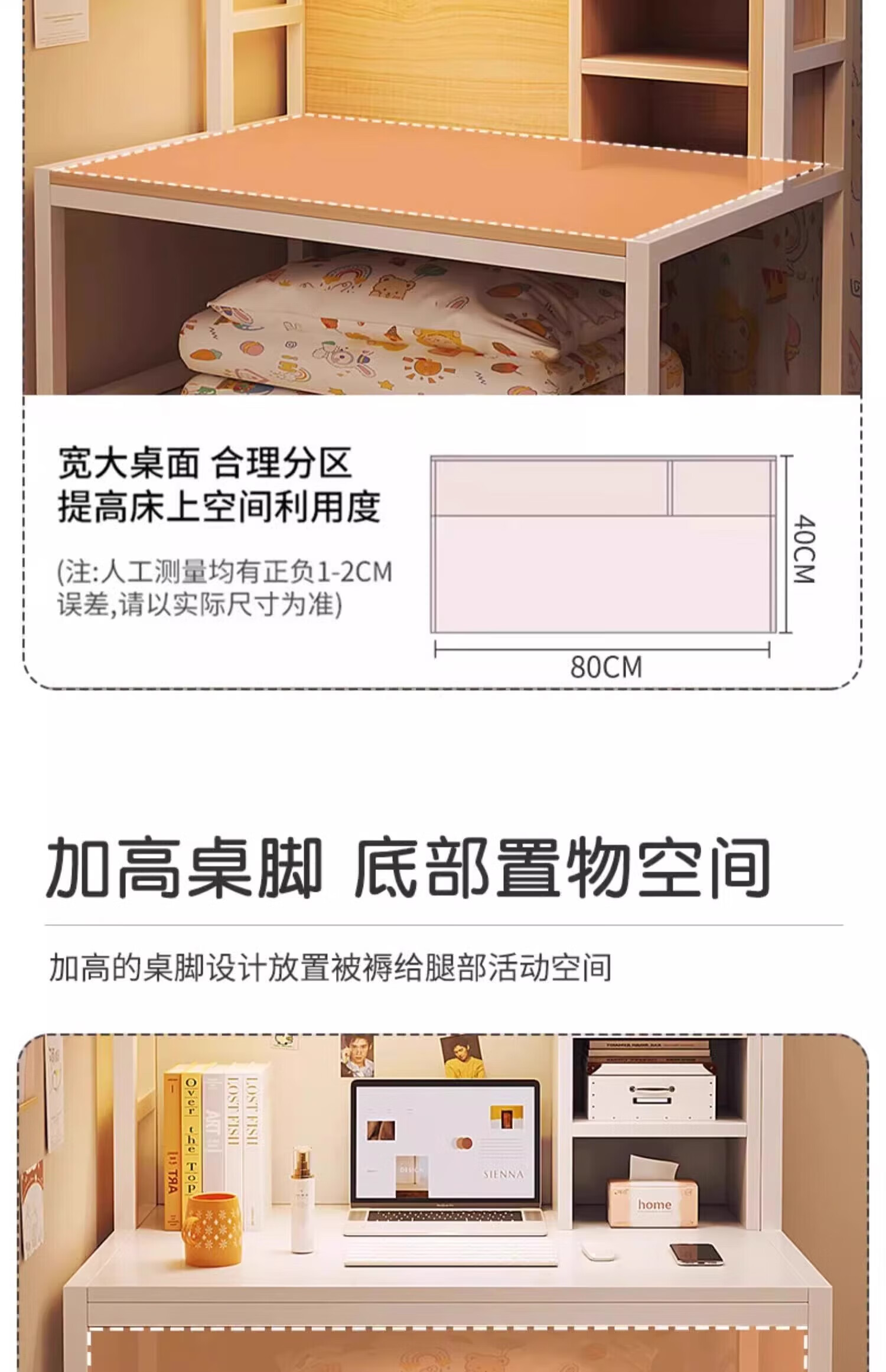 Bed Desk College Student Dormitory Artifact Learning Desk Dormitory Bunk Bunk Lazy Bed Desk Computer Desk Simple Block Conditions Maple Color 80*40*86cm Universal for bunk beds