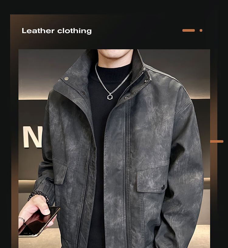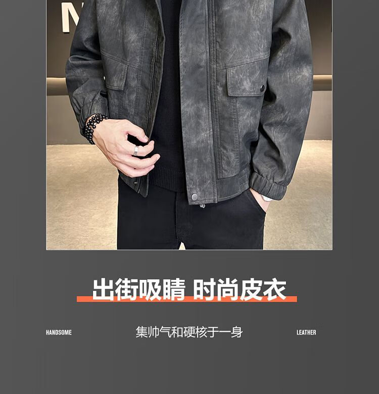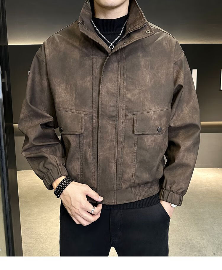 Leather jacket men's autumn trendy brand 2025 new lapel short style slim solid color leather jacket casual handsome men's jacket coffee color XL recommended weight 115-130Jin Jin equals 0.5 kg