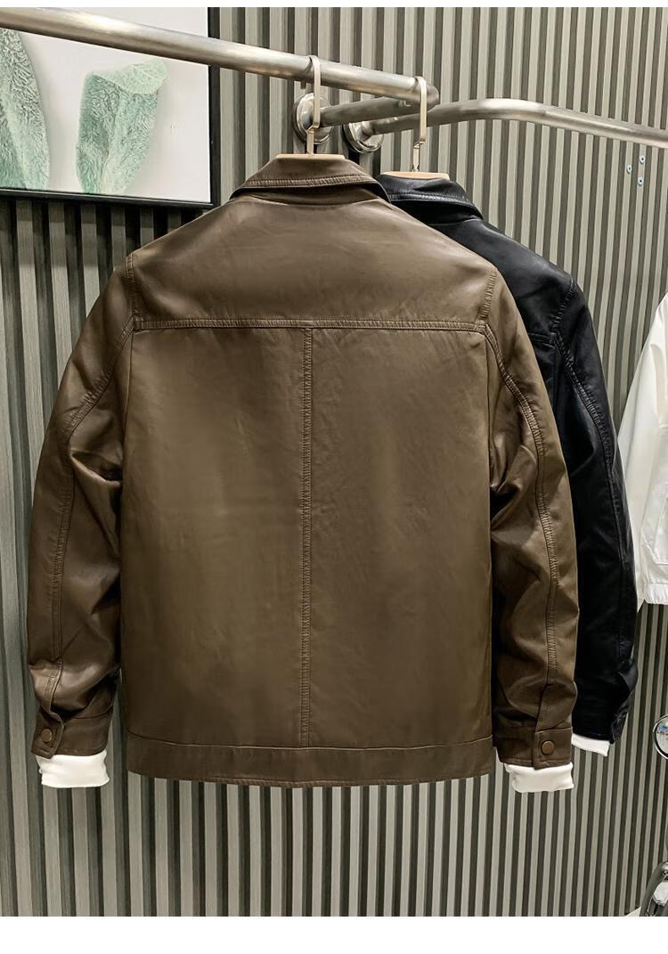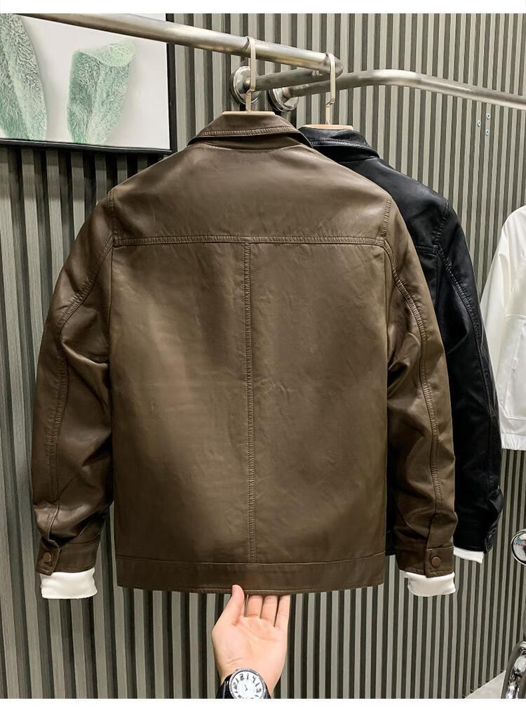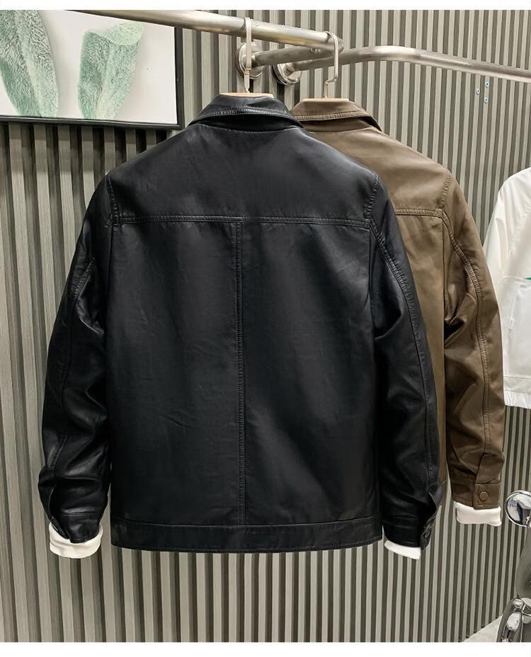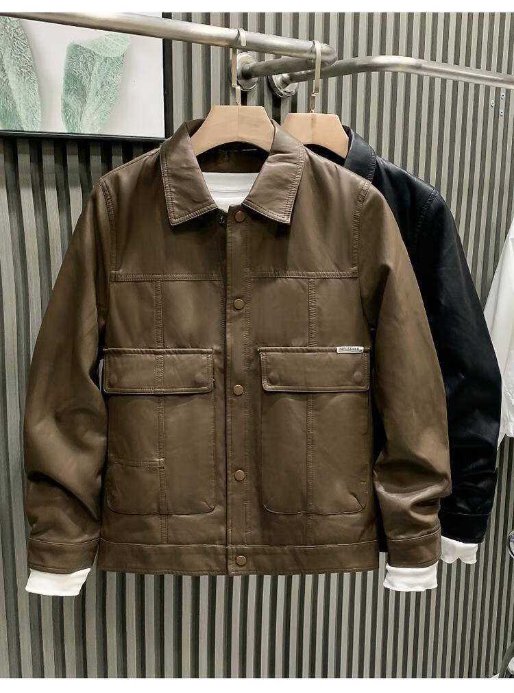 European fashionable leather jacket men's new style pie overcoming the trend handsome fashion brand motorcycle clothing spring and autumn men's leather jacket brown L recommended weight 115-130Jin Jin is equal to 0.5 kg