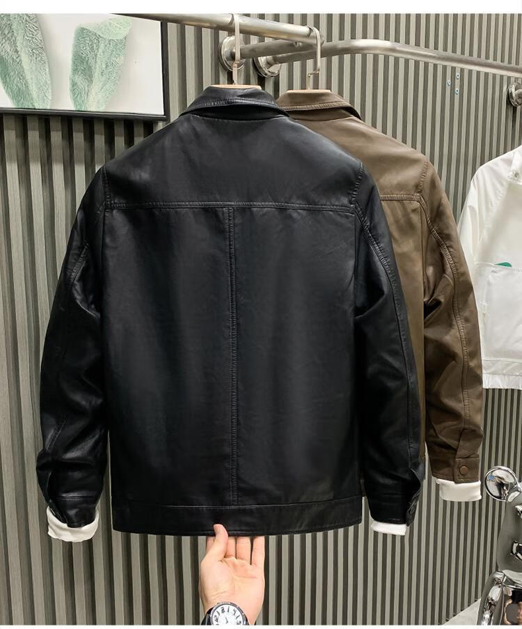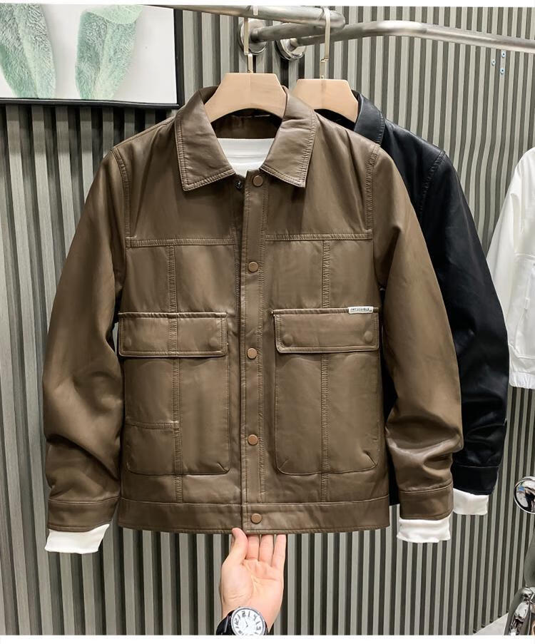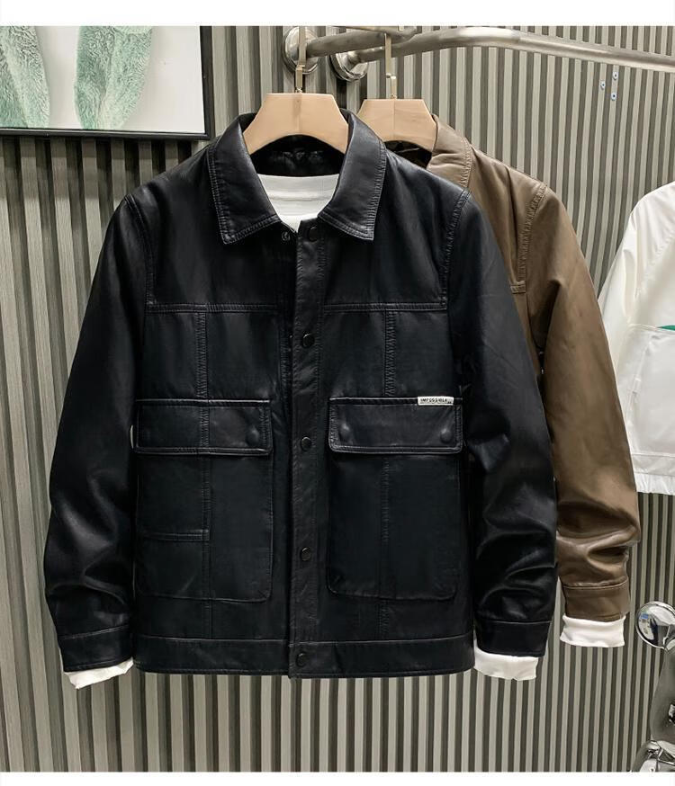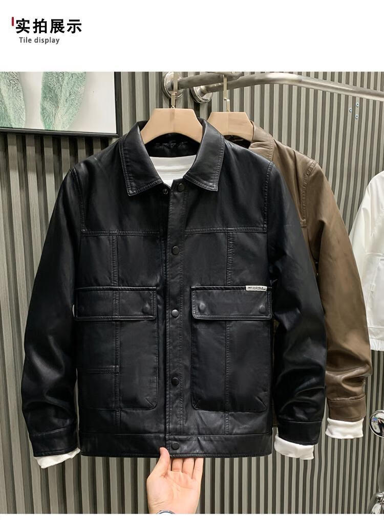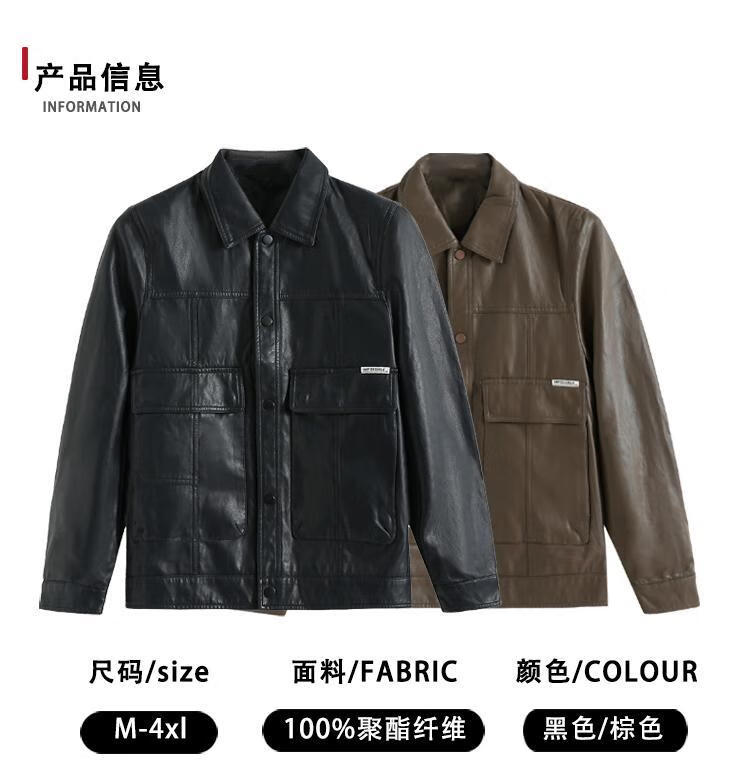 European fashionable leather jacket men's new style pie overcoming the trend handsome fashion brand motorcycle clothing spring and autumn men's leather jacket brown L recommended weight 115-130Jin Jin is equal to 0.5 kg