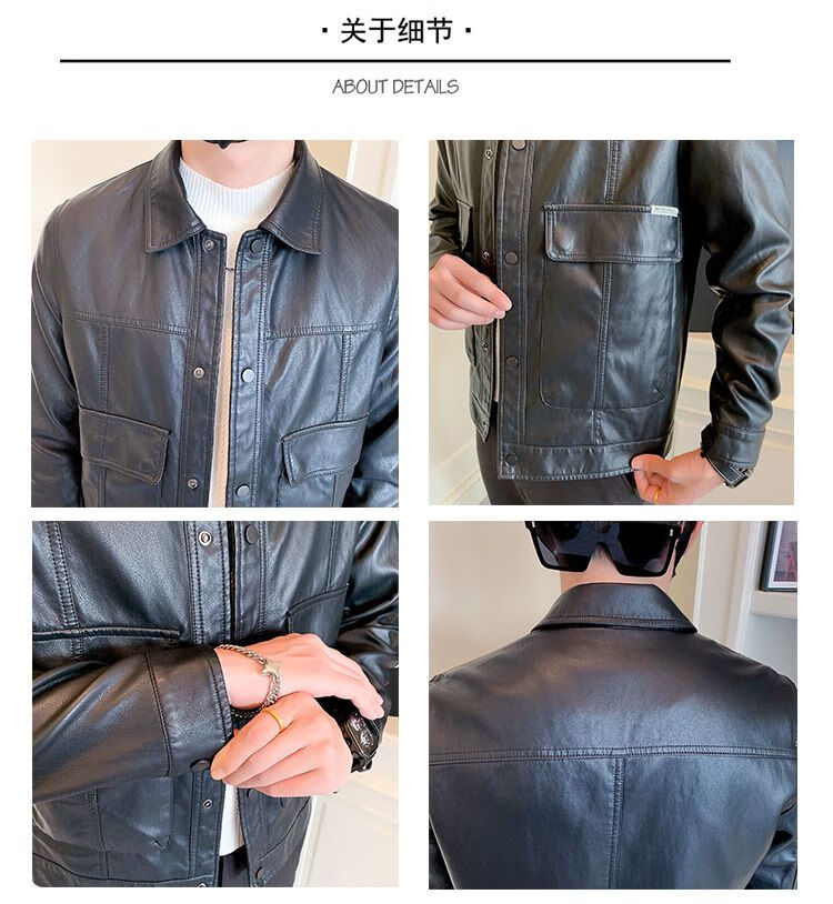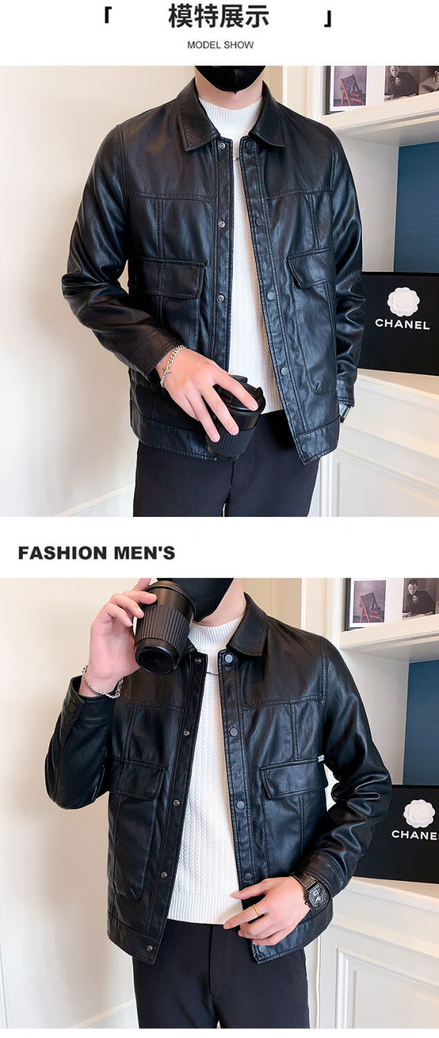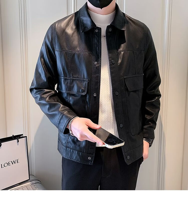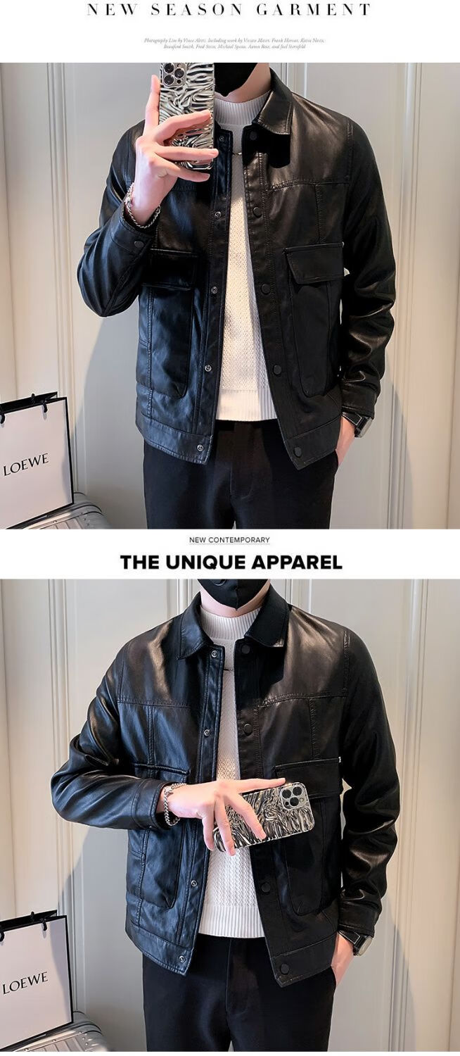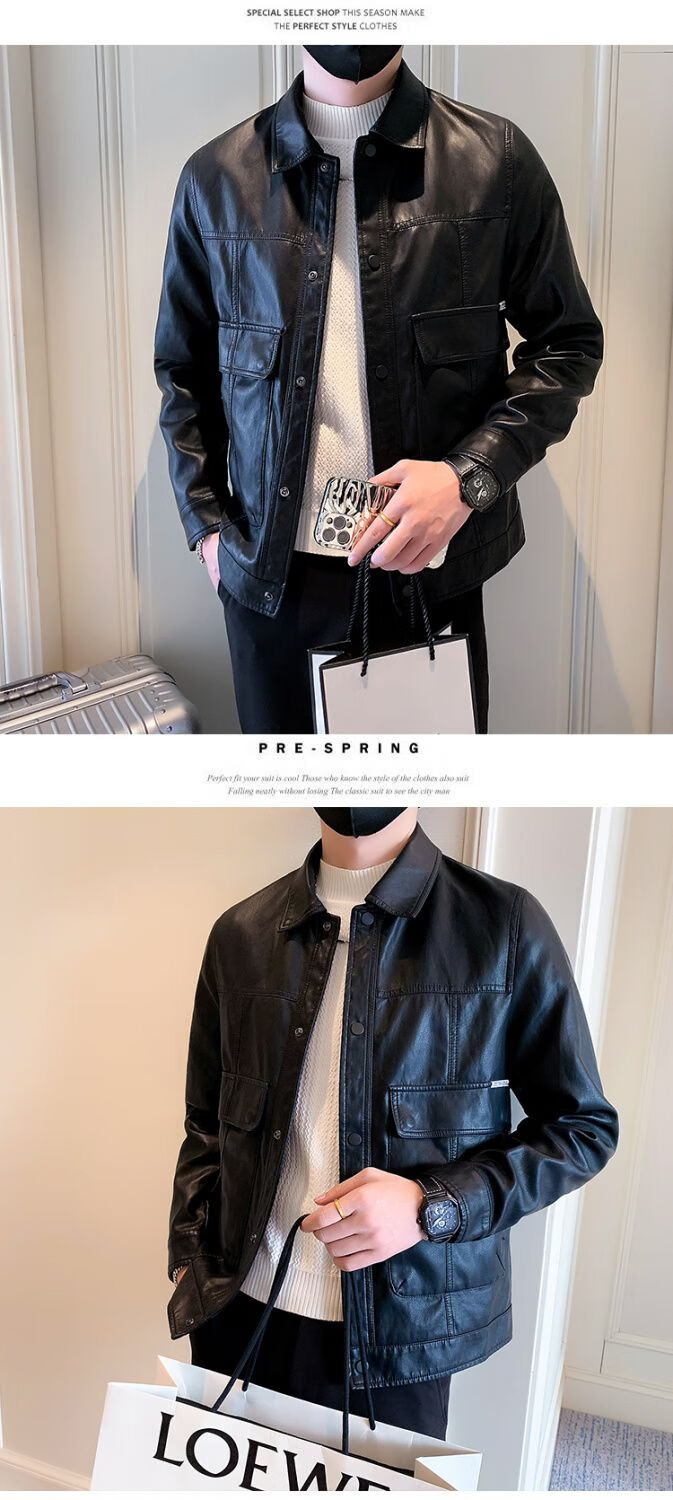 Pu leather jacket men's spring and autumn 2025 new handsome motorcycle leather jacket British yuppie style men's top black 2XL 2XL recommended weight 145-160Jin Jin equals 0.5 kg