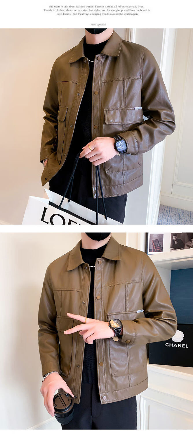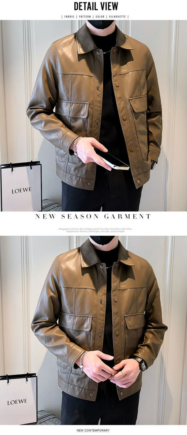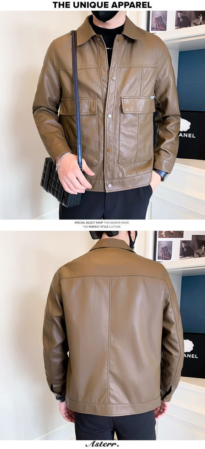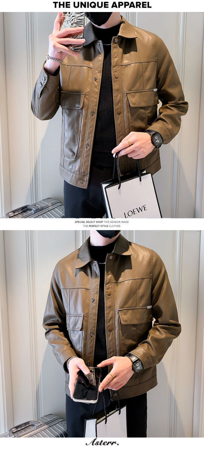 Pu leather jacket men's spring and autumn 2025 new handsome motorcycle leather jacket British yuppie style men's top black 2XL 2XL recommended weight 145-160Jin Jin equals 0.5 kg