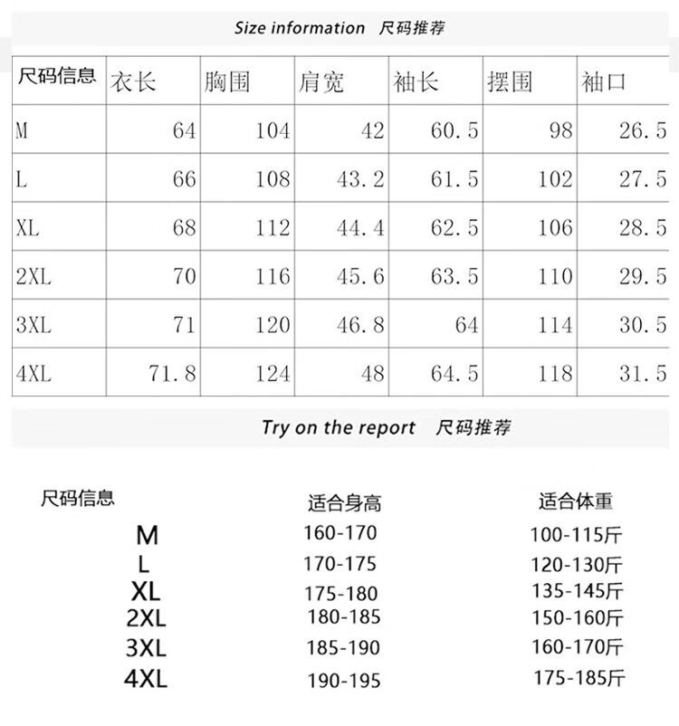 China (cm) 160-165/84-86 165-170 / 88-90 167-172 / 92-96 168-173 / 98-102 170-176 / 106-110