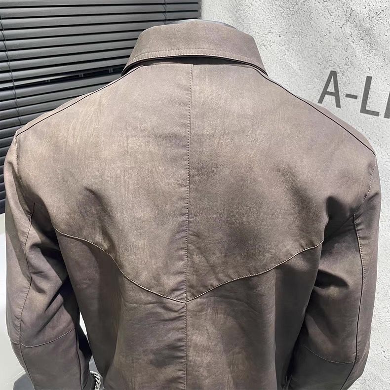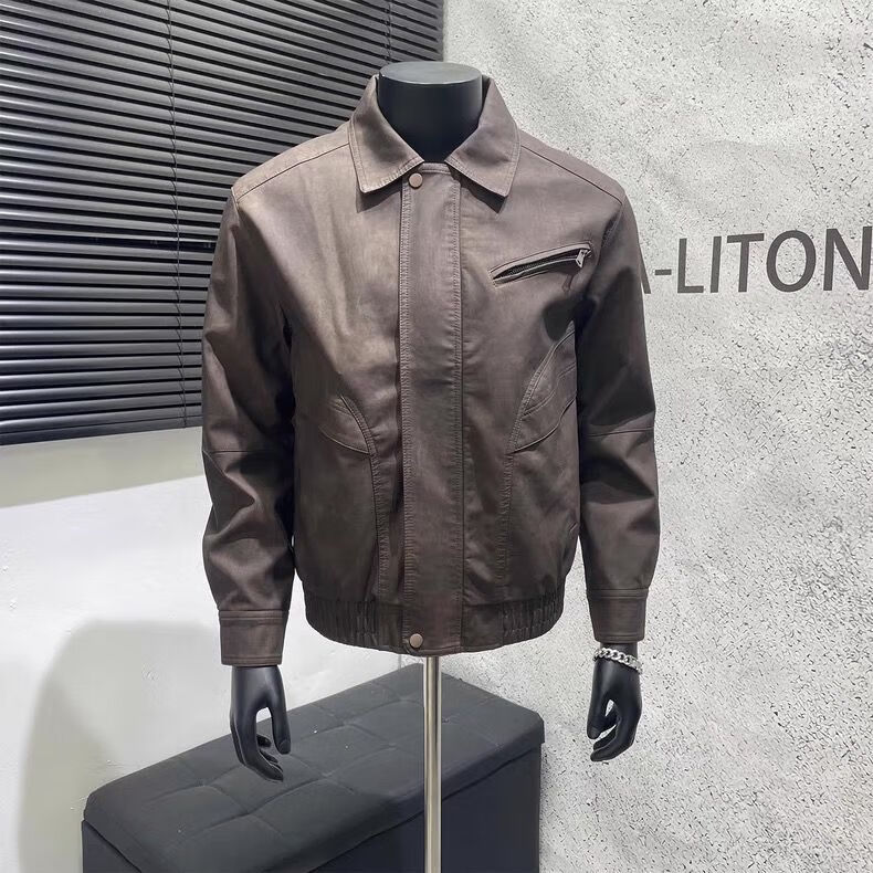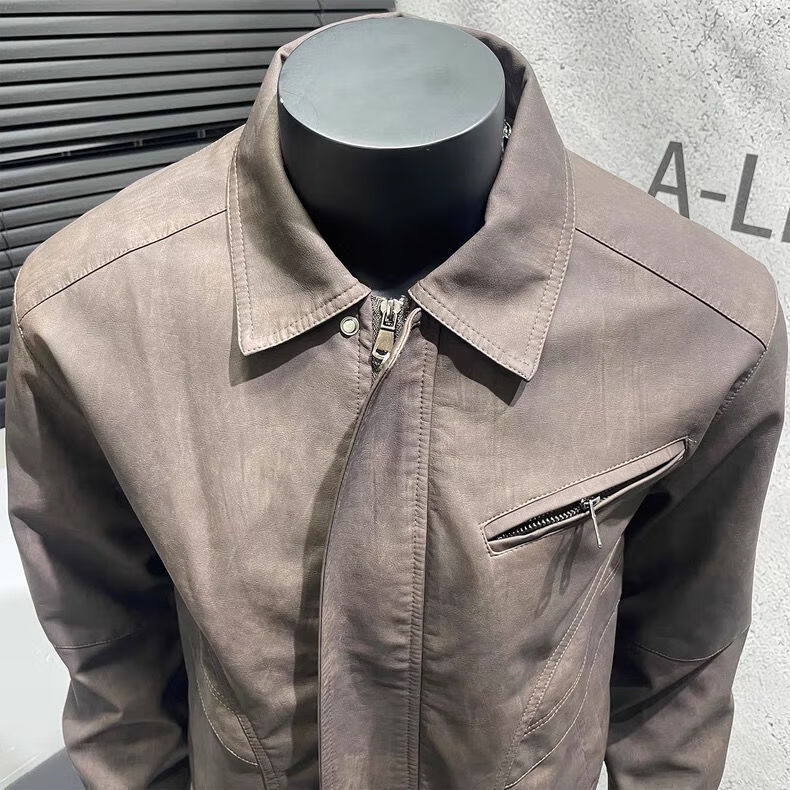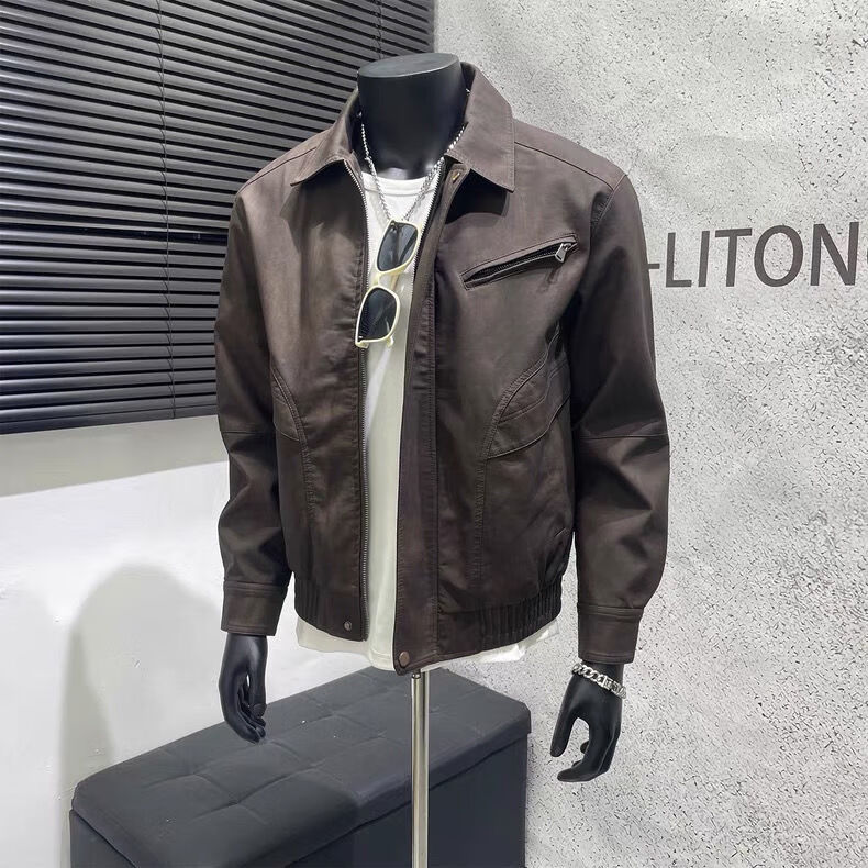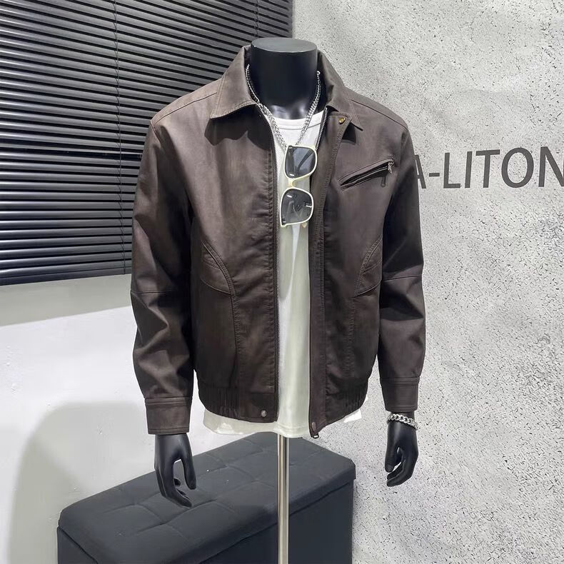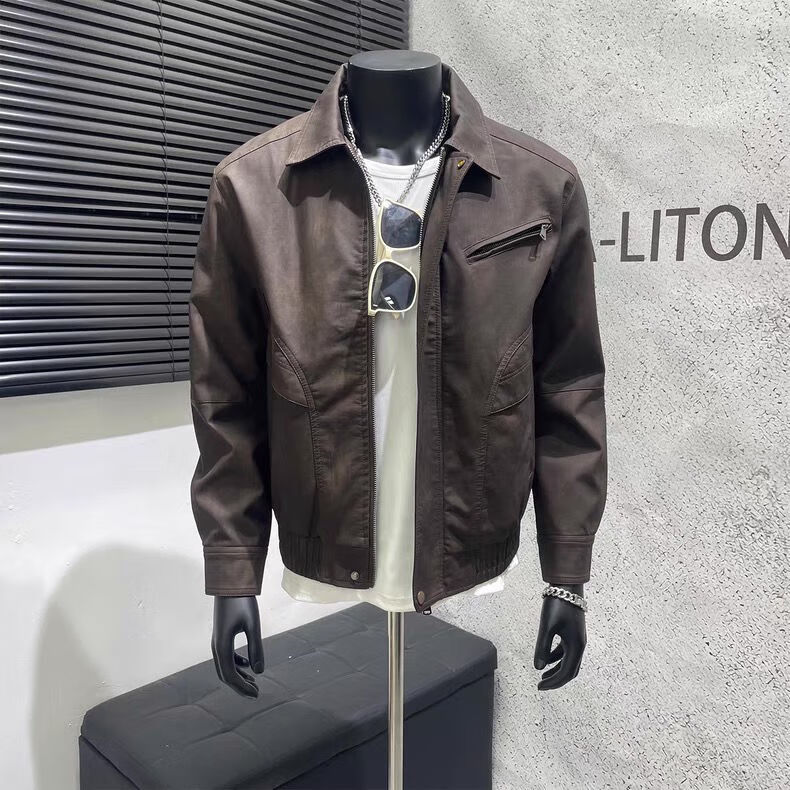 American retro distressed leather jacket men's autumn new high-end handsome motorcycle lapel pu leather jacket black L L recommended 100-115 Jin Jin equals 0.5 kg