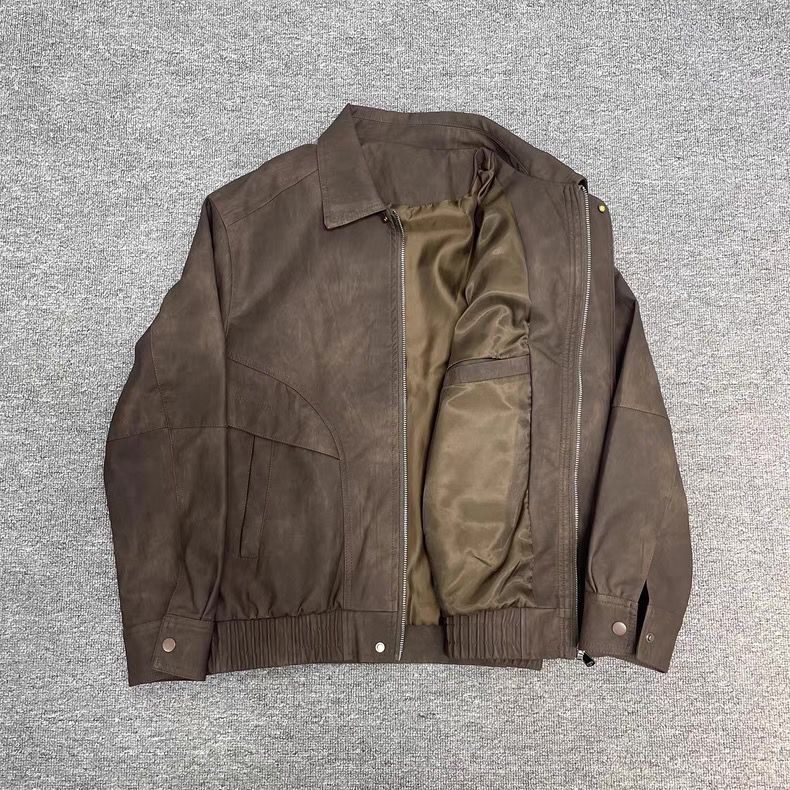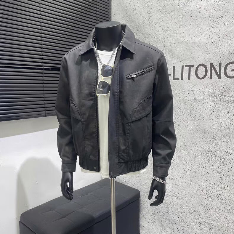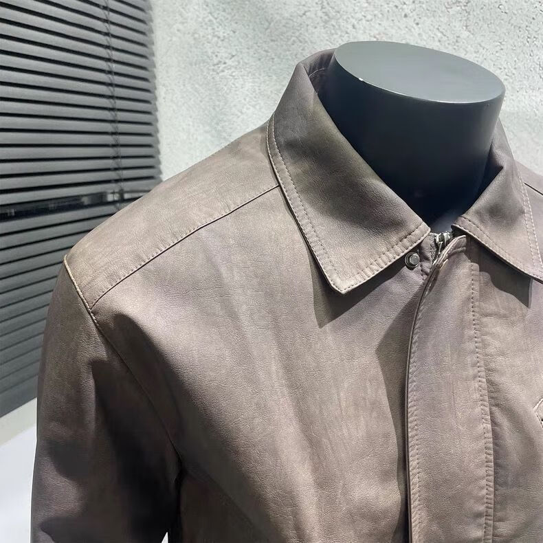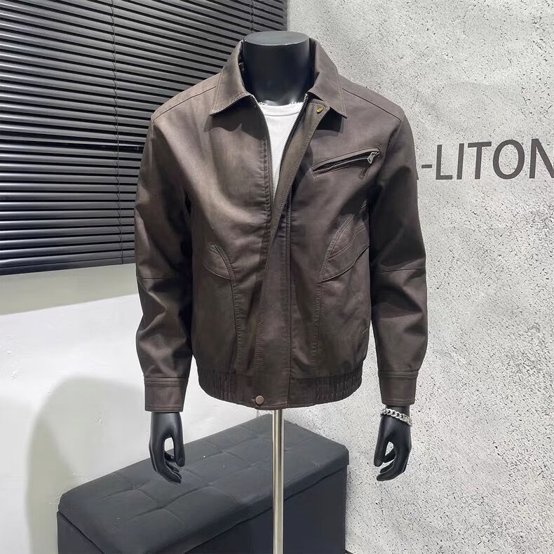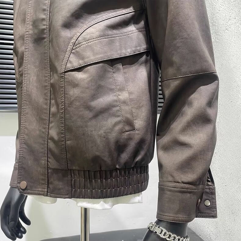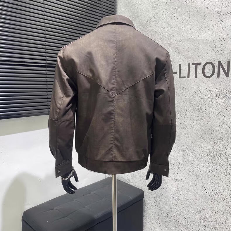American retro distressed leather jacket men's autumn new high-end handsome motorcycle lapel pu leather jacket black L L recommended 100-115 Jin Jin equals 0.5 kg