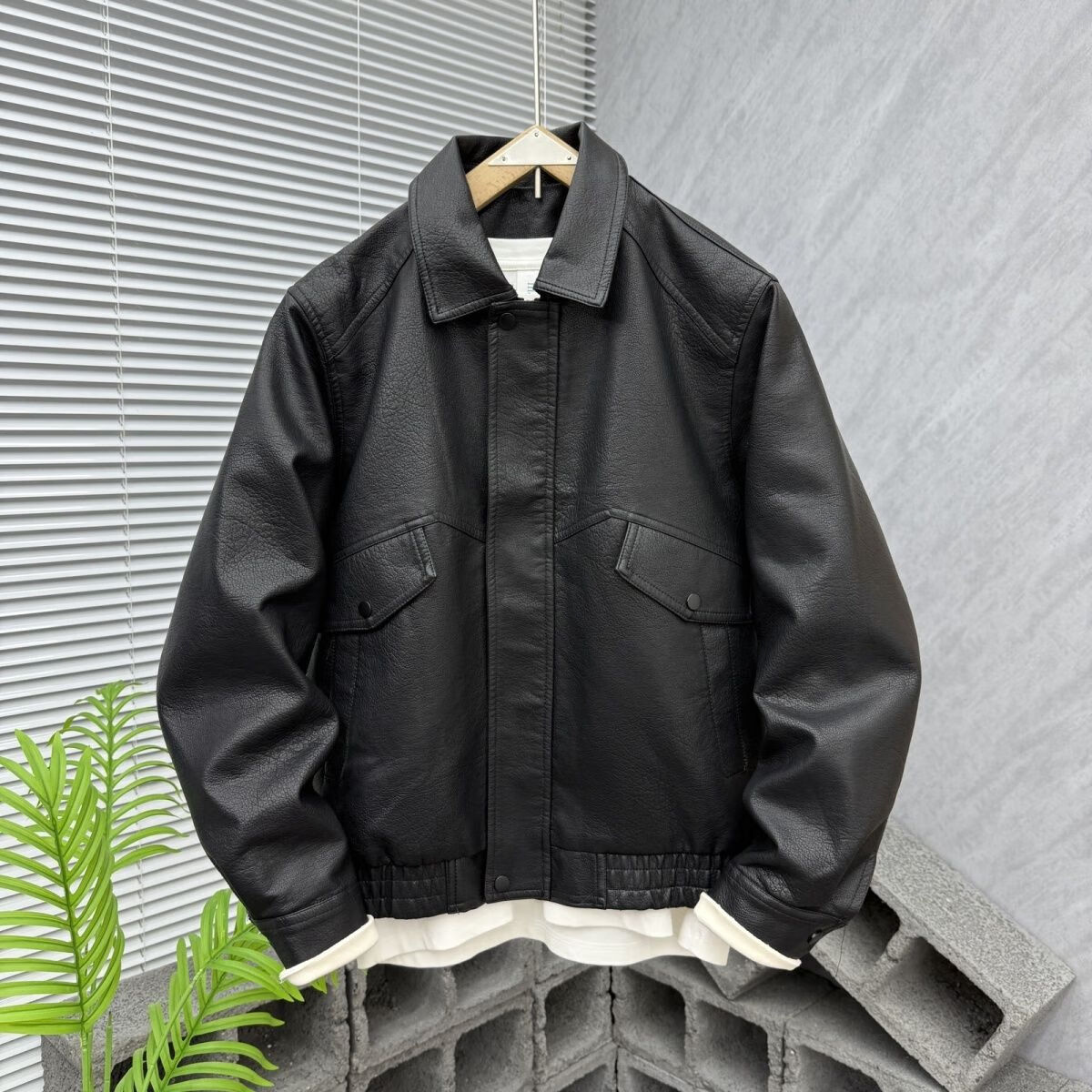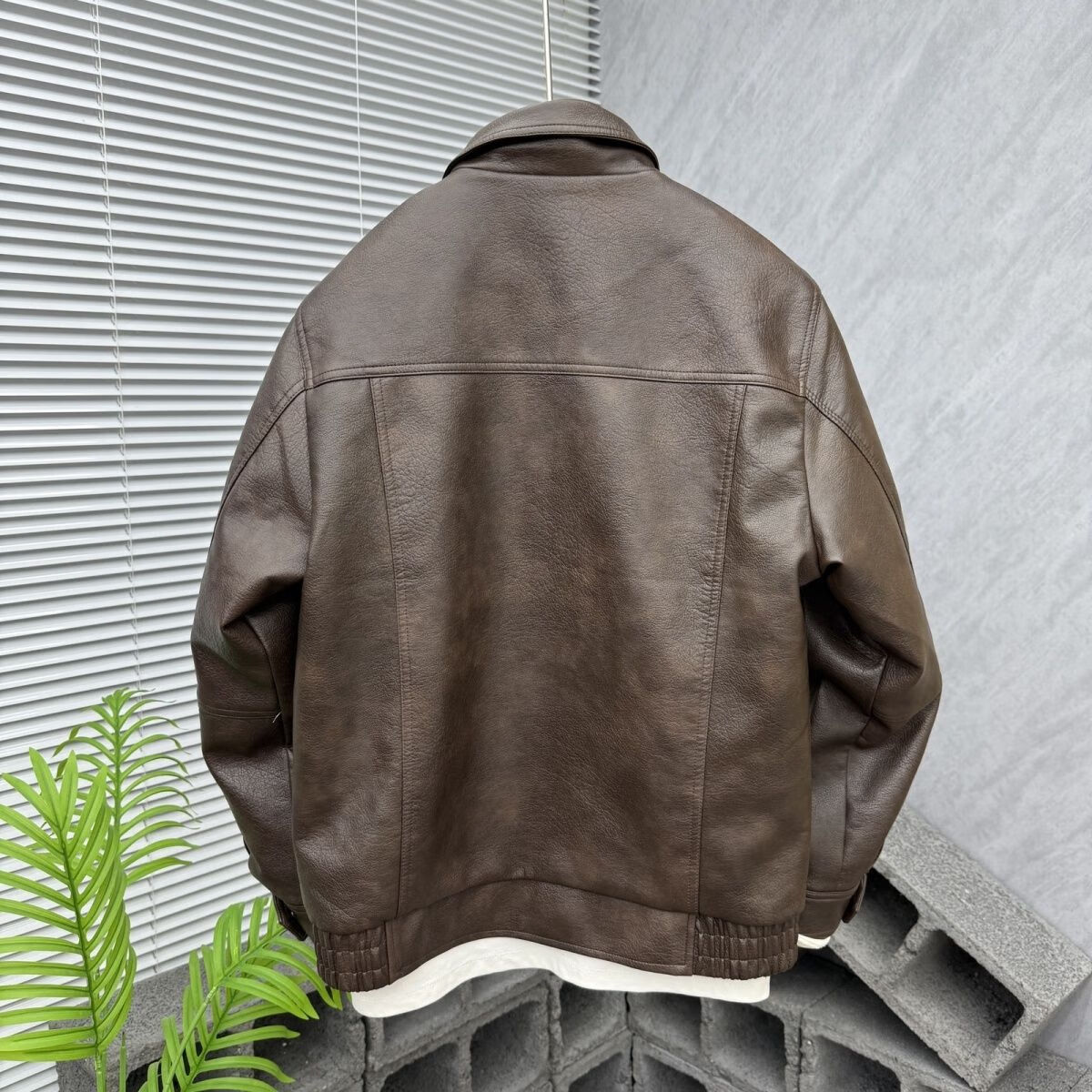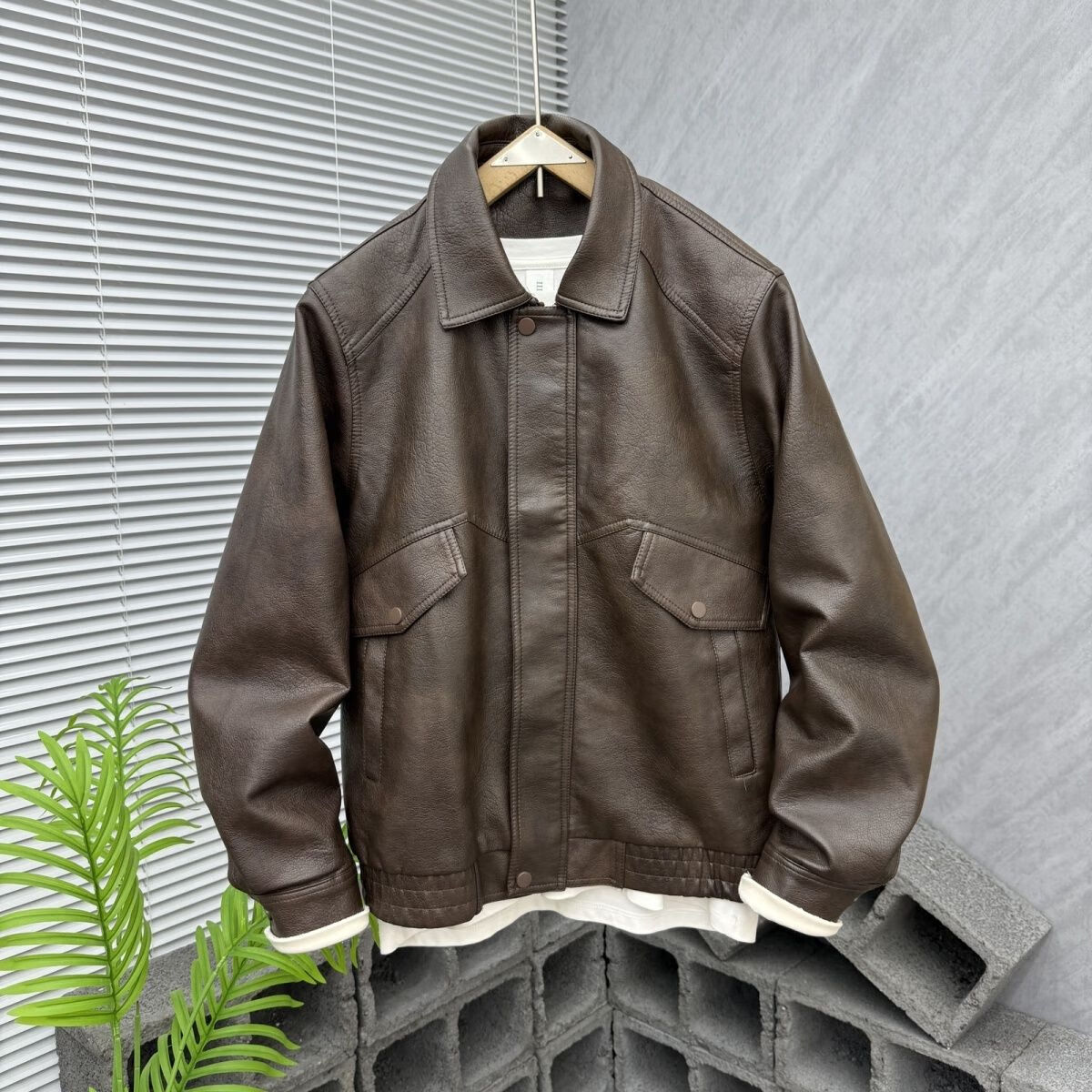 Counter quality wash-free lapel leather jacket men's handsome high-end tops 2025 autumn new men's leather jacket coffee color XL recommended weight 115-130Jin Jin equals 0.5 kg