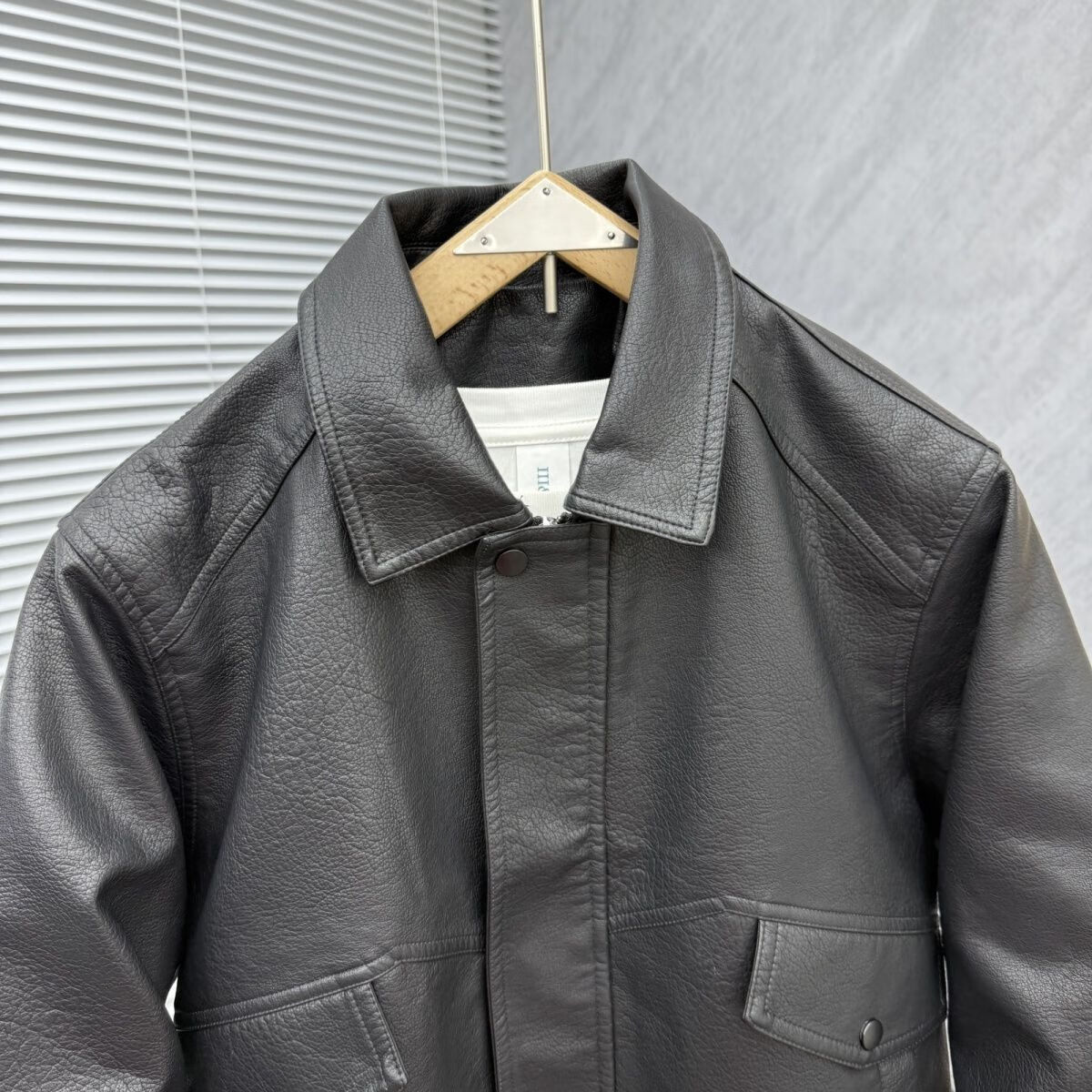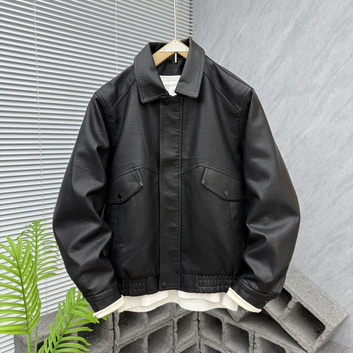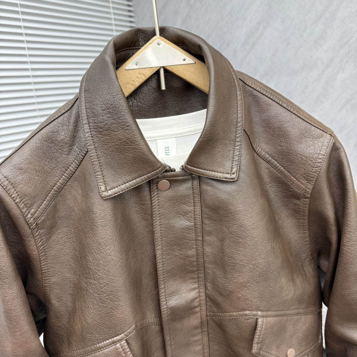 Counter quality wash-free lapel leather jacket men's handsome high-end tops 2025 autumn new men's leather jacket coffee color XL recommended weight 115-130Jin Jin equals 0.5 kg