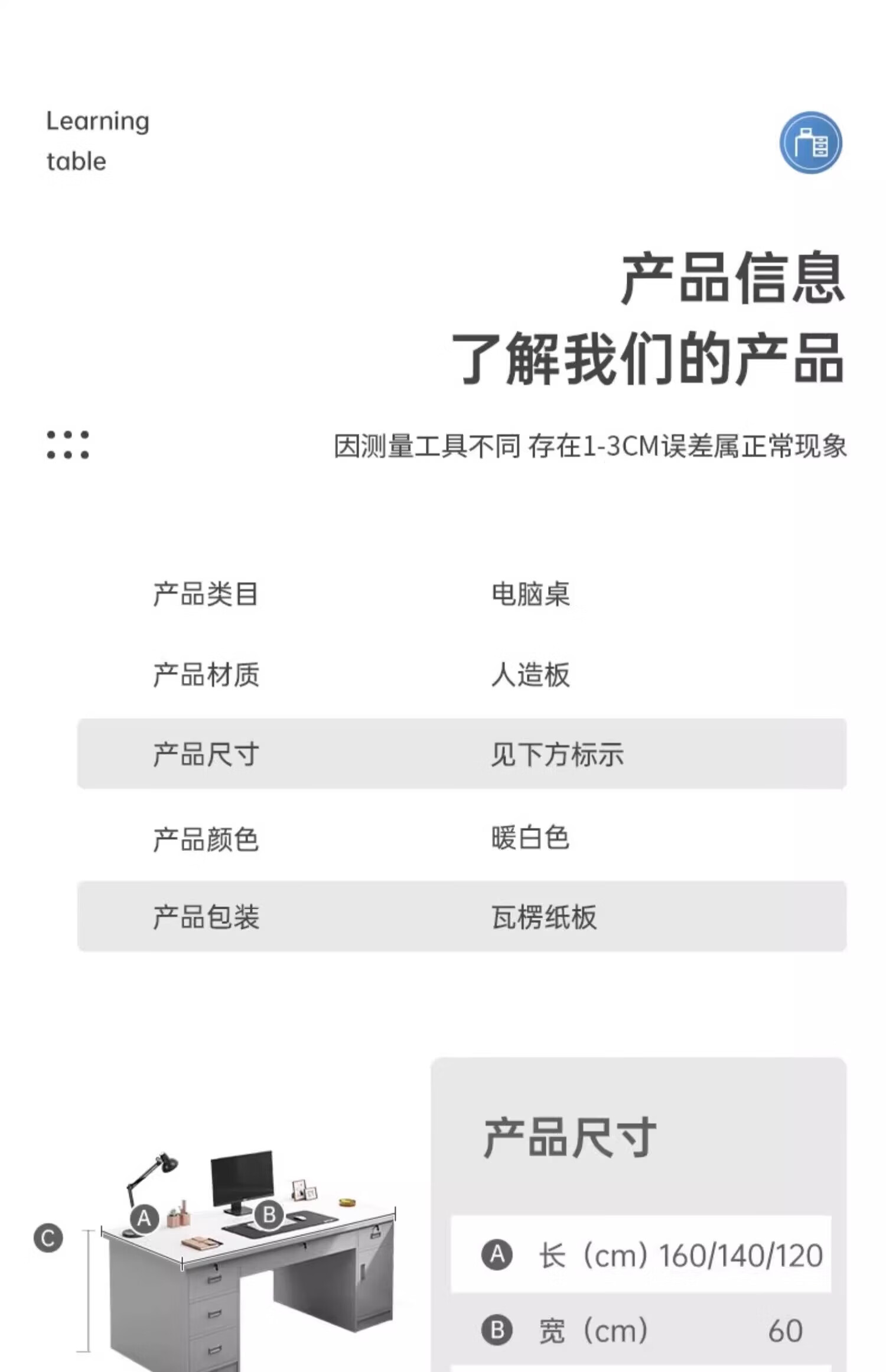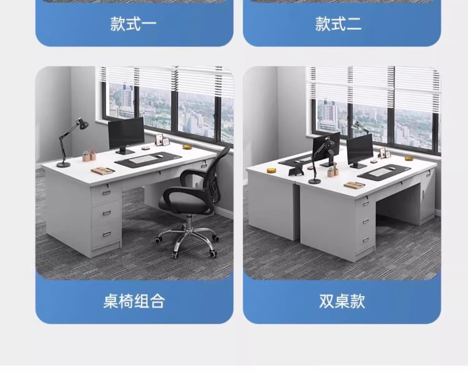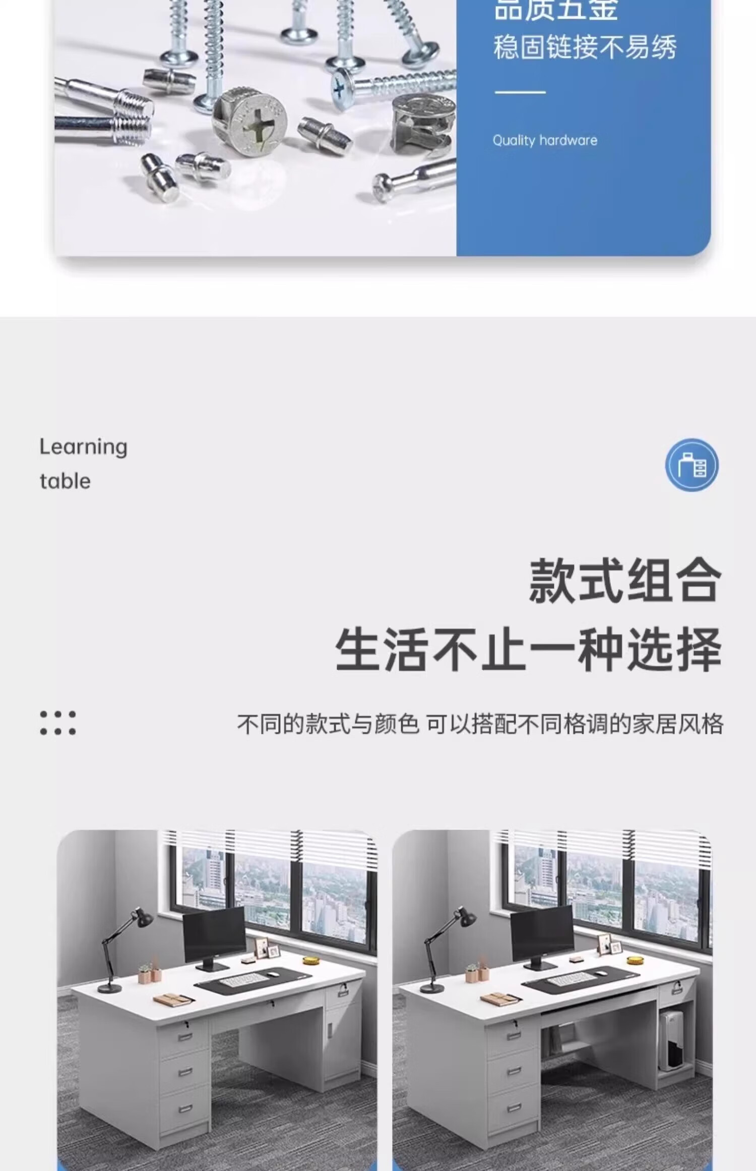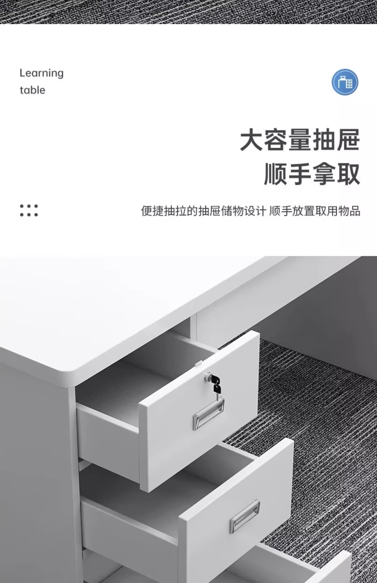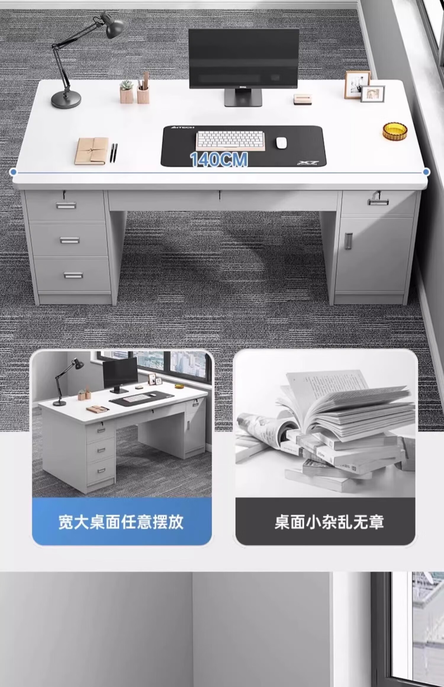 Desk with drawers, simple boss desk, office computer desk, workbench, staff double work station, five drawers and one cabinet | Warm white 140cm