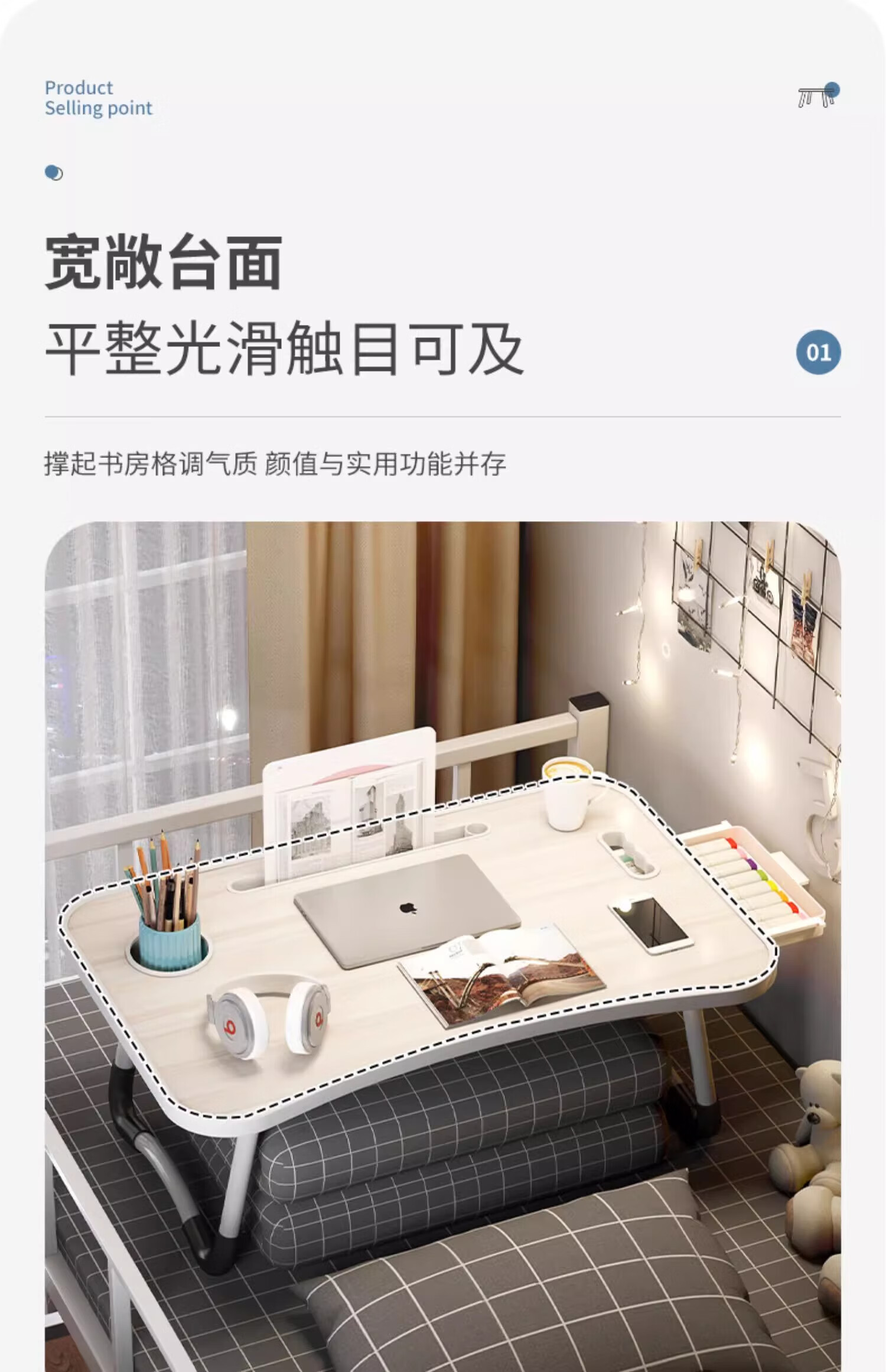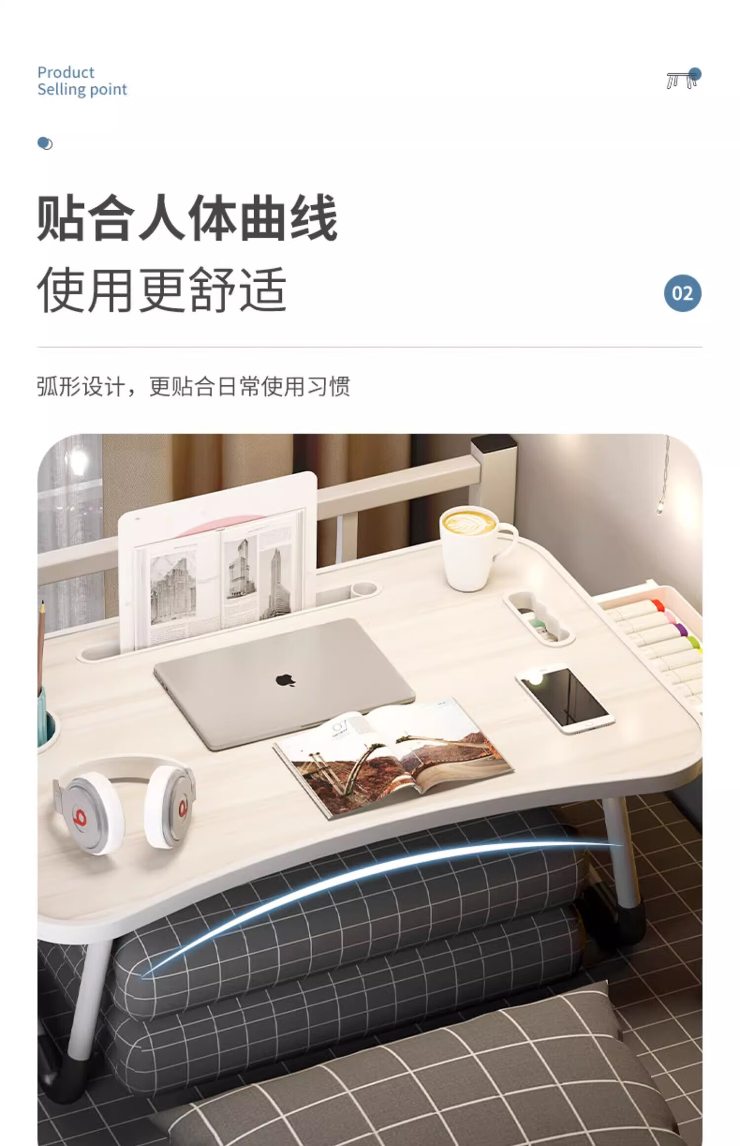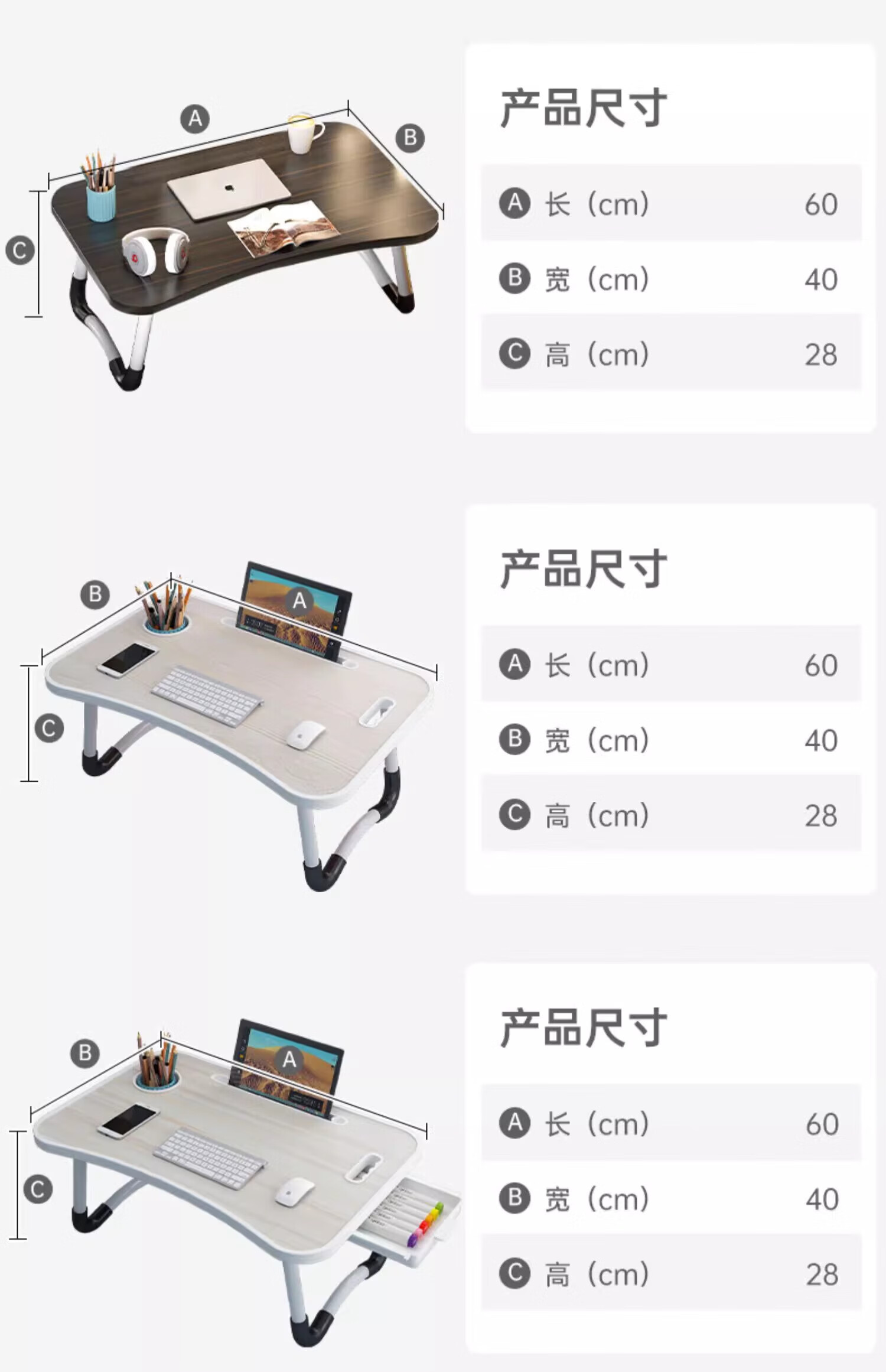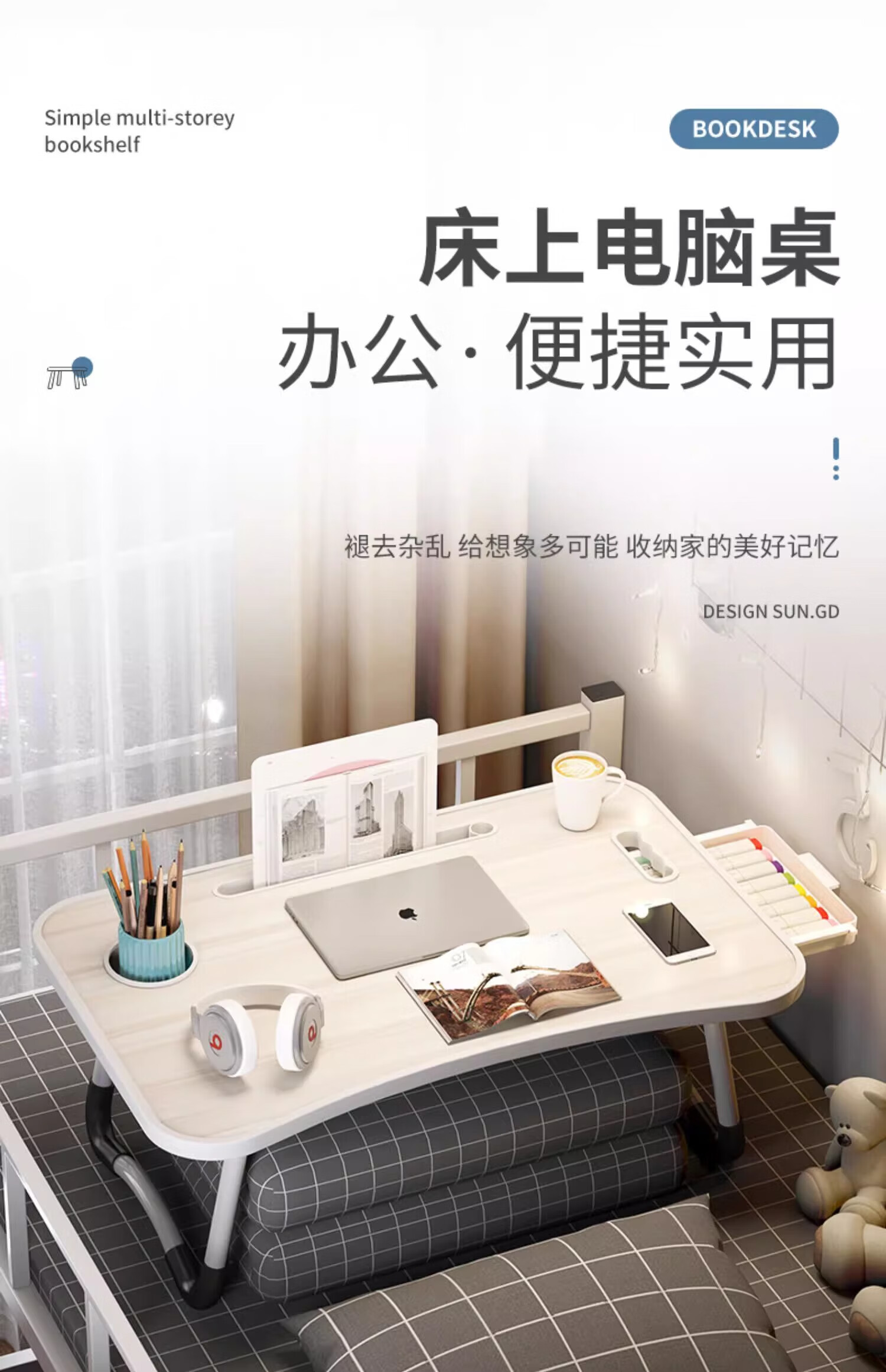Computer desk, bed, lazy desk, simple bedroom folding table, student dormitory artifact, writing table, small table, flat style, warm white 60*40*28cm, assembled