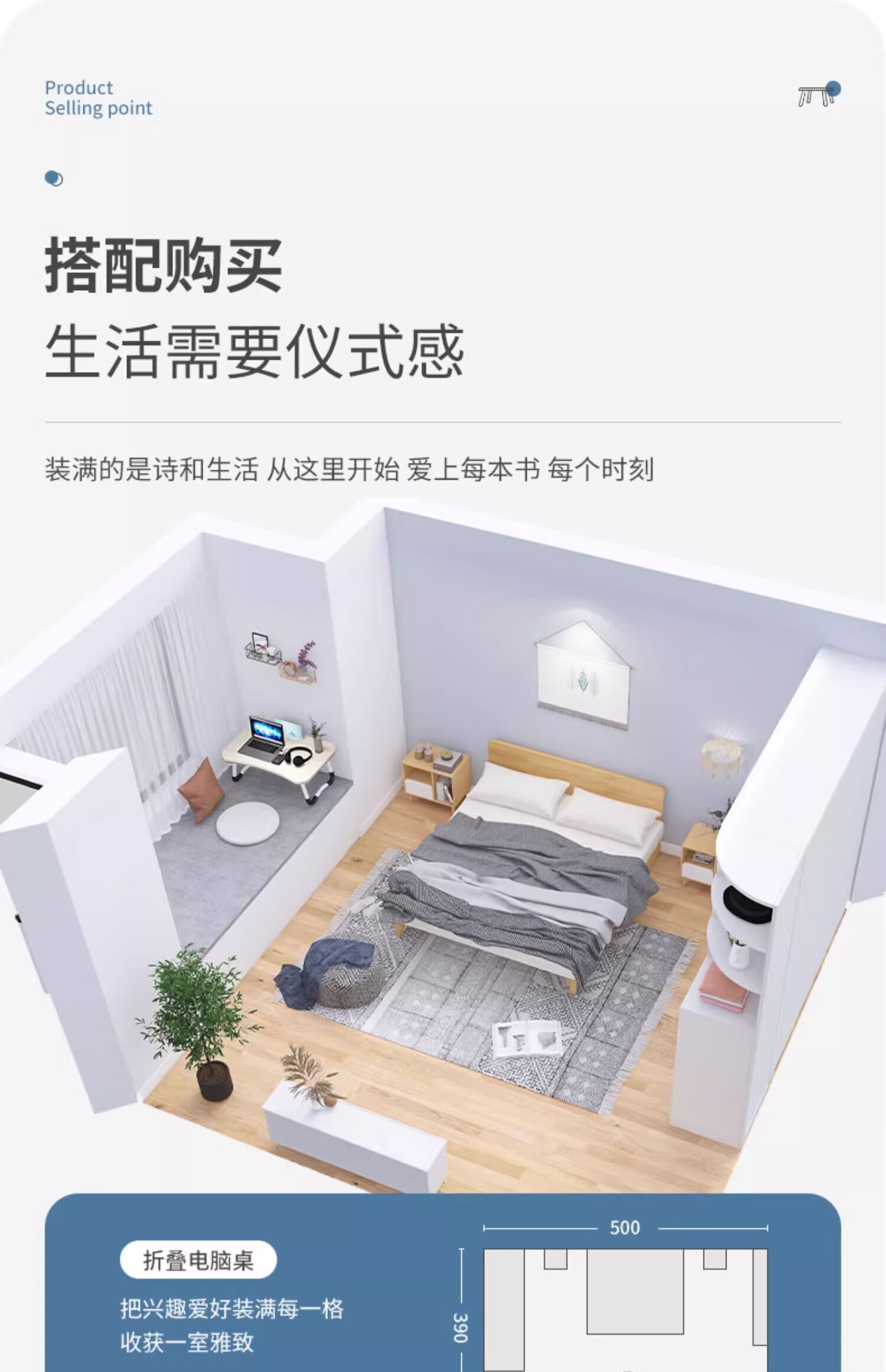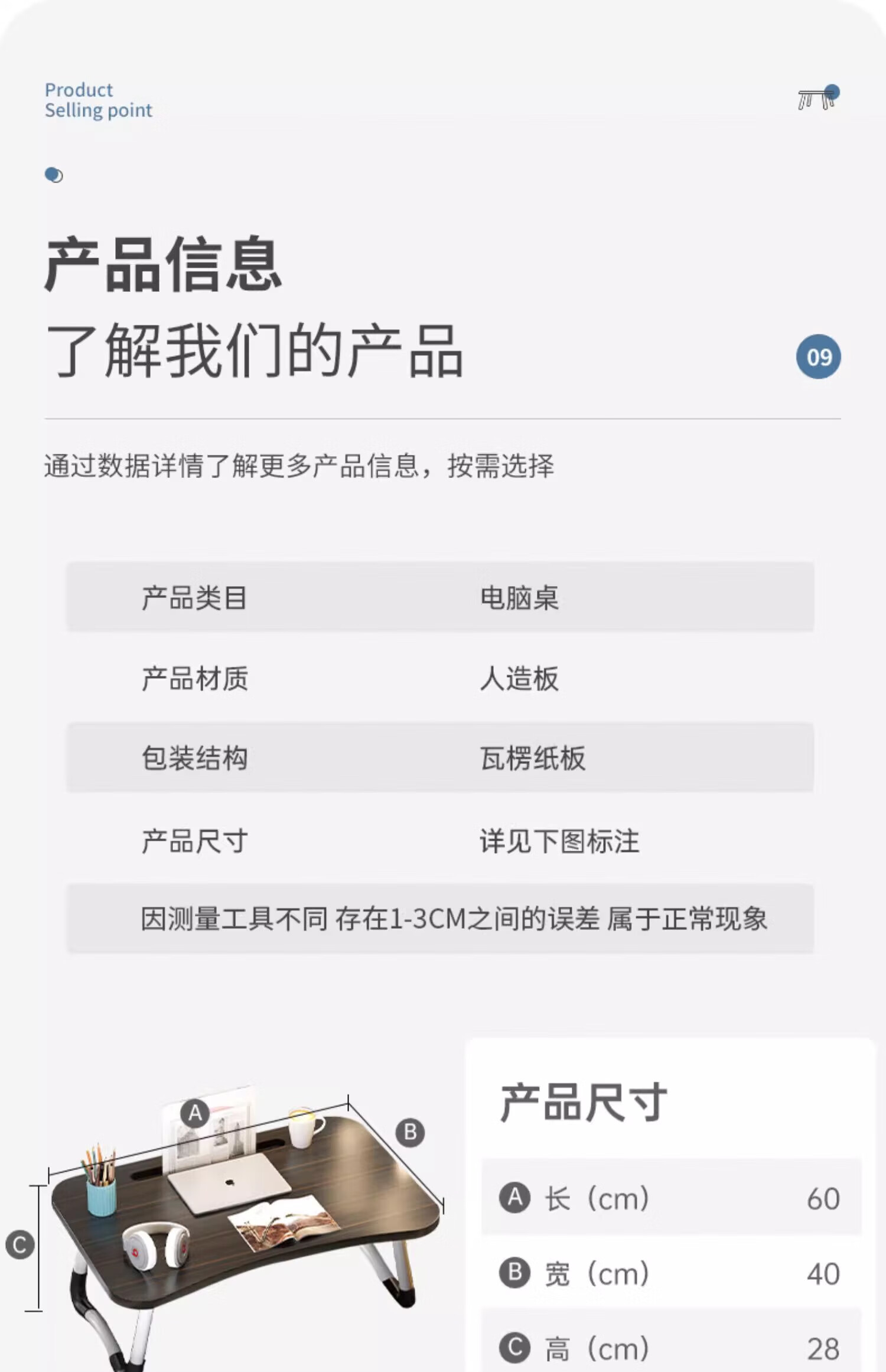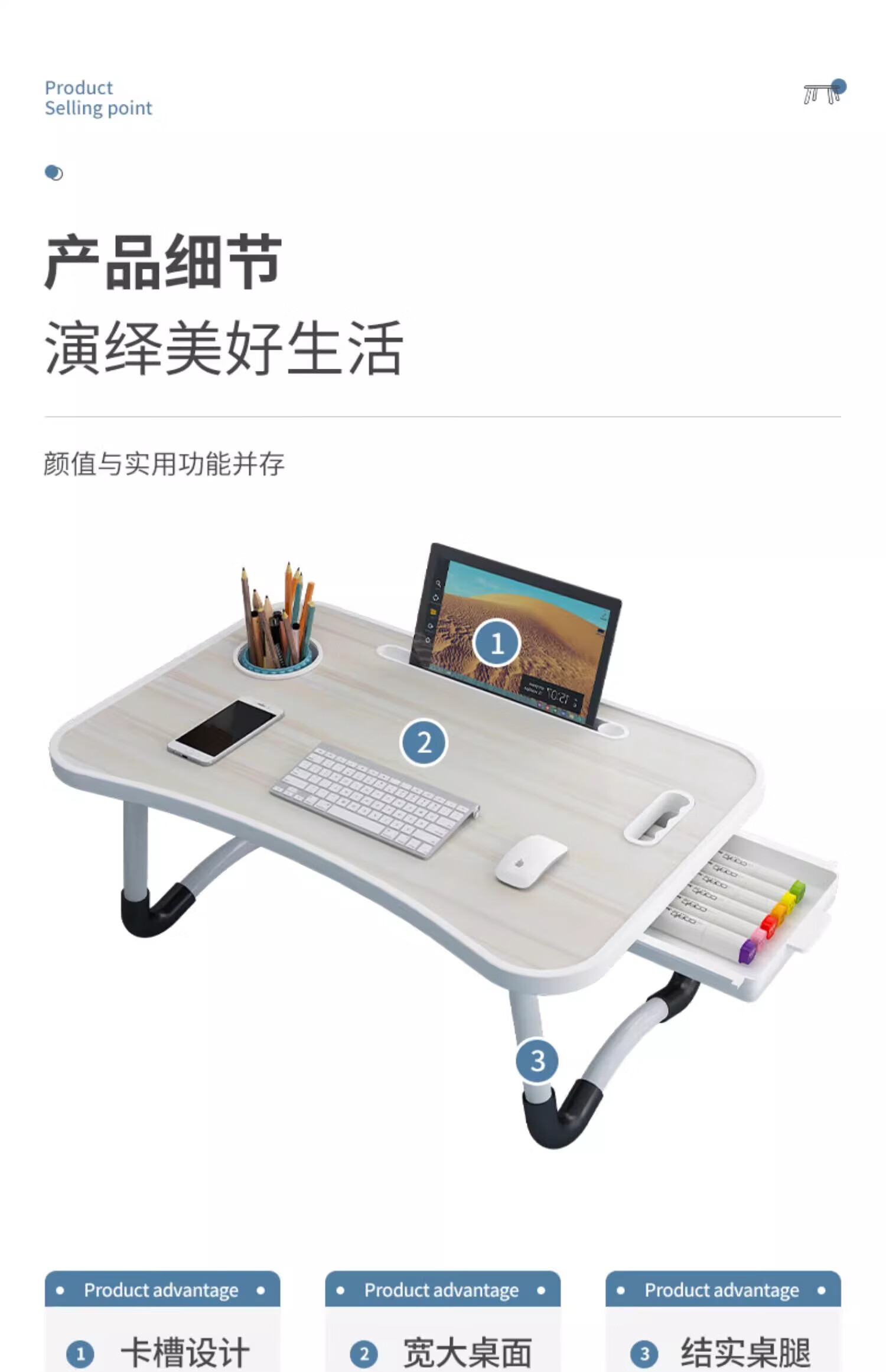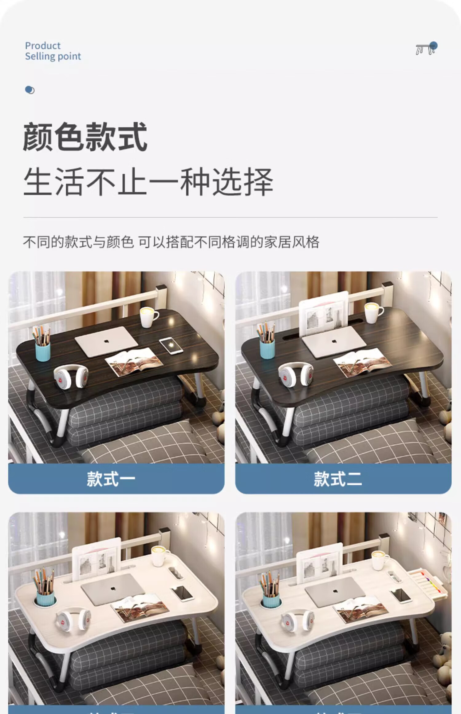 Computer desk, bed, lazy desk, simple bedroom folding table, student dormitory artifact, writing table, small table, flat style, warm white 60*40*28cm, assembled