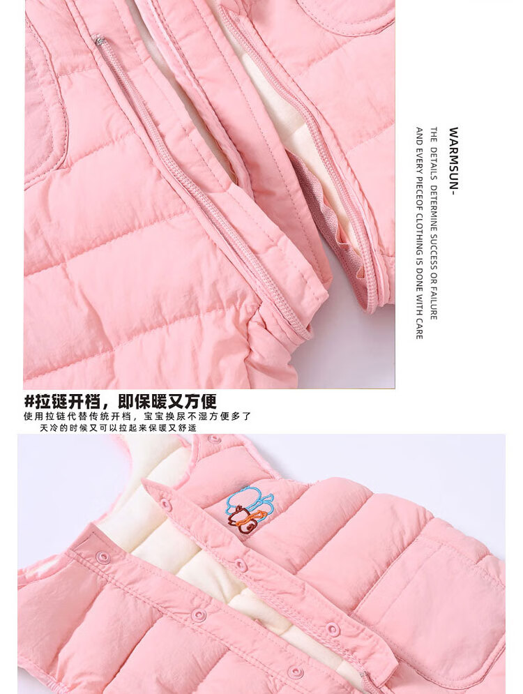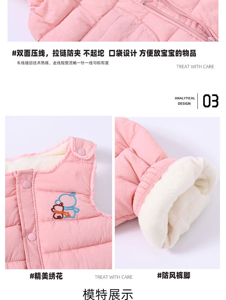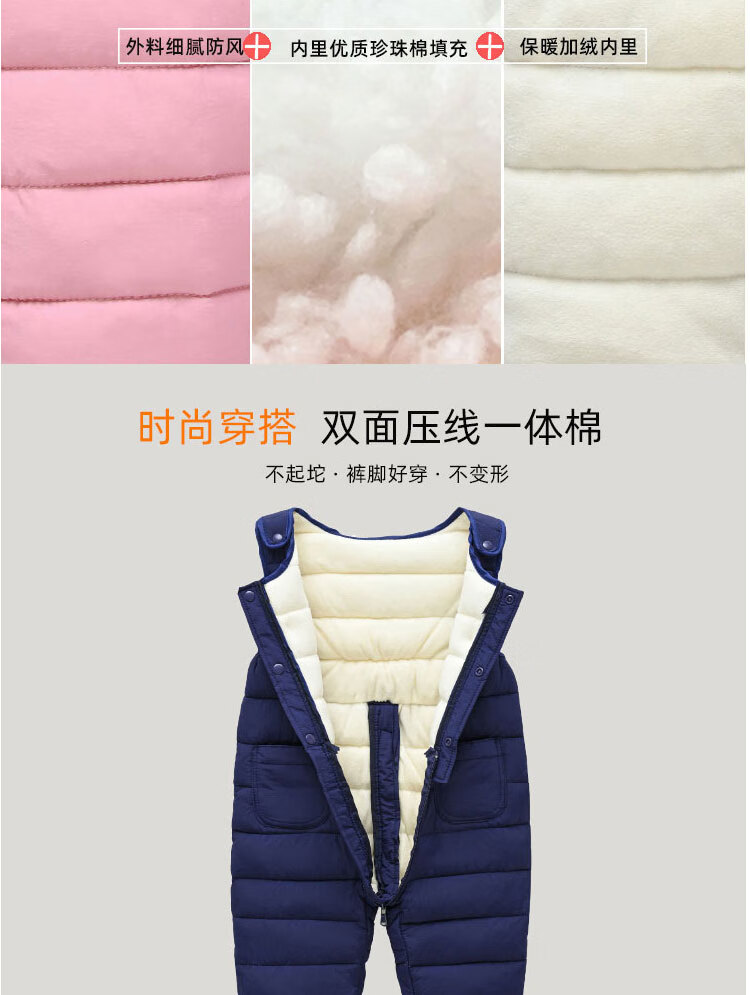 Disney (Disney) children's clothing for boys and girls, infants and young children, cotton quilted overalls, children's velvet thickened warm cotton jumpsuits, pink, 80cm, size 80 (suitable for babies 1-2 years old)