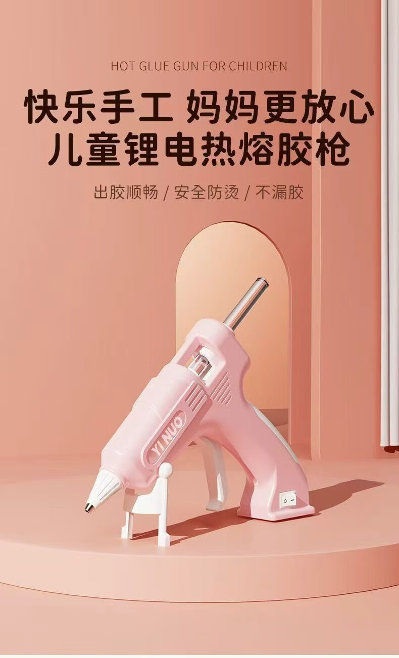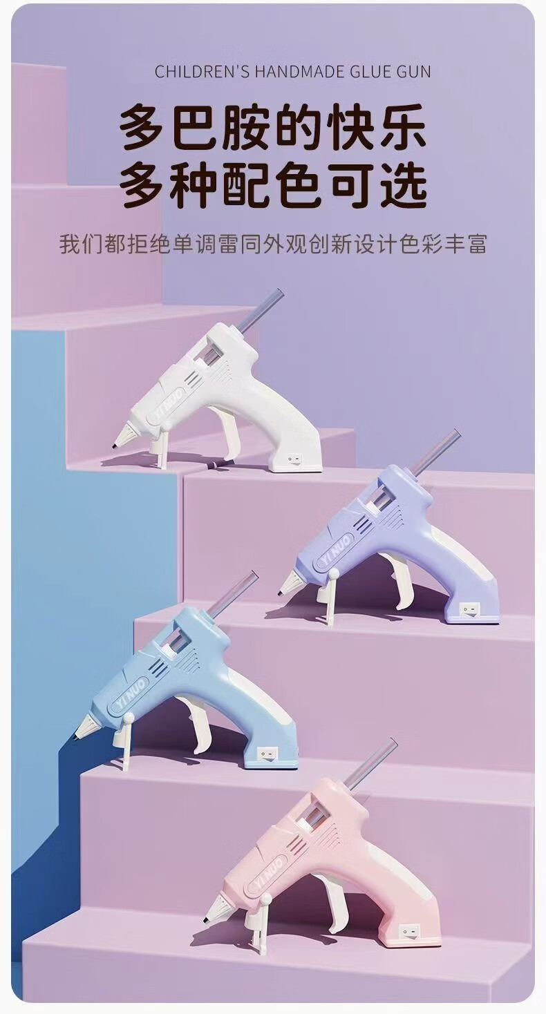 Multifunctional hot melt glue gun for children, anti-scalding, household diy handmade 7mm glue stick, kindergarten lithium electric hot melt gun, special for children, cute purple - upgraded model - 60 minutes long battery life, A grade glue stick/export quality 30 - recommended