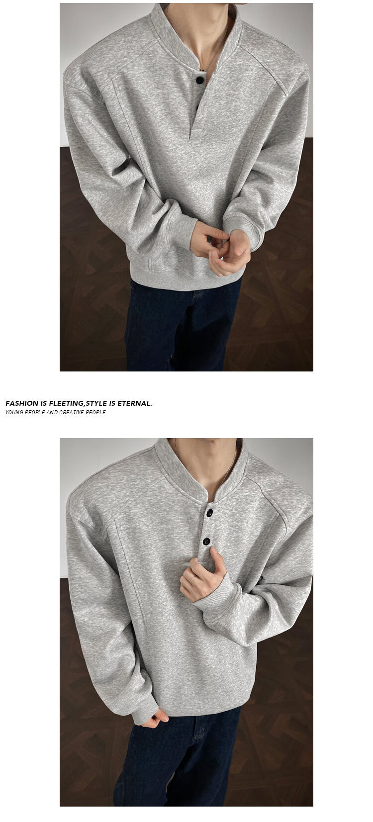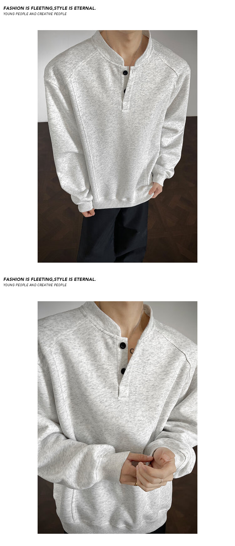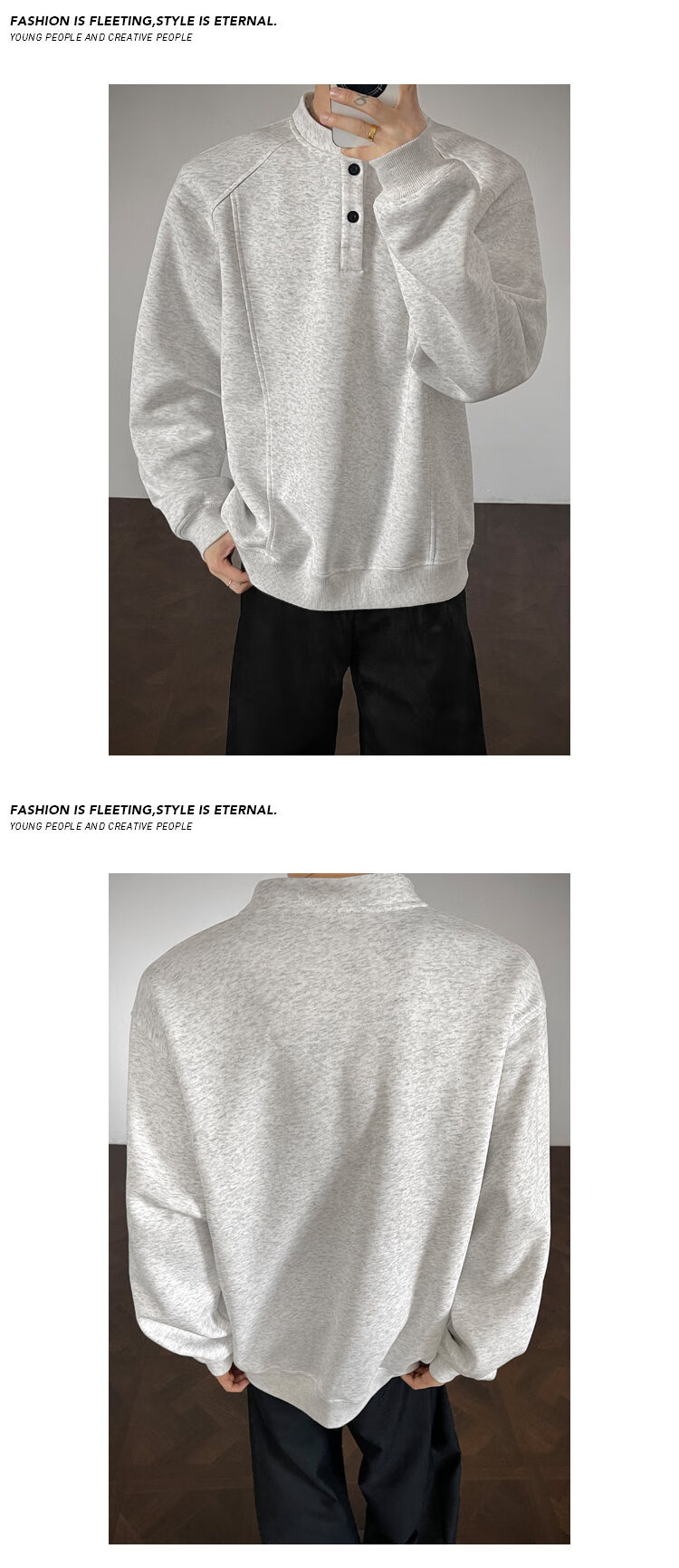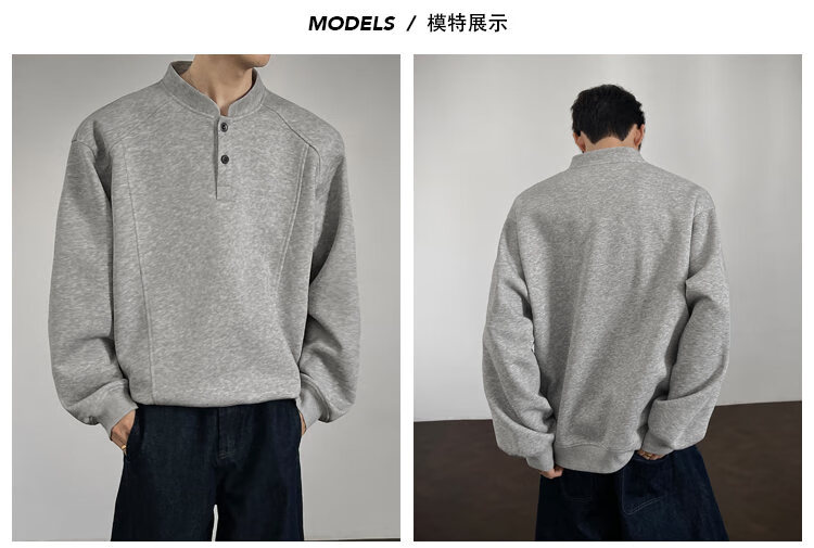 OEMG Heavy Henley Collar Velvet Thickened Sweater Men's Autumn and Winter American Trendy Brand Hoodie Top Versatile Jacket HW25884 Black XL Recommended 110-130Jin Jin equals 0.5kg
